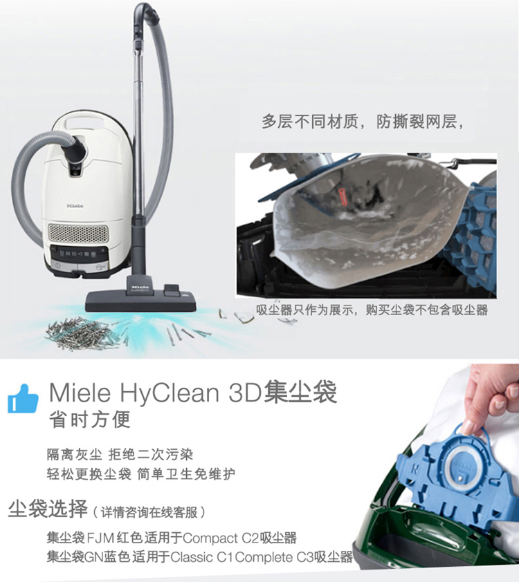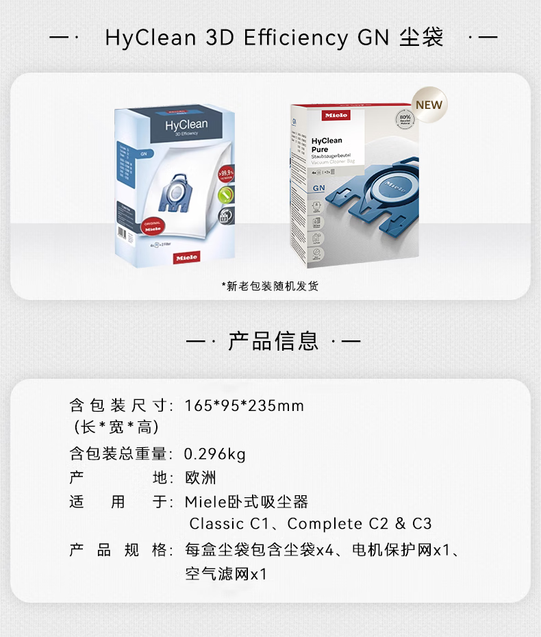 美诺(Miele)HyClean 3D GN 4.5L欧洲进口集尘袋 【适用于Classic C1/ Complete C2&C3系列吸尘器】 1盒