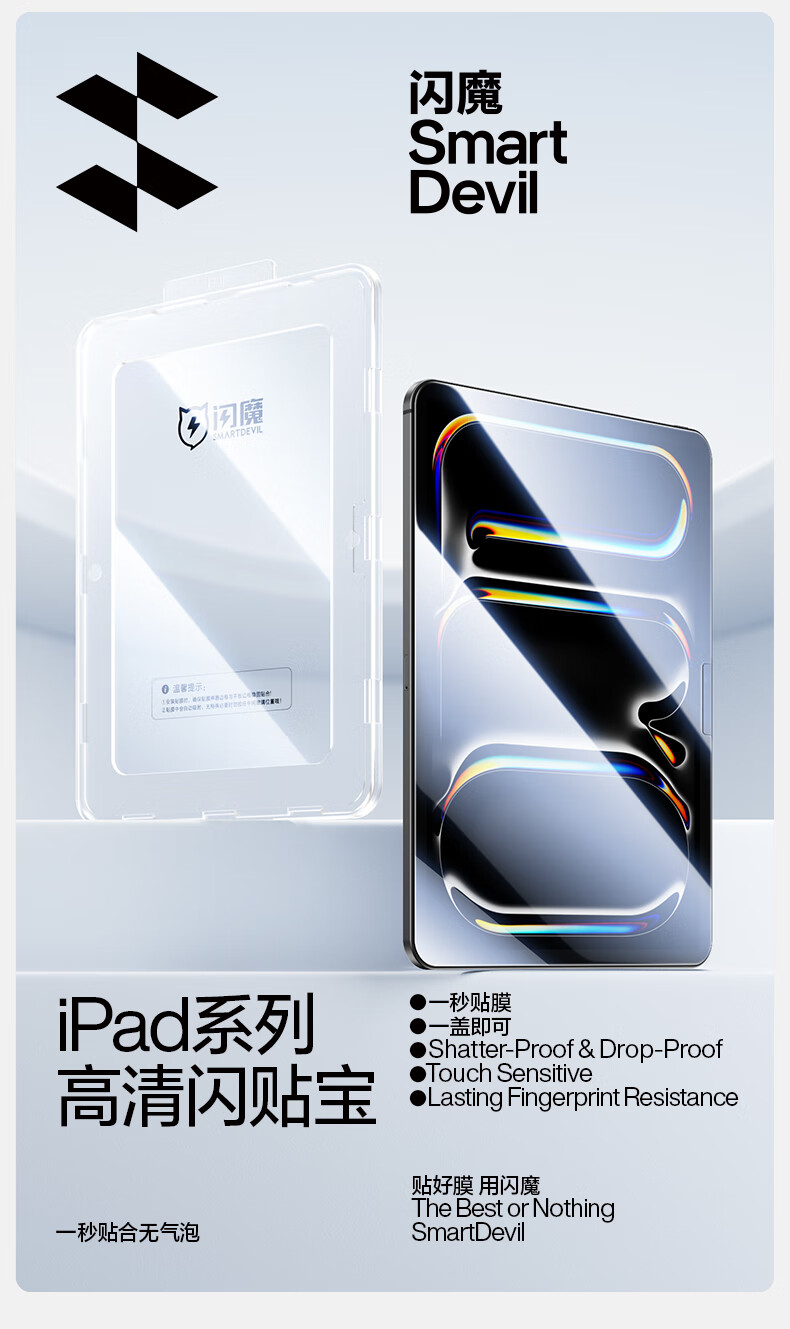 闪魔适用ipad pro2025钢化膜air7/6/5/4全屏苹果平板24/22款11/12.9/13吋高清抗蓝光秒贴保护膜 2025 air7/6 13英寸(闪贴宝1套装)