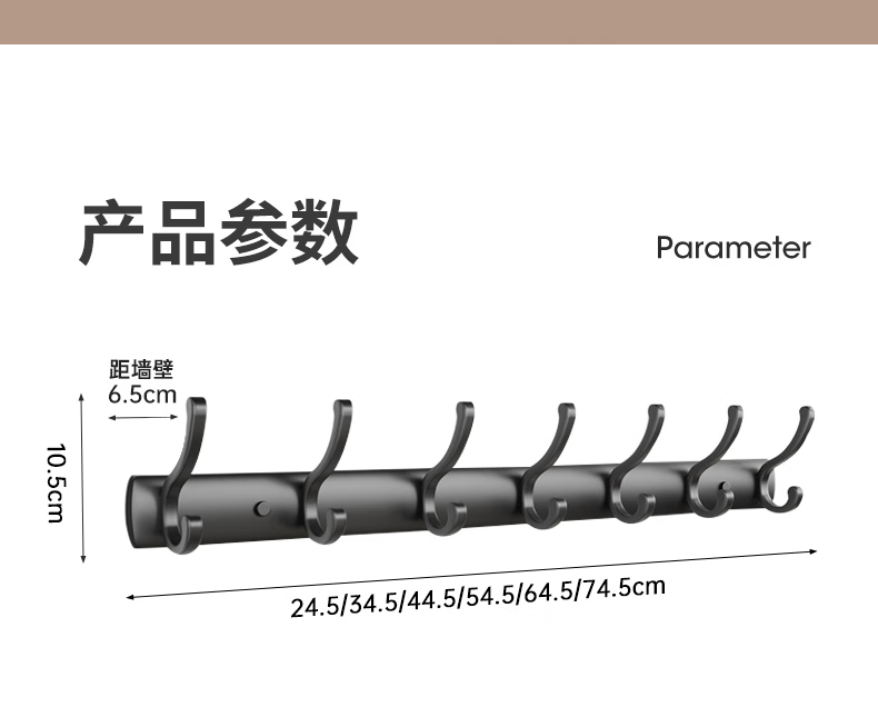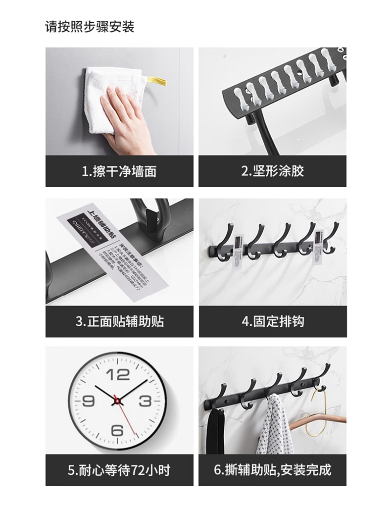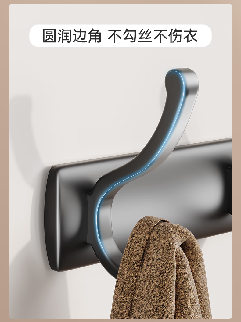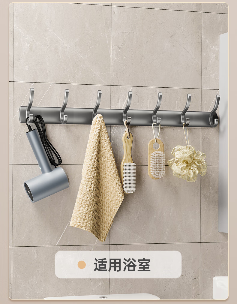 WCZ德国挂衣架墙上壁挂门后挂衣钩免打孔强力承重进门玄关衣服挂架衣 枪灰凤尾4钩(加免钉胶和打孔螺丝包)