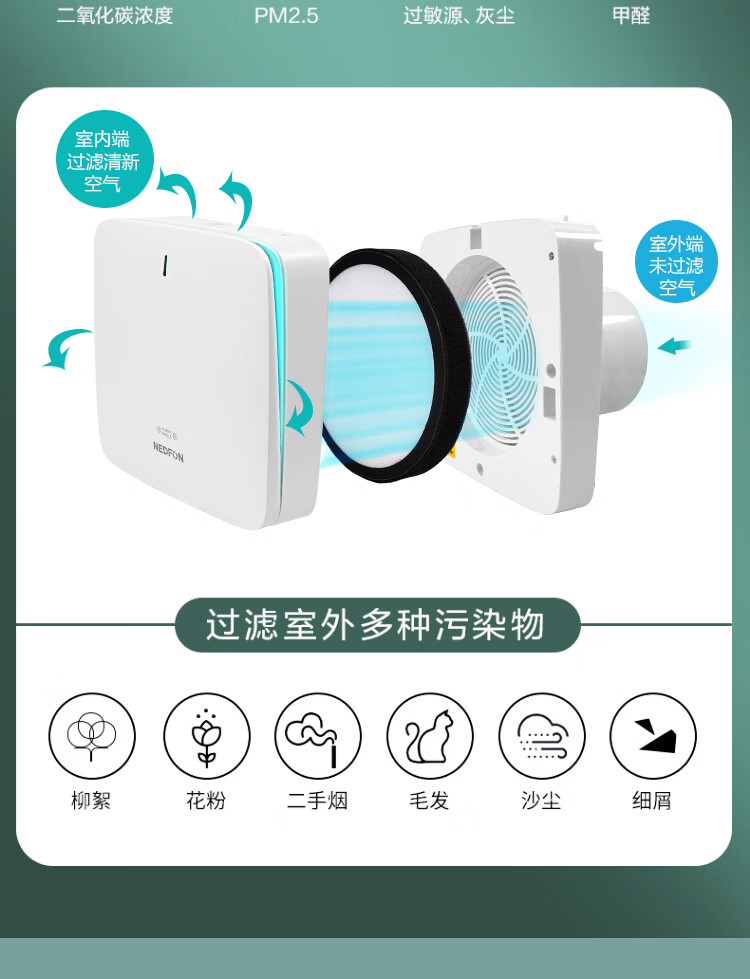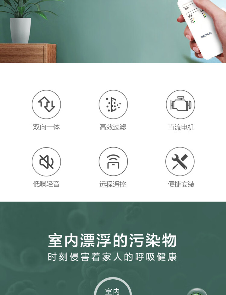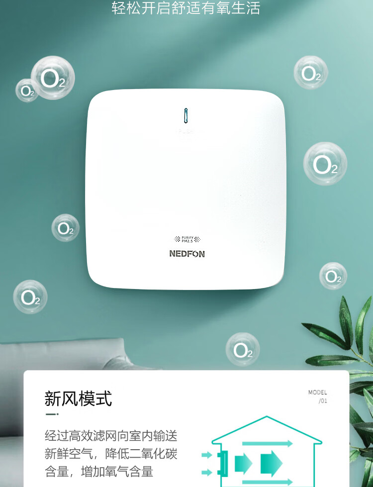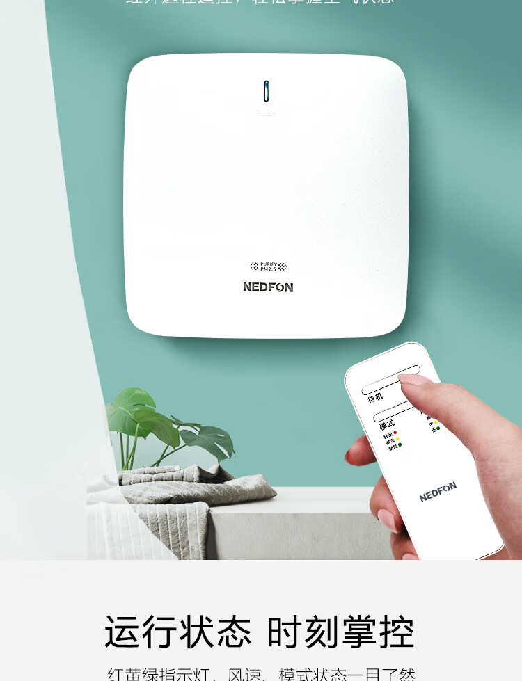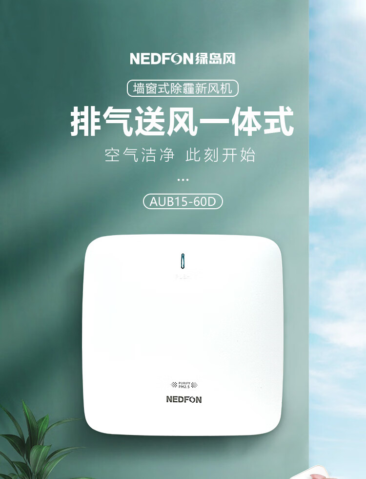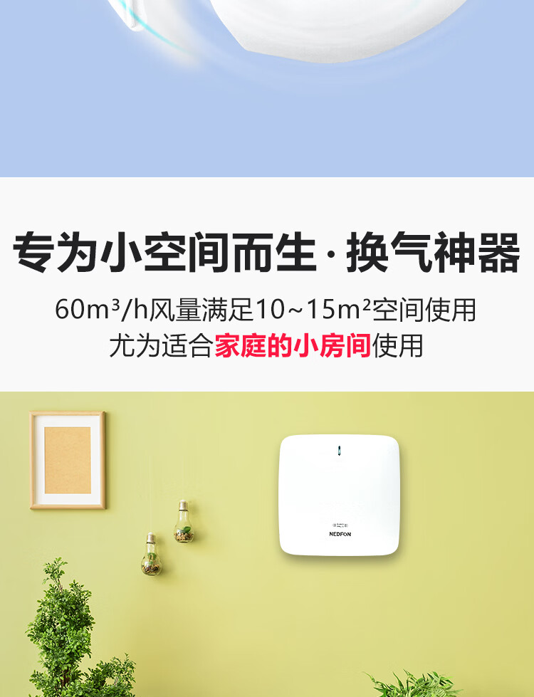 绿岛风(Nedfon)壁挂新风机通风换气一体式家用小空间换气扇双向新风系统排气扇遥控款 壁挂式 60m³/h 0-19㎡