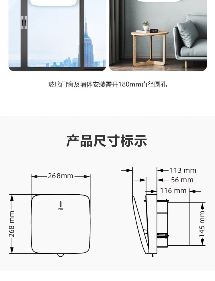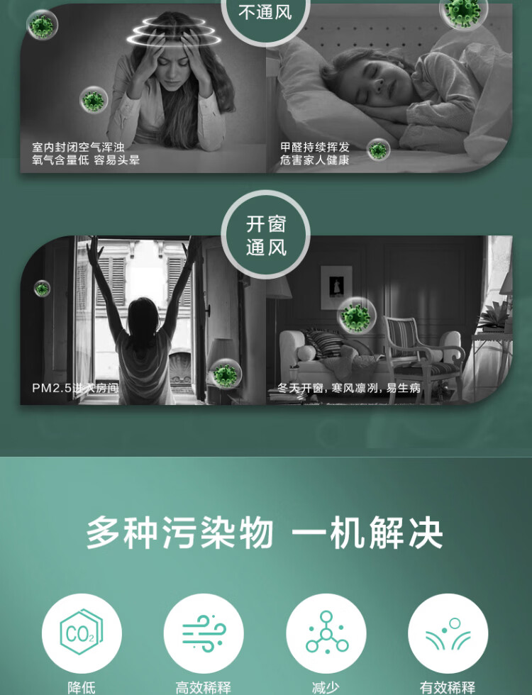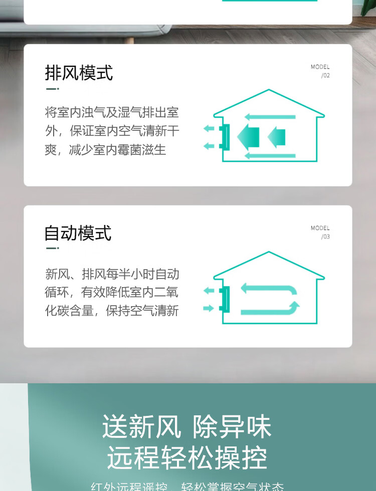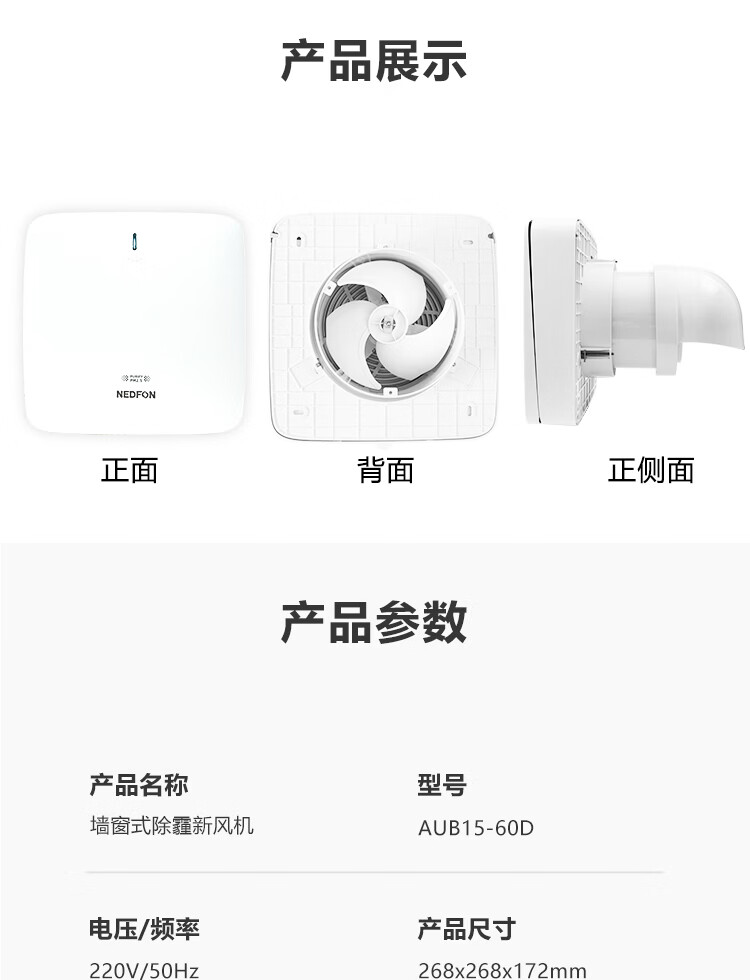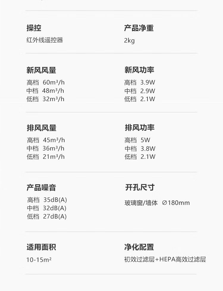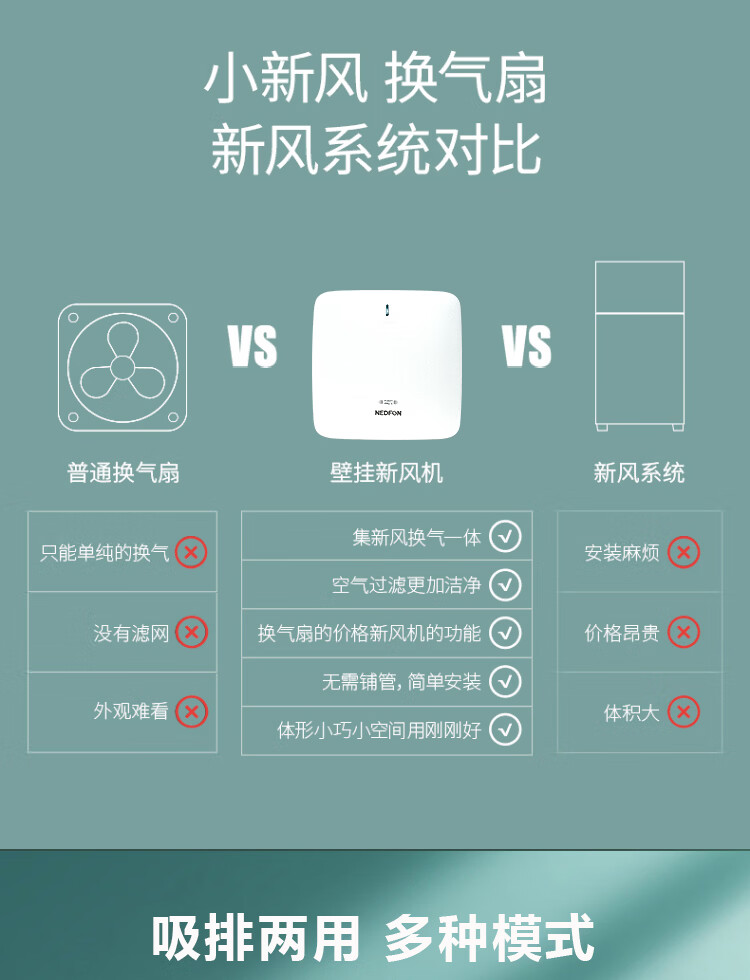 绿岛风(Nedfon)壁挂新风机通风换气一体式家用小空间换气扇双向新风系统排气扇遥控款 壁挂式 60m³/h 0-19㎡