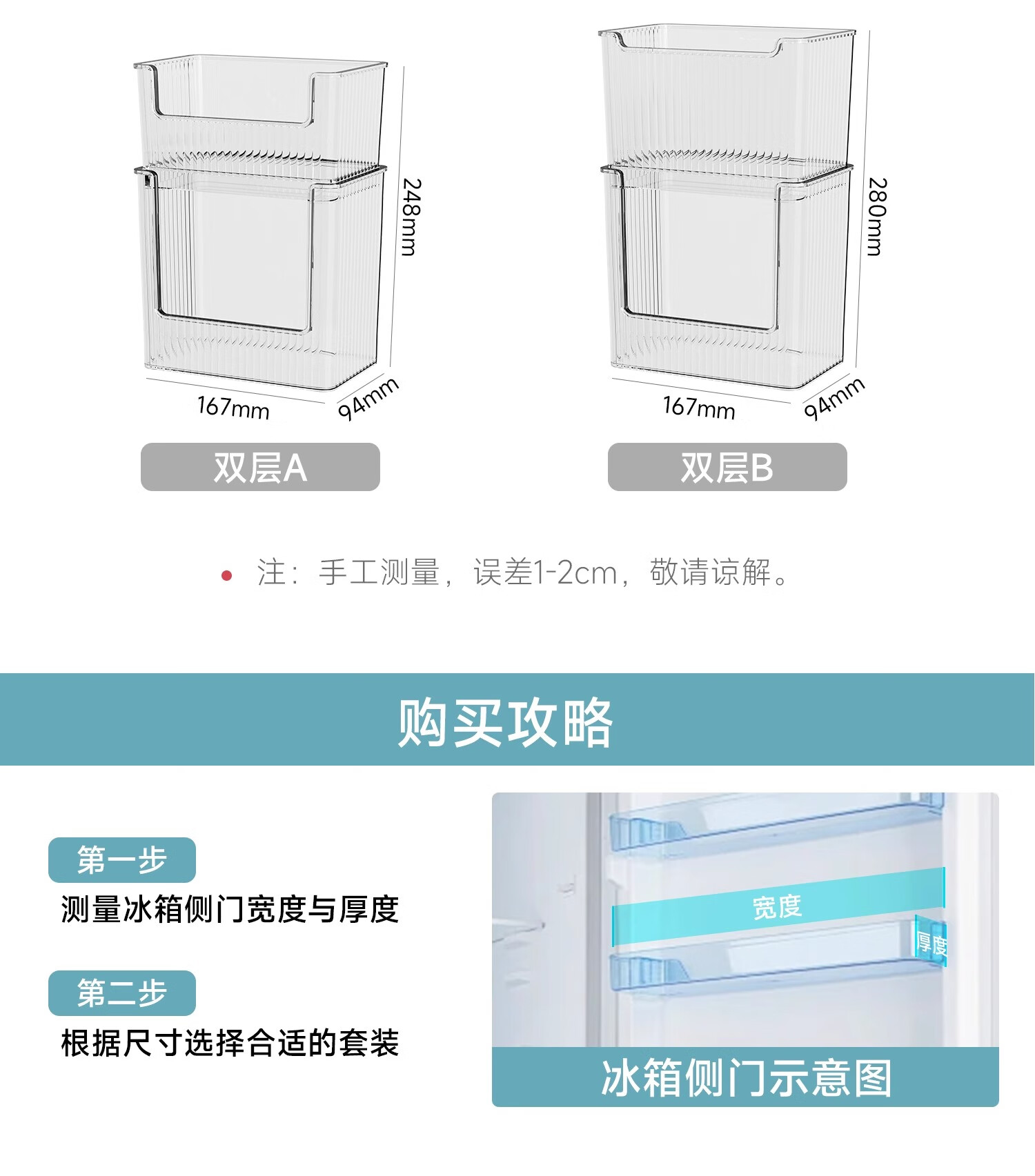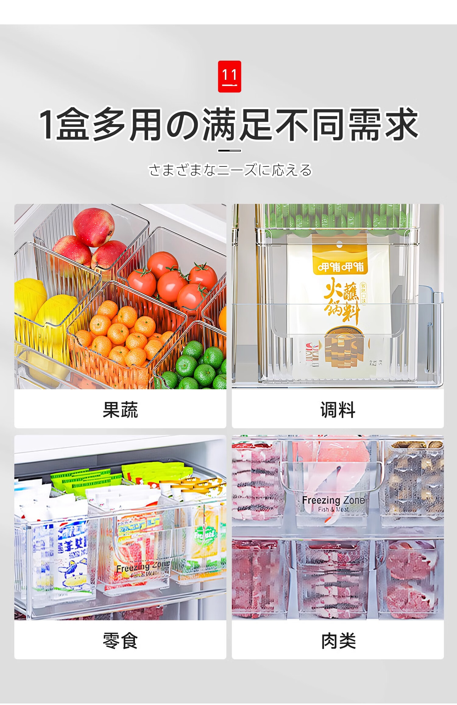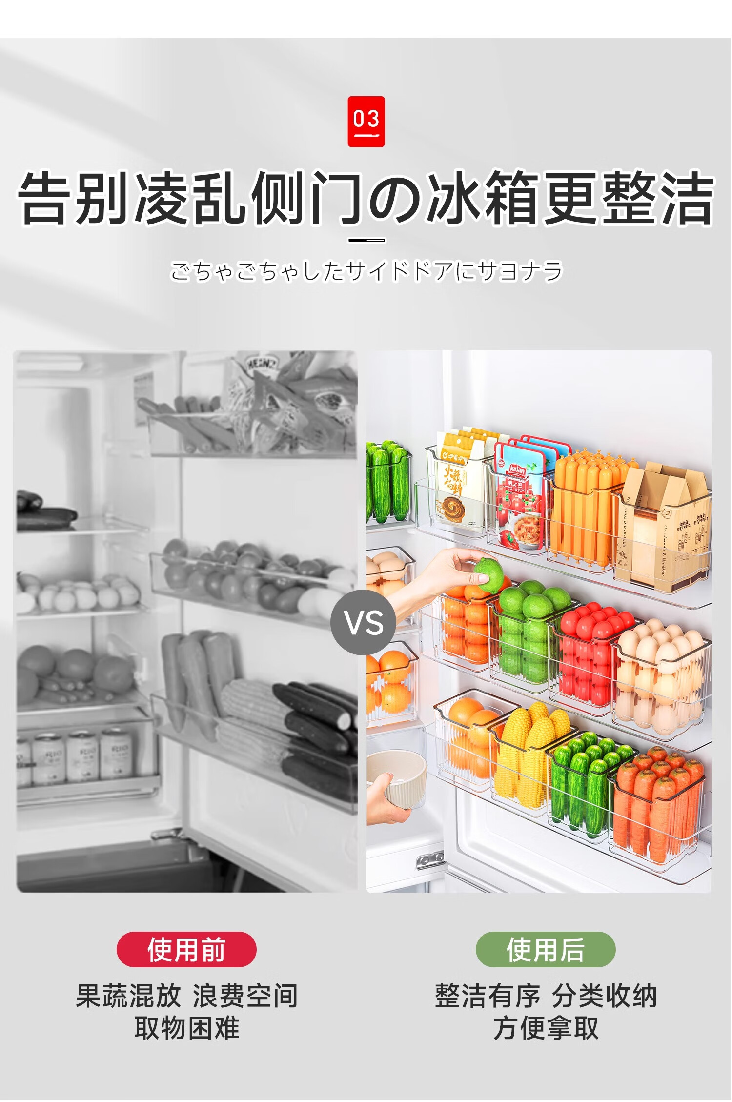 吱凡日本冰箱侧门收纳盒门内侧收纳盒食品级冷藏整理盒保鲜盒整理分格 【9个装】单层小号【可冷冻】