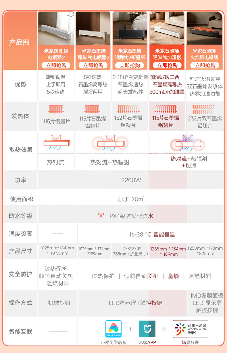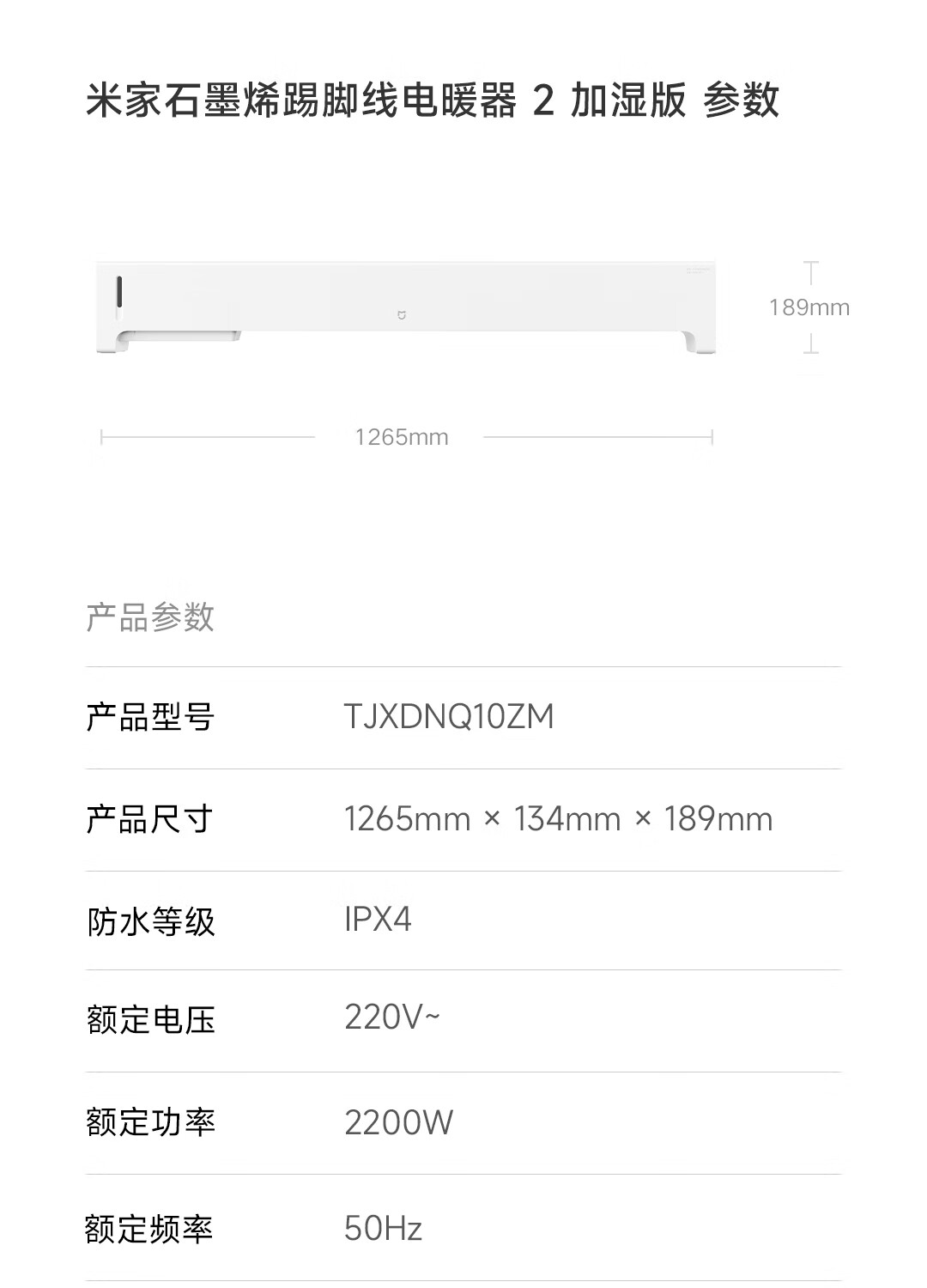 米家小米取暖器APP智能石墨烯踢脚线电暖器2加湿版京东自营5秒速热加湿取暖二合一家用TJXDNQ10ZM