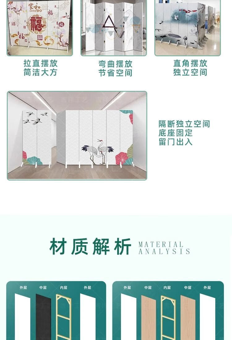 欣慕雅屏风隔断客厅入户新款家用办公室美容院新中式移动轻奢隔断墙定制 N1 3扇防透 (1.2米宽 *1.8米高)