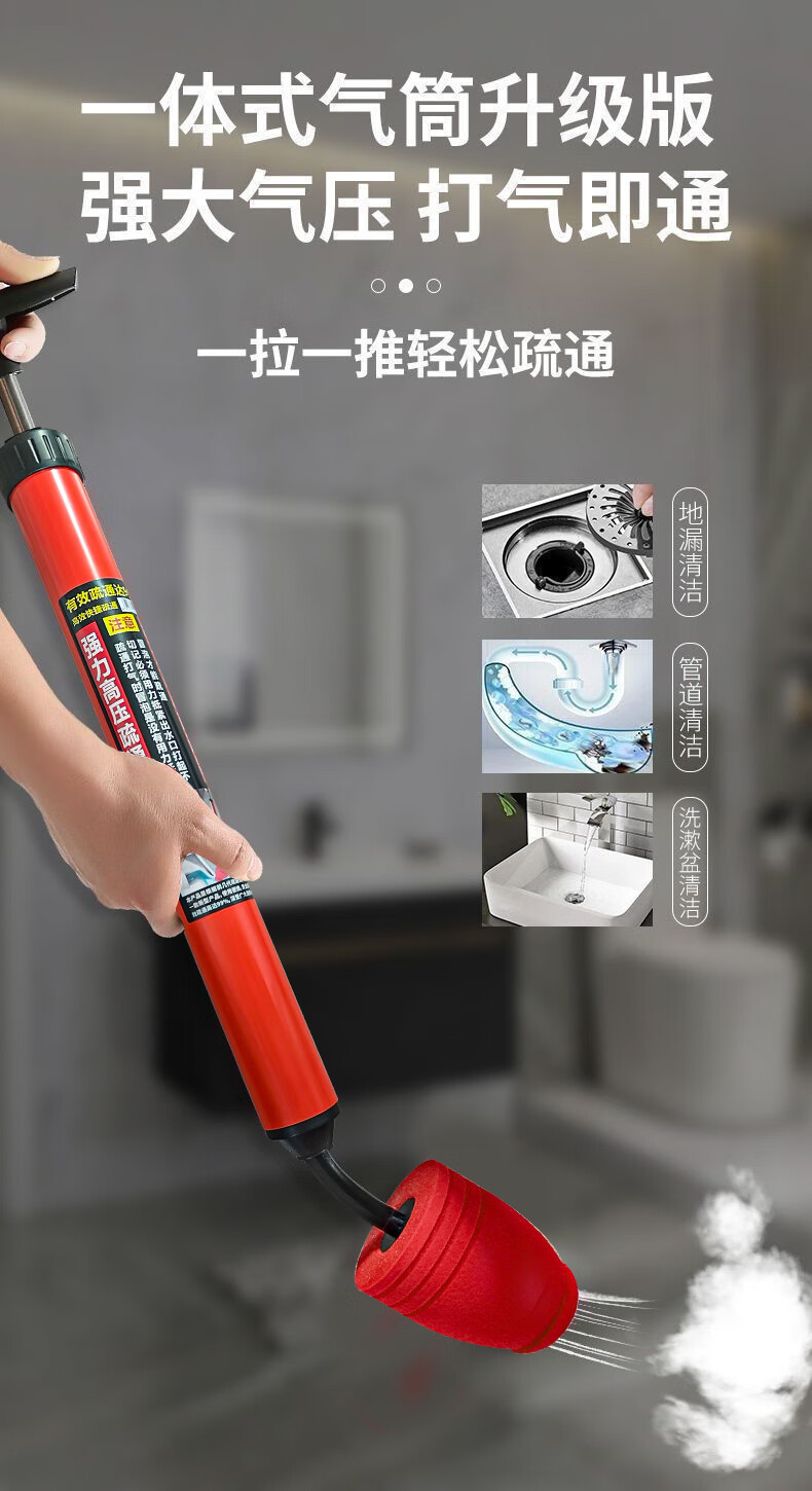 净腾(GINETARR)马桶疏通器管道疏通神器一炮通厨房下水管道地漏堵塞疏通工具 【马桶/地漏】疏通器