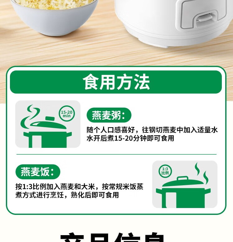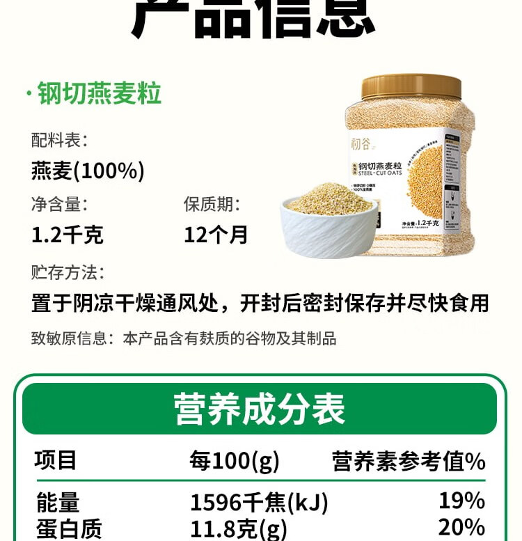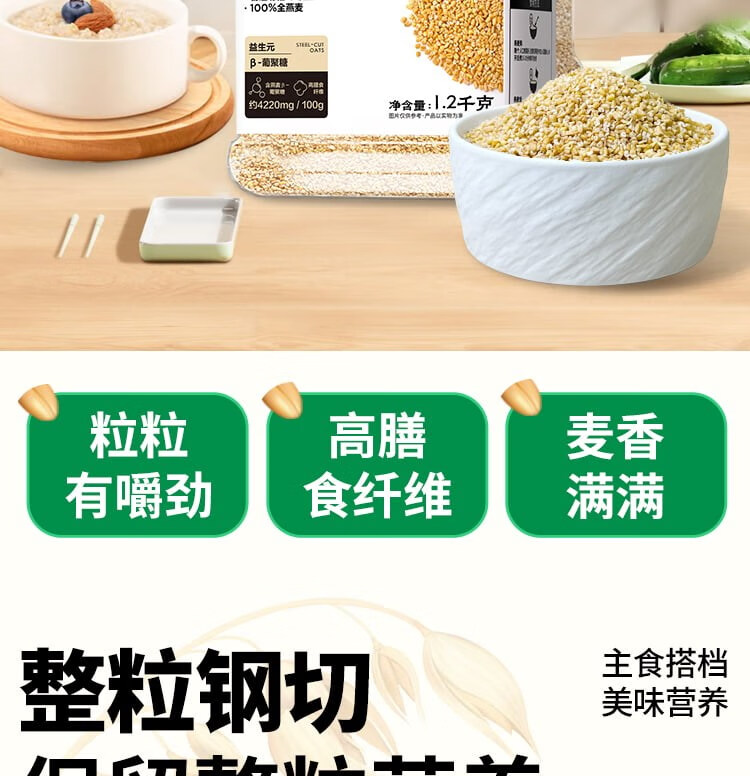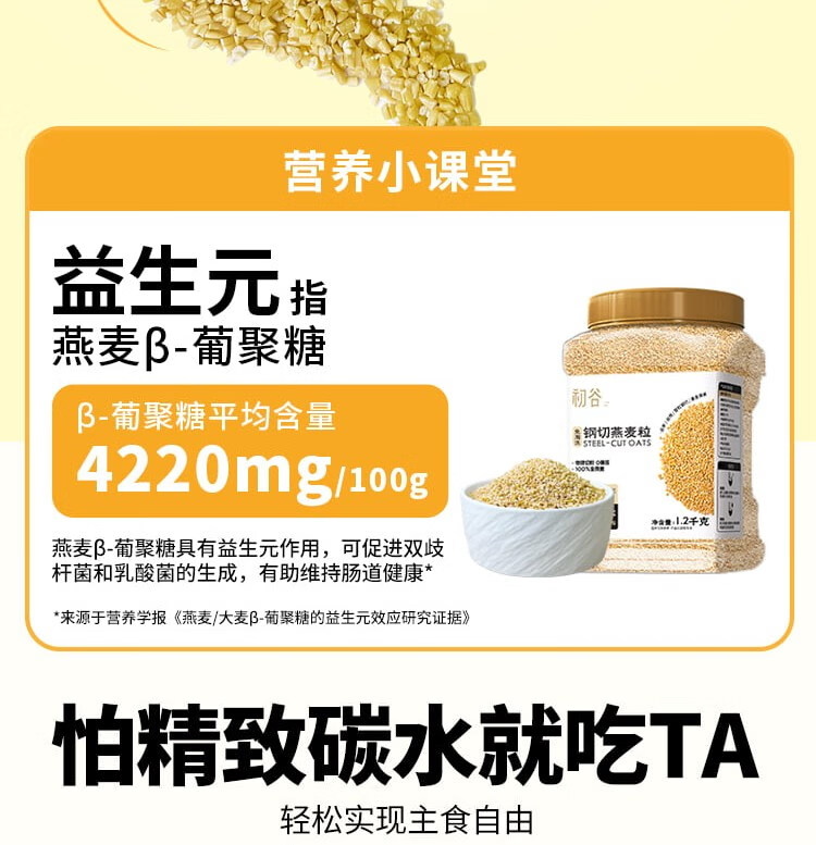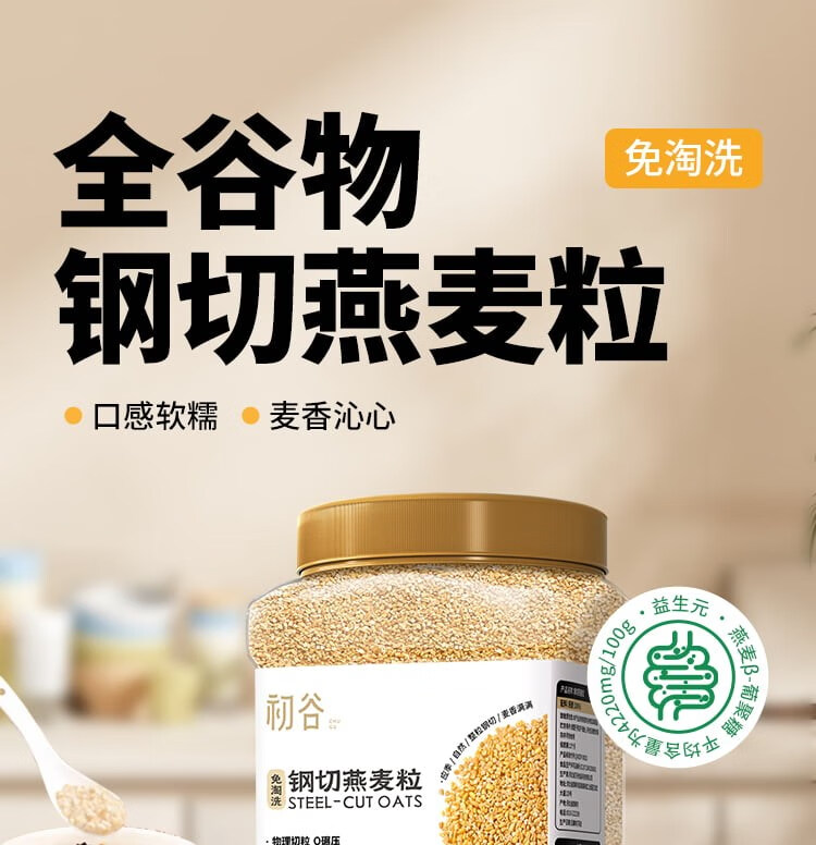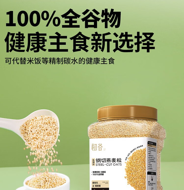 初谷钢切燕麦粒1200g罐装原味无添加蔗糖高纤麦片早餐谷物代餐