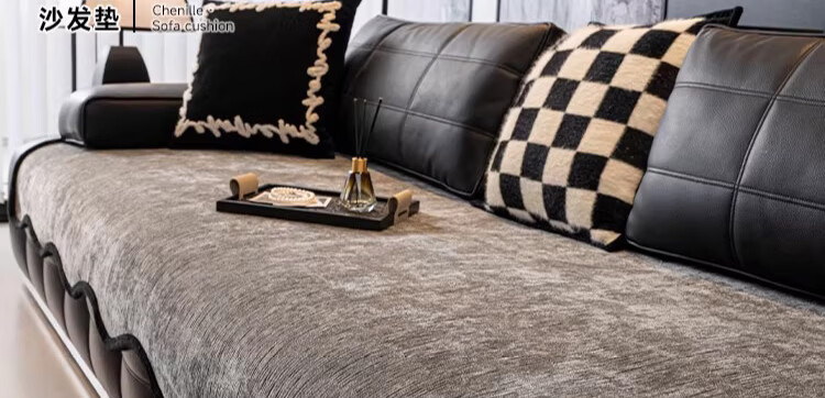 无印良品劳伦斯沙发垫2025新款轻奢高级感防滑异形皮沙发专用垫一片式坐垫 3.0升级雪尼尔-异形寻野-深灰【固定防滑】 70*180cm (大两人位)