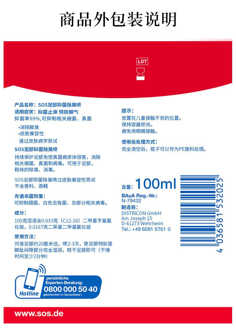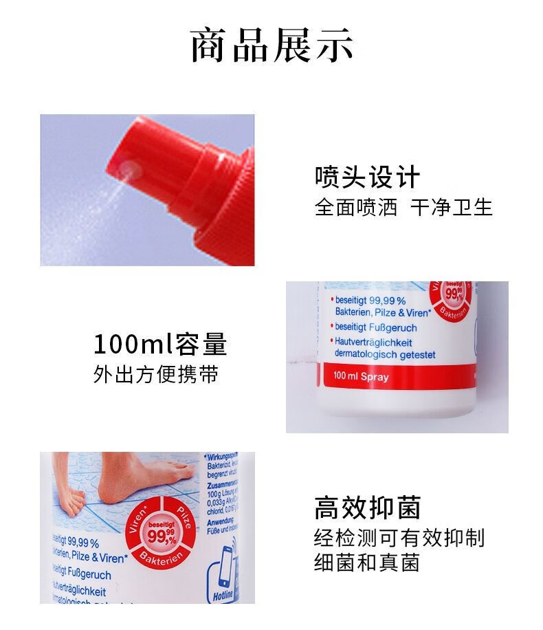 SOS德国原装进口脚气水100ml脚部除味喷雾除异味足部抑菌消毒旅行装 1盒装止痒祛臭味 100ml 1瓶