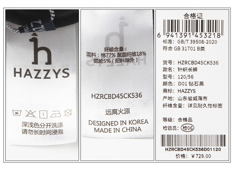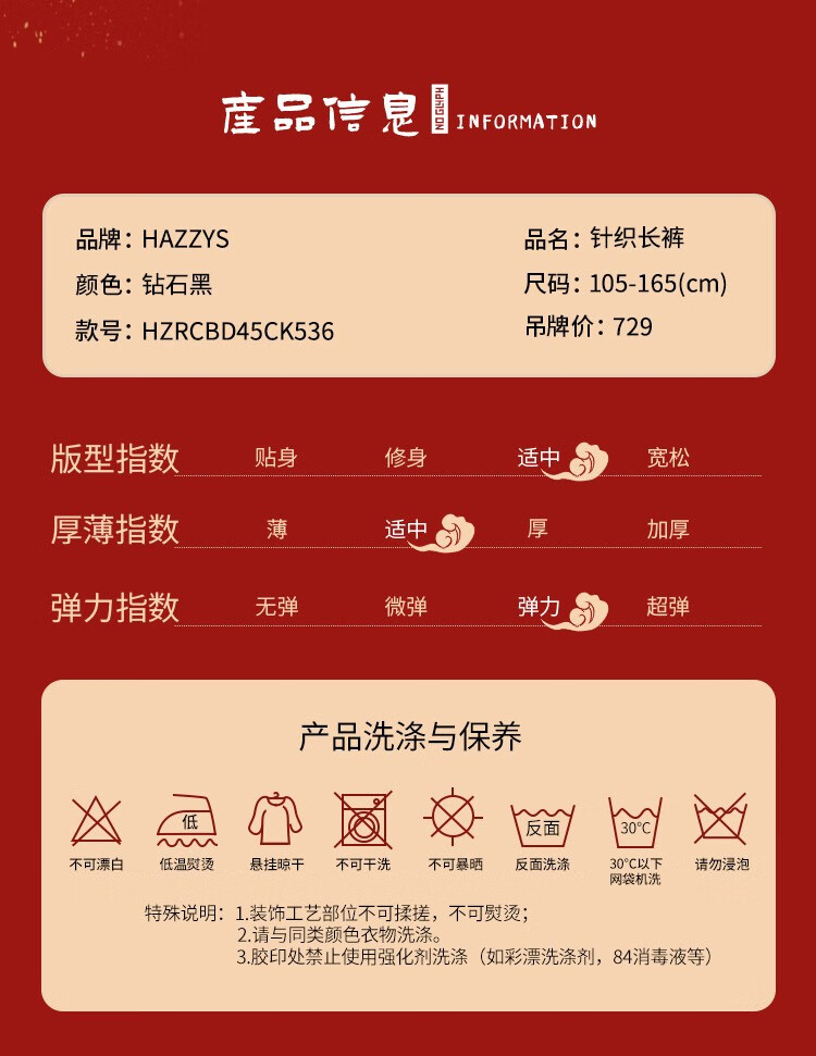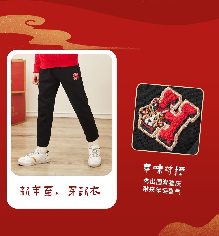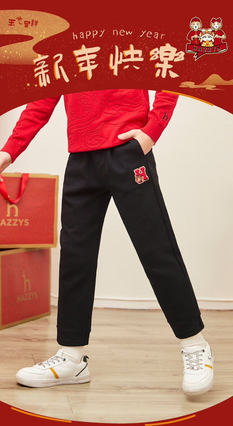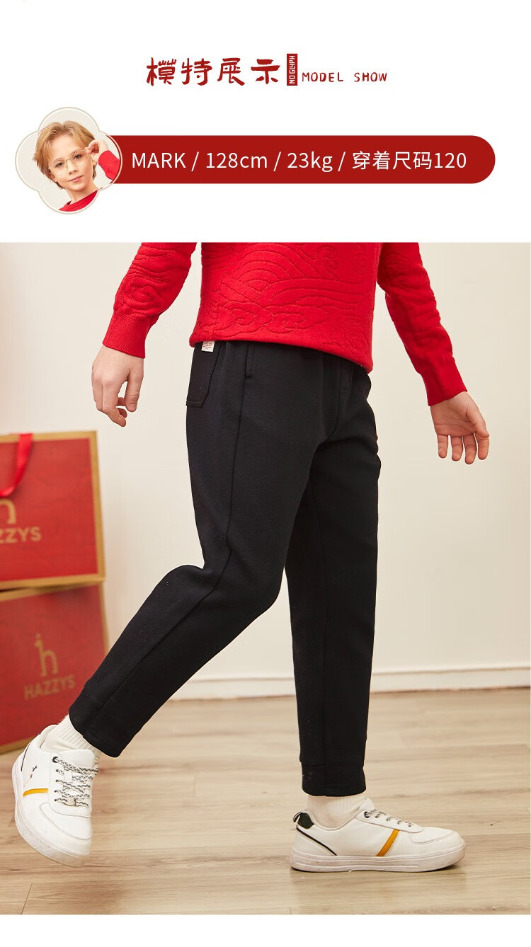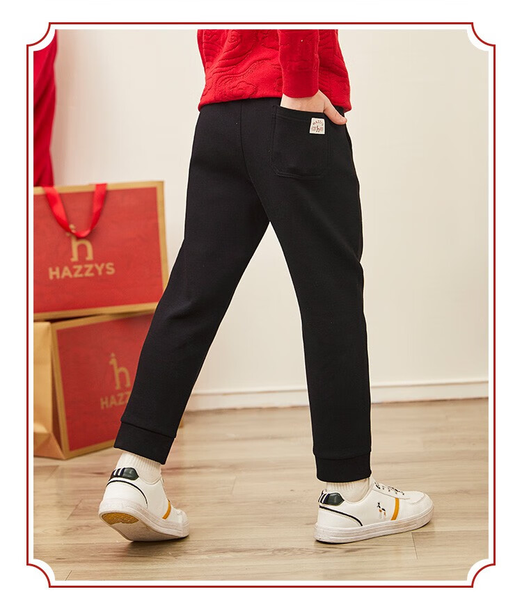 哈吉斯(HAZZYS)童装男童春新款红品简约款舒适百搭针织男童长裤 钻石黑 145