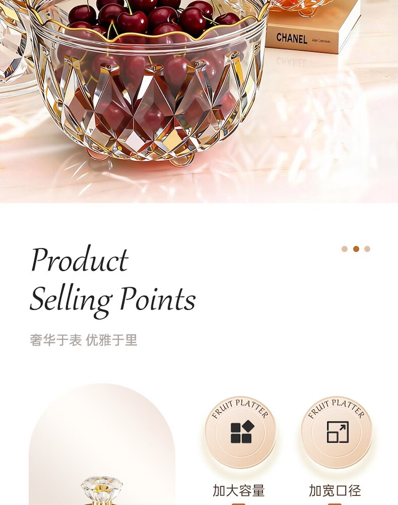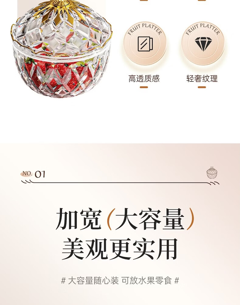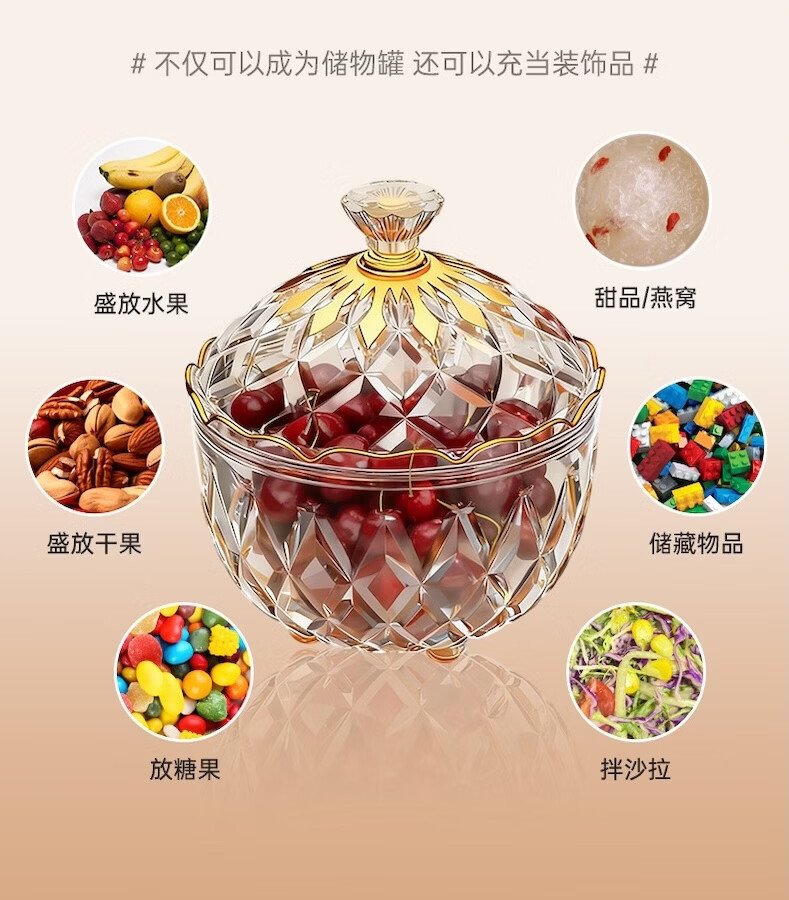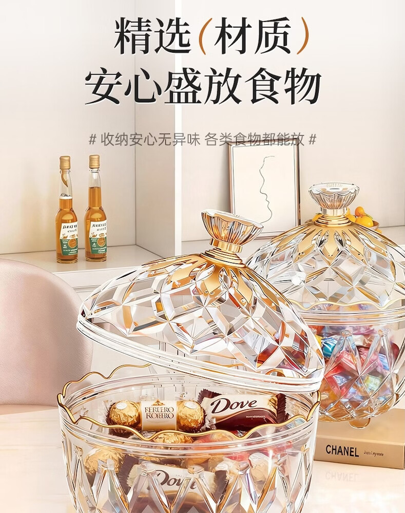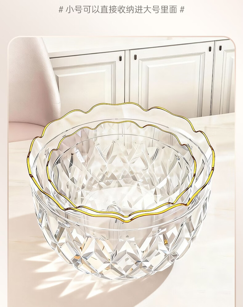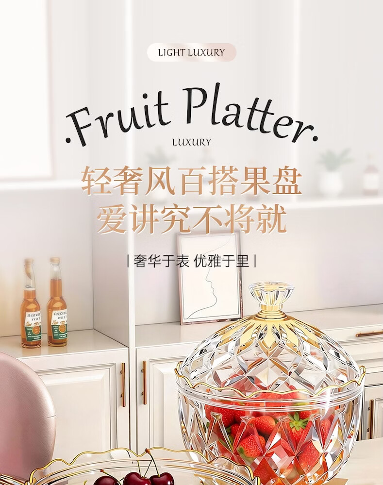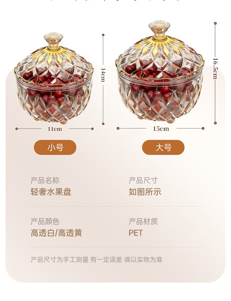 轻奢果盘放水果糖果盒家用客厅高级感水果盘零食收纳高颜值收纳盒 轻奢水果盘-透明色小号 1层 1个