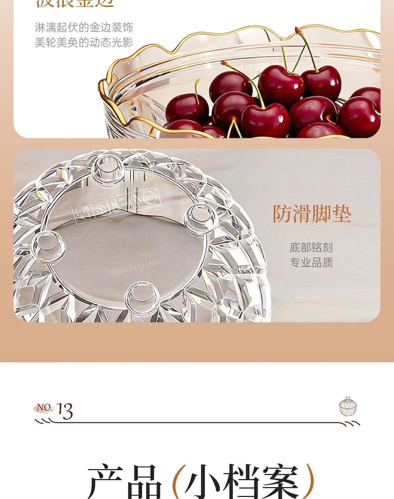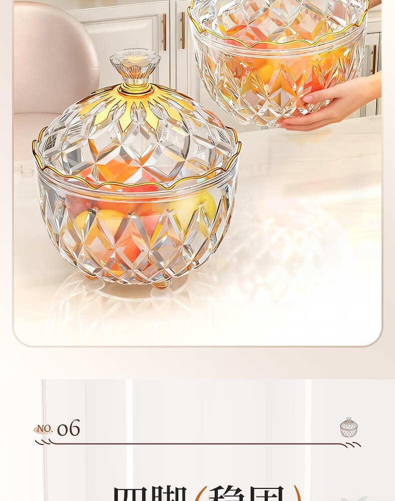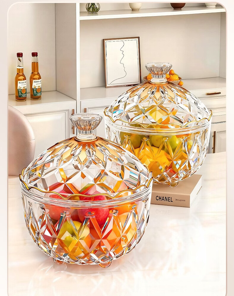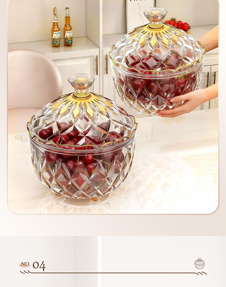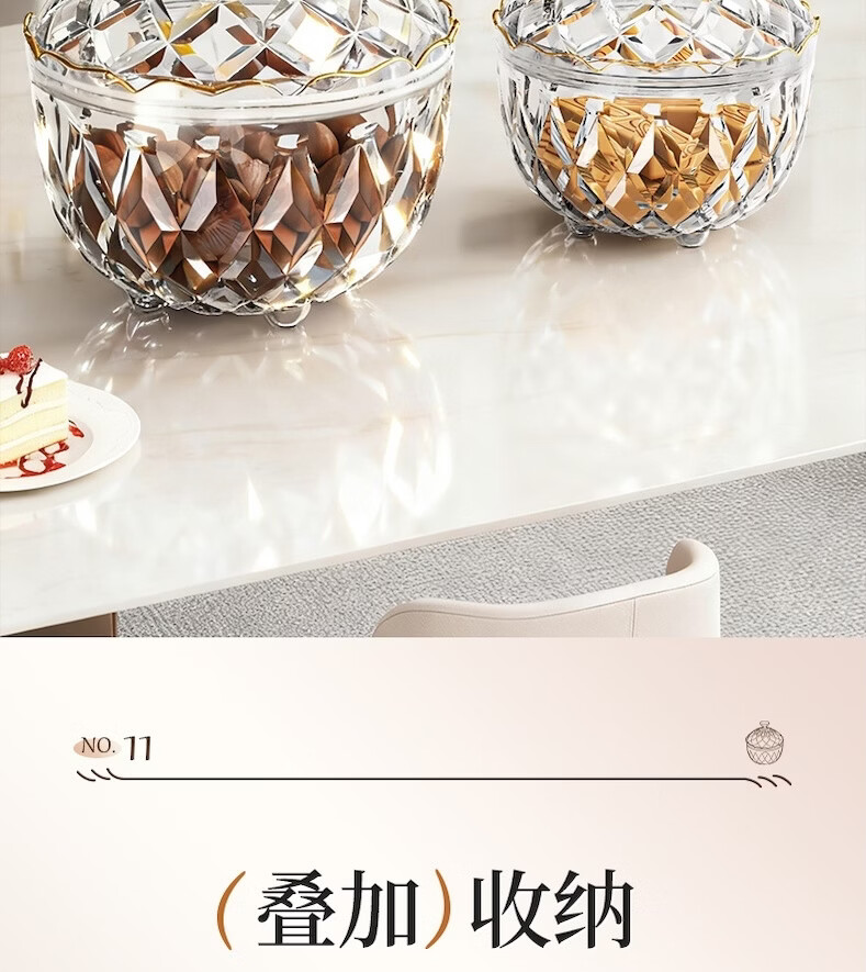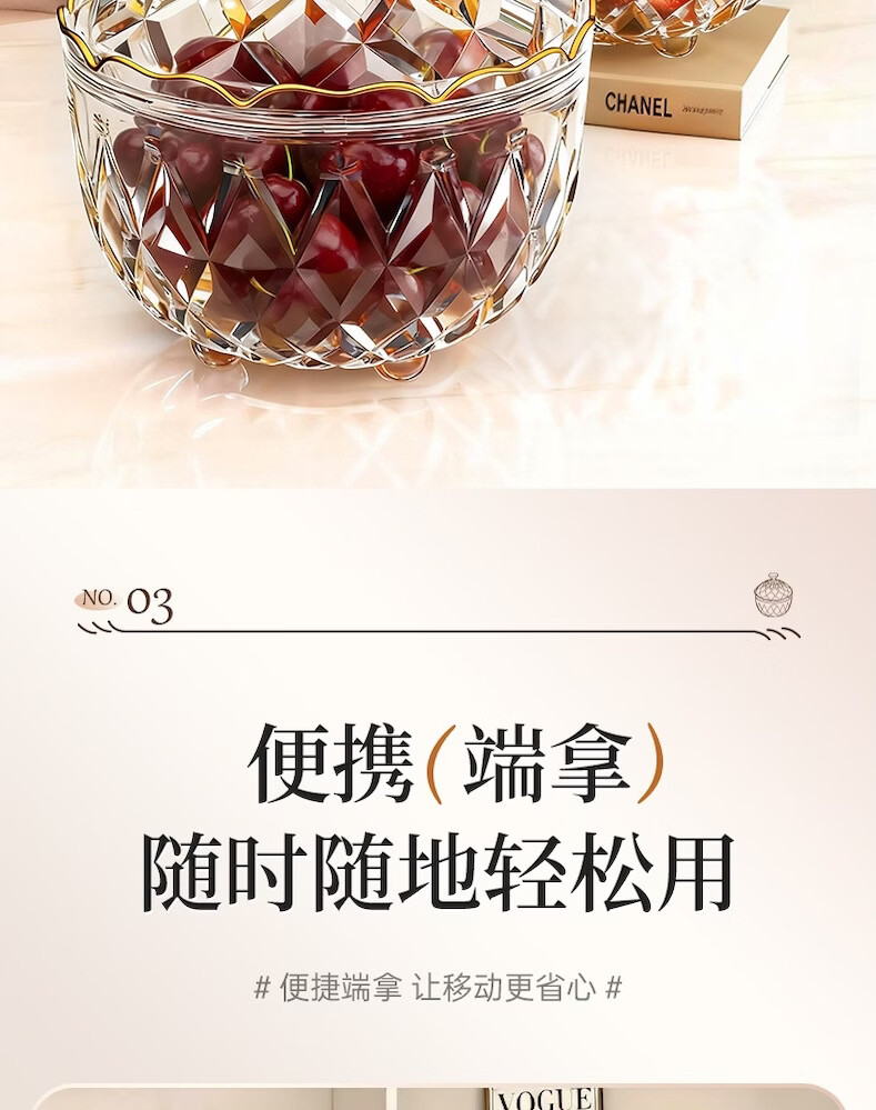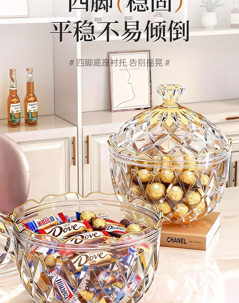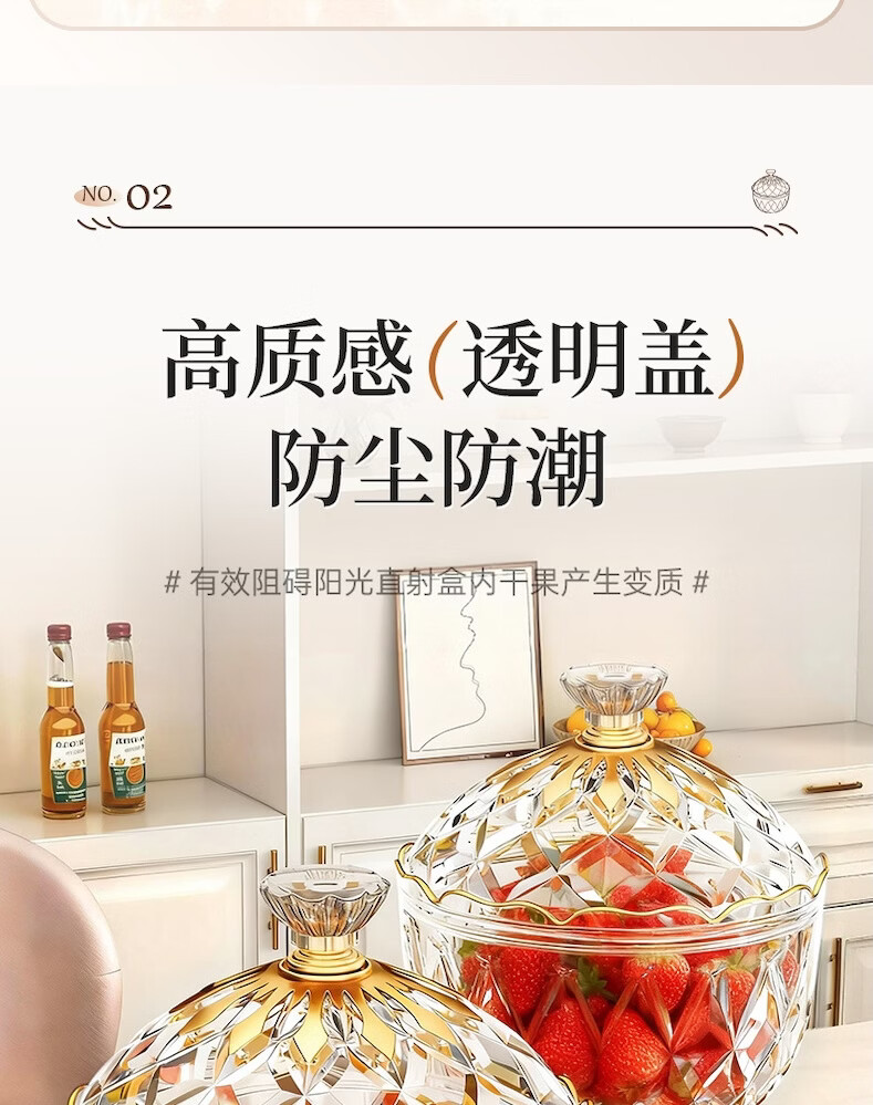 轻奢果盘放水果糖果盒家用客厅高级感水果盘零食收纳高颜值收纳盒 轻奢水果盘-透明色小号 1层 1个