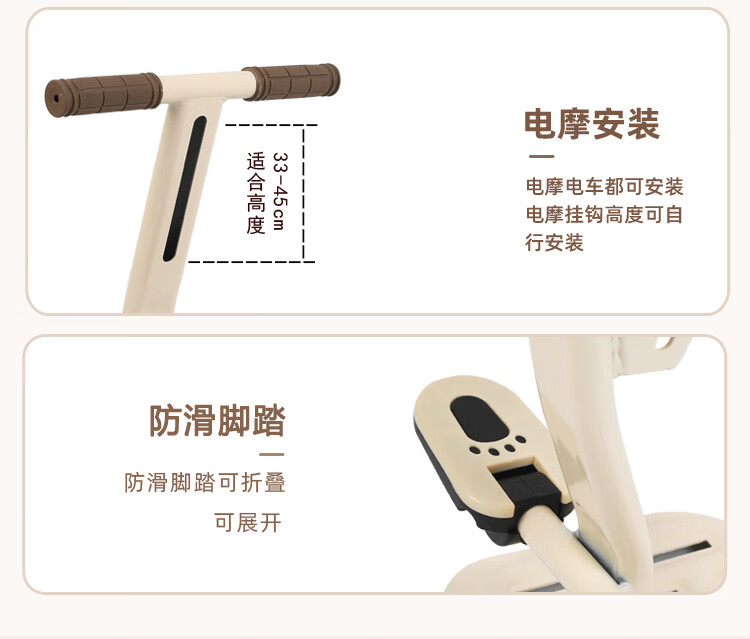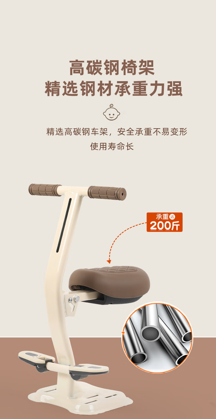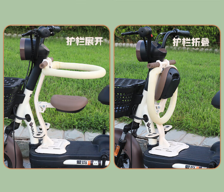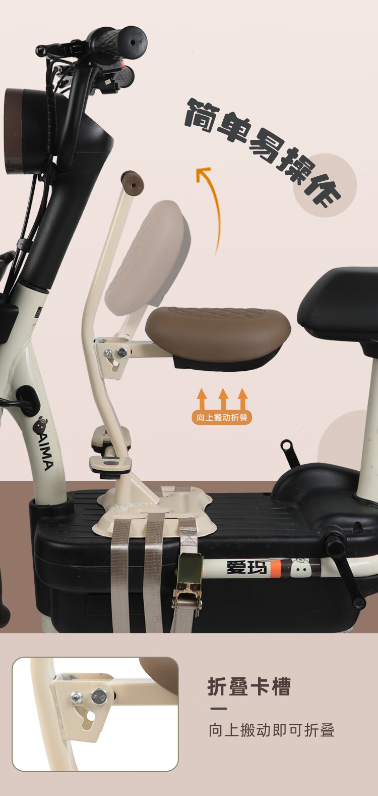 绿野客德国精工电动车儿童座椅前置宝宝电瓶车小电车安全坐椅可折叠坐凳 米咖色1秒折叠【一体式承重架】