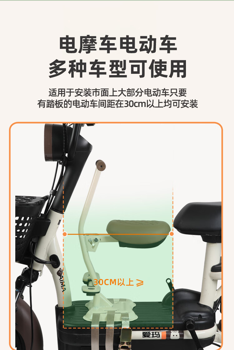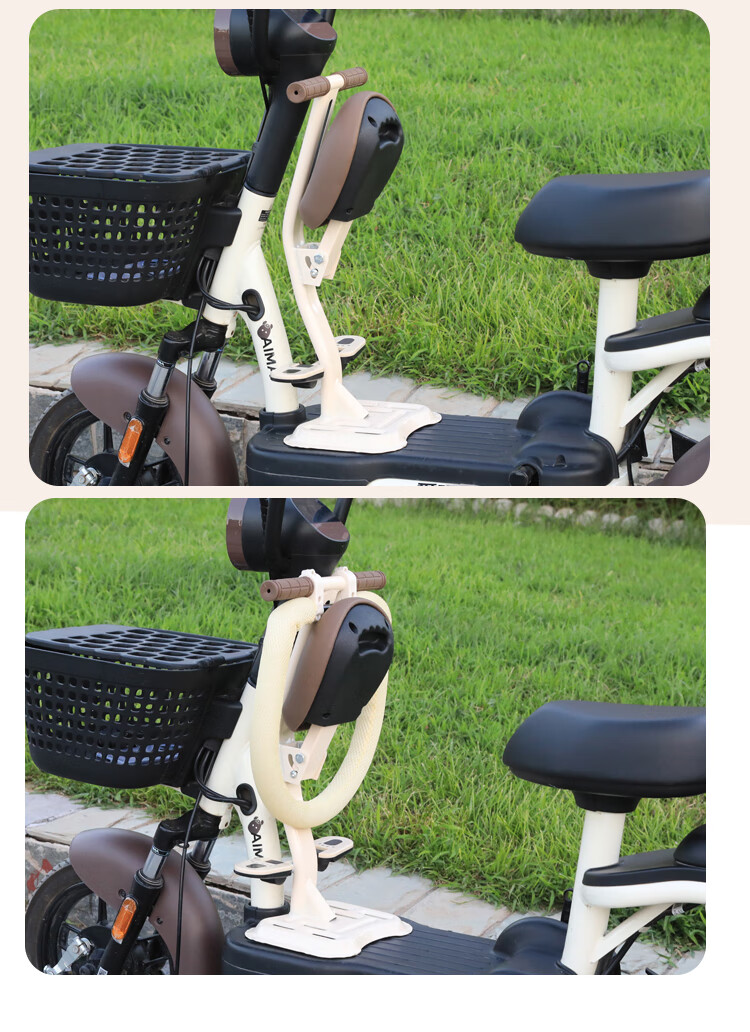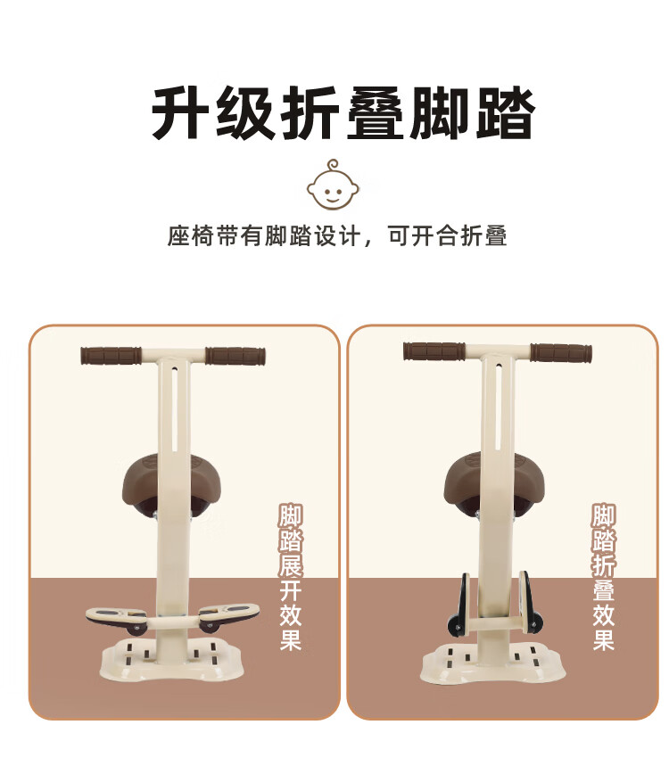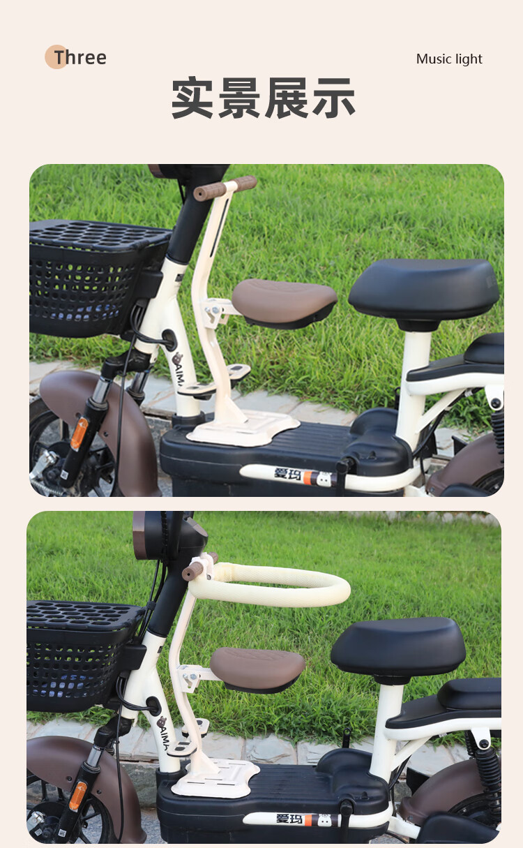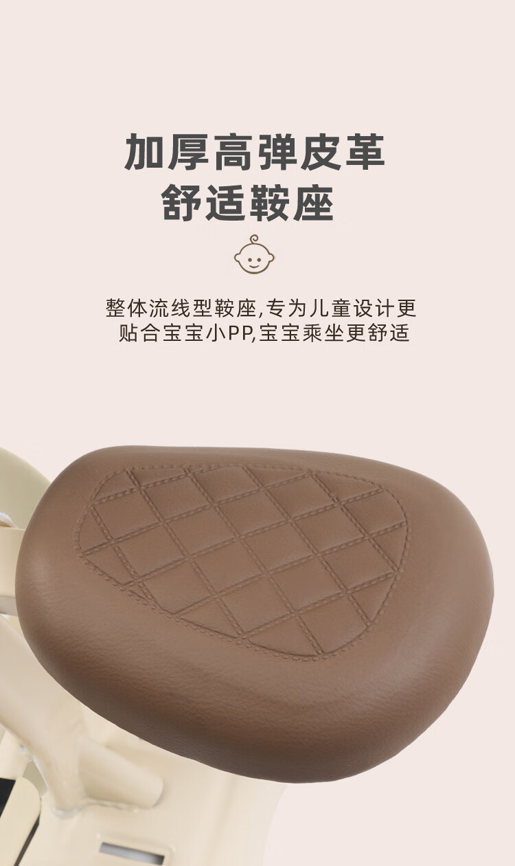 绿野客德国精工电动车儿童座椅前置宝宝电瓶车小电车安全坐椅可折叠坐凳 米咖色1秒折叠【一体式承重架】