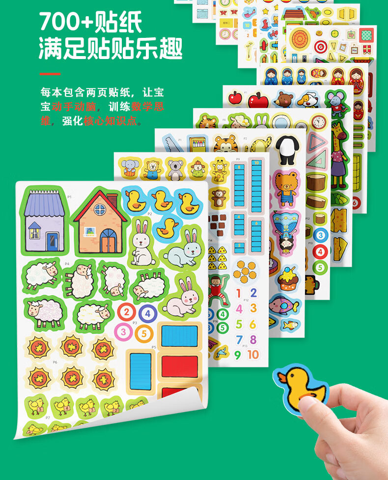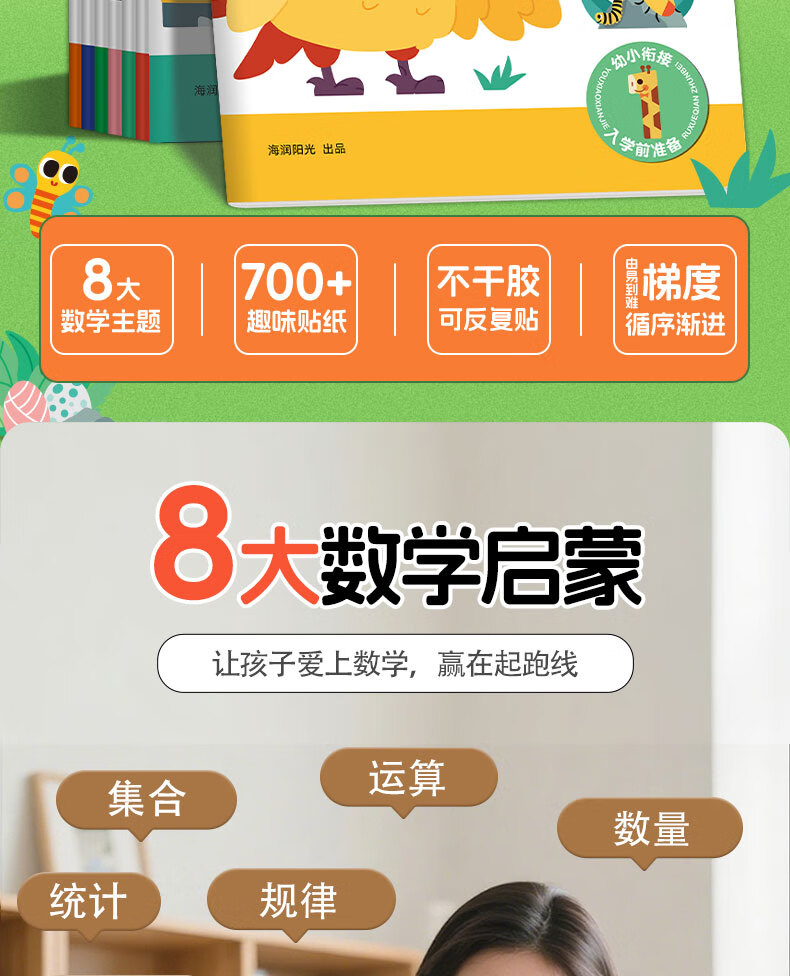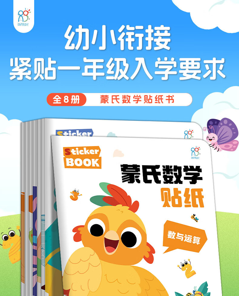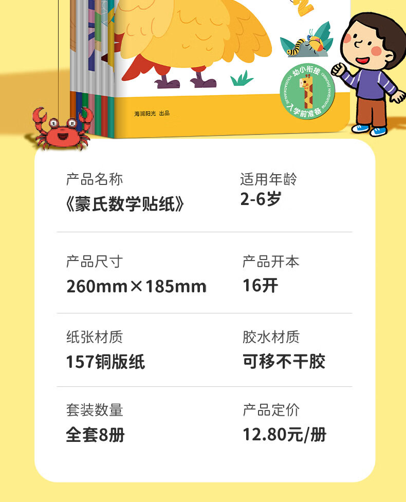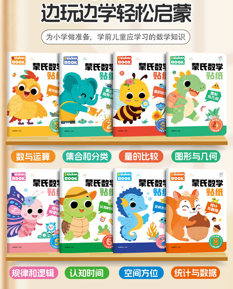 海润阳光 蒙氏数学贴纸全8册 儿童数学启蒙贴纸书2岁3岁宝宝4岁5岁6岁幼儿园学前教育 趣味数学贴纸 阶梯数学贴贴画 蒙氏数学贴纸(全8册)
