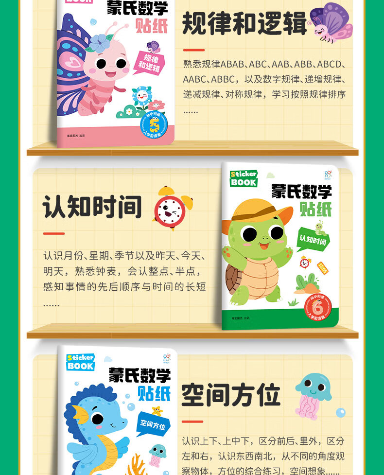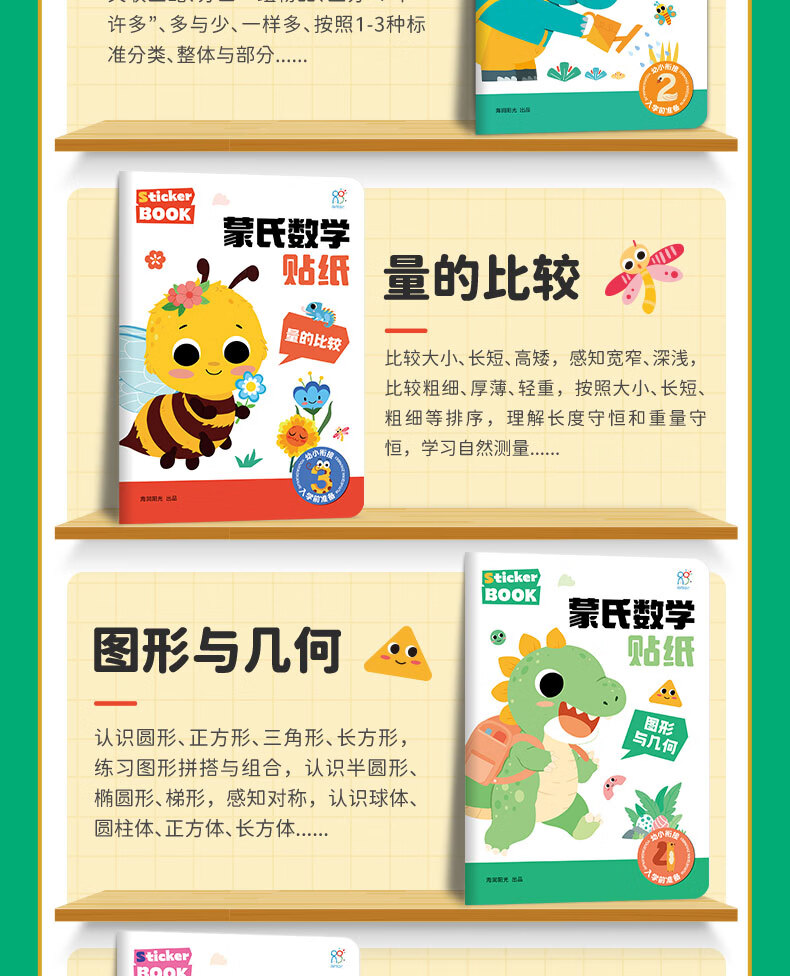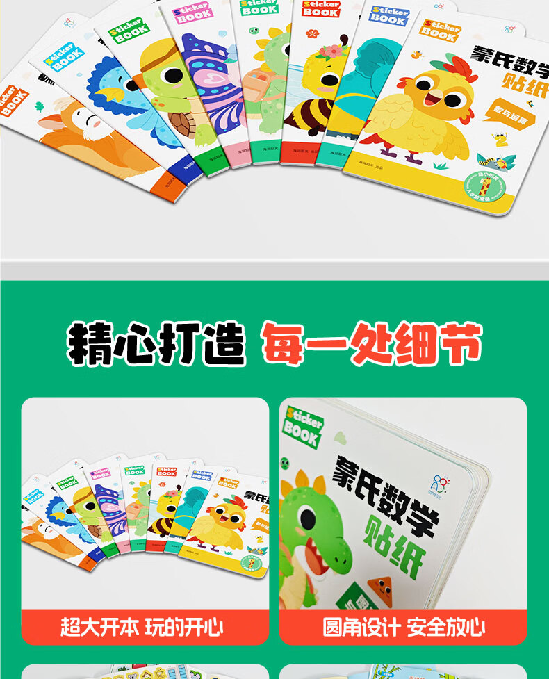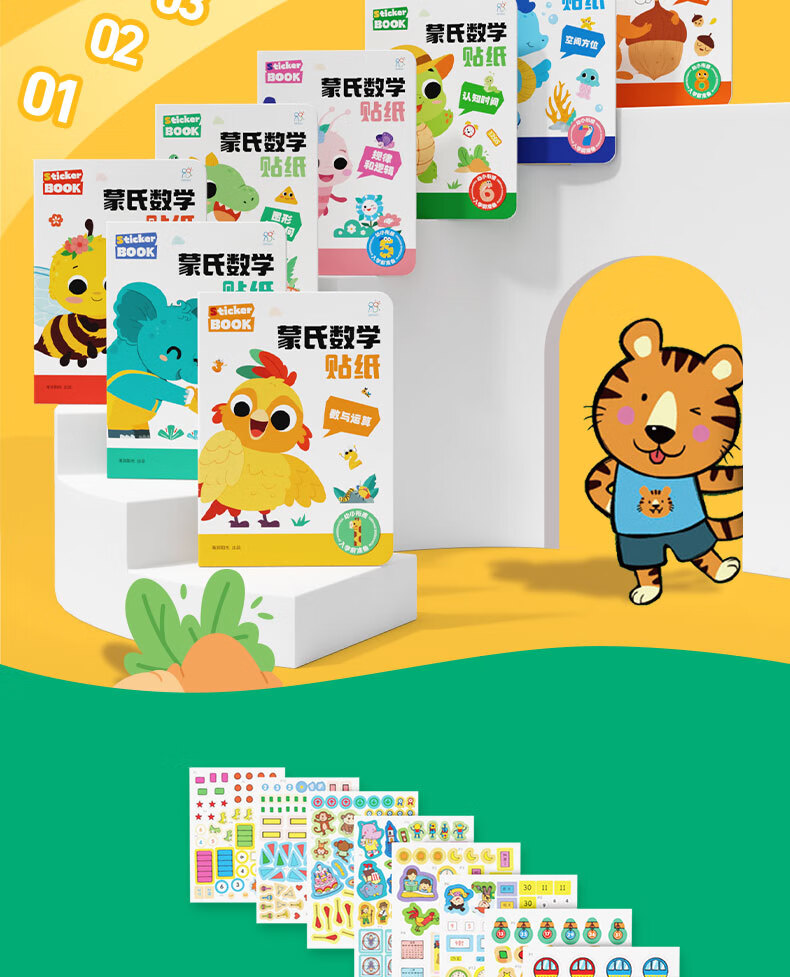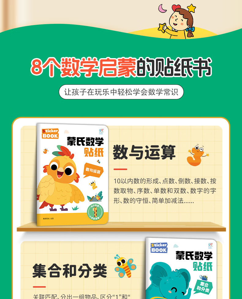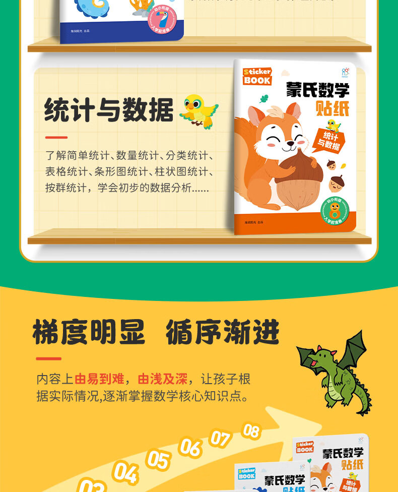 海润阳光 蒙氏数学贴纸全8册 儿童数学启蒙贴纸书2岁3岁宝宝4岁5岁6岁幼儿园学前教育 趣味数学贴纸 阶梯数学贴贴画 蒙氏数学贴纸(全8册)