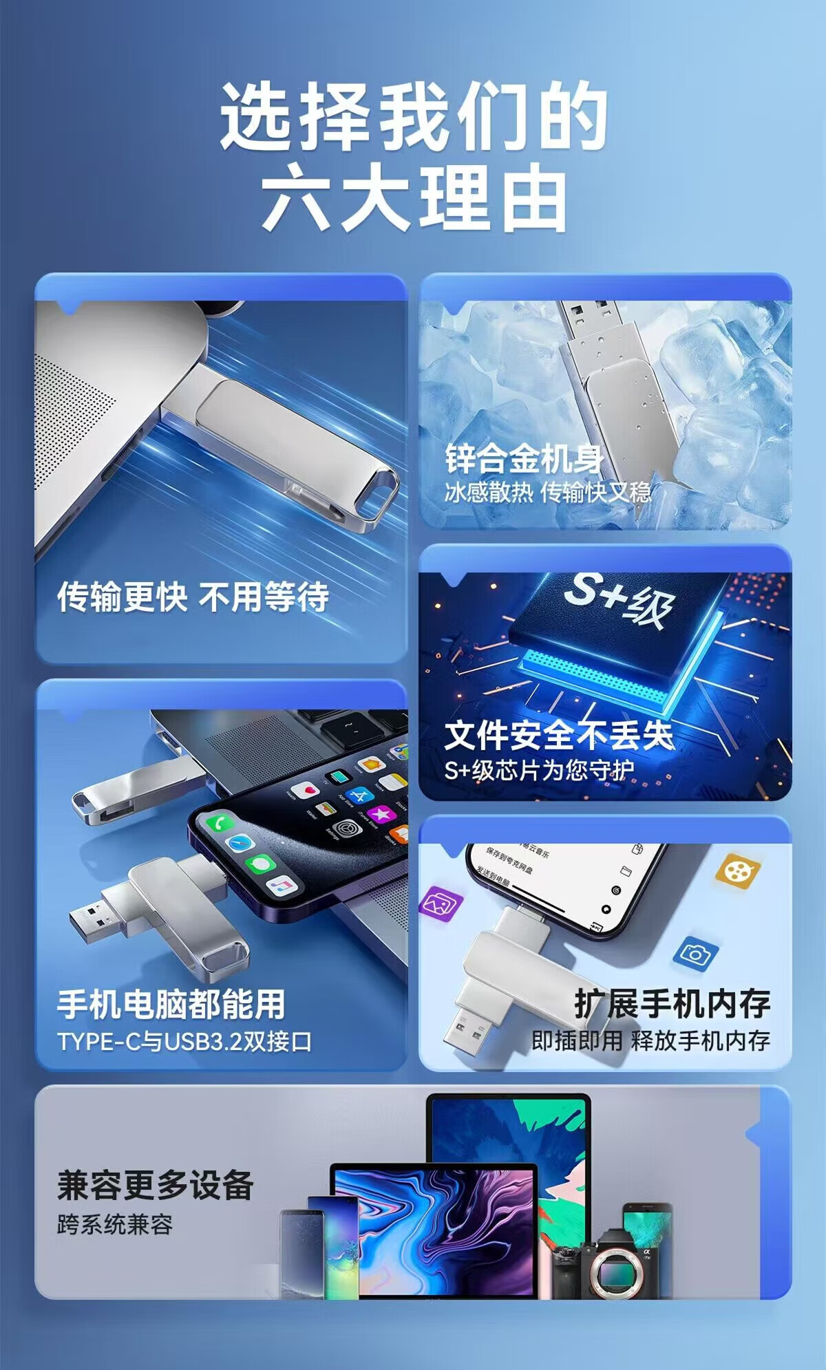 金土噸u盘大容量Type-c 2tb高速3.01TB手机电脑车载学生办公优盘 【银色3.0】2TB(五年质保)