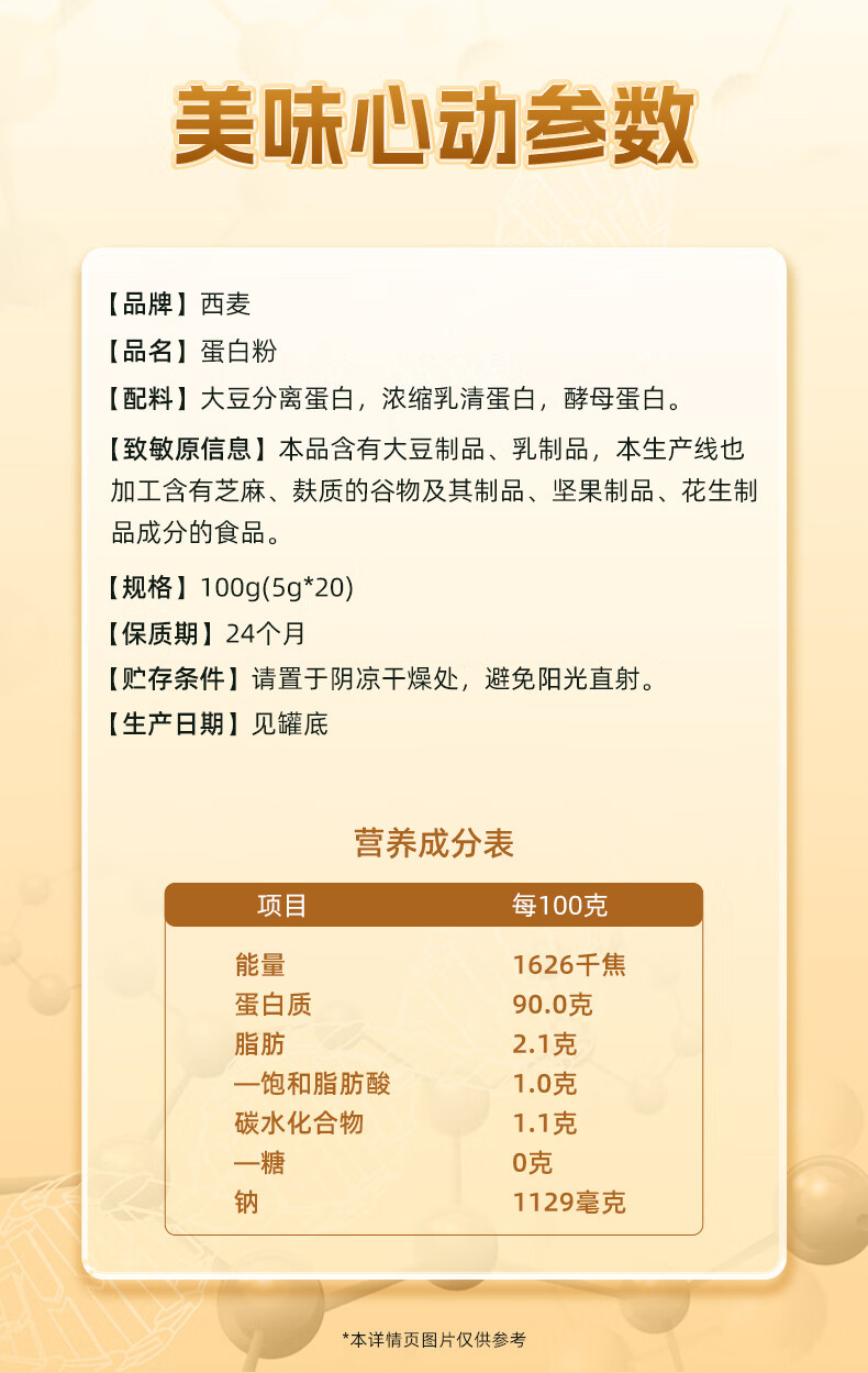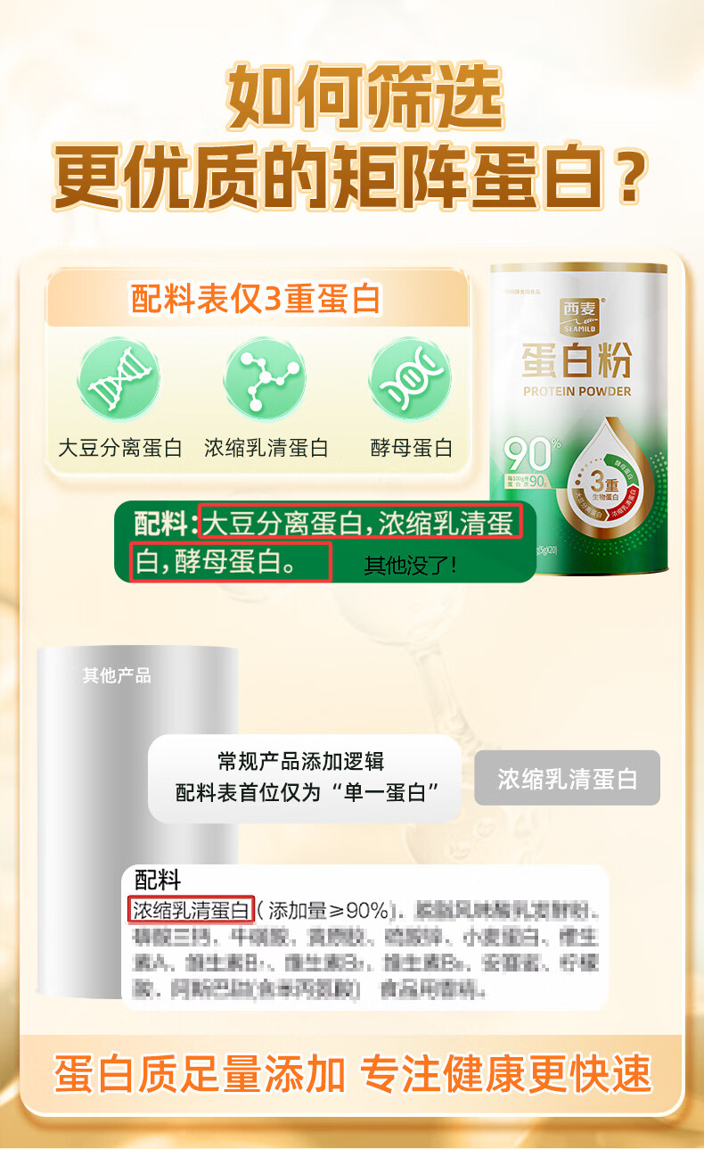 西麦蛋白粉 大豆分离蛋白浓缩乳清蛋白酵母蛋白90%高蛋白易吸收营养品 100g*3罐