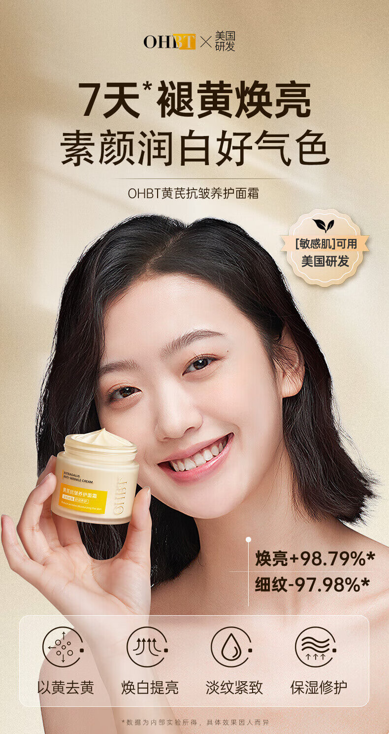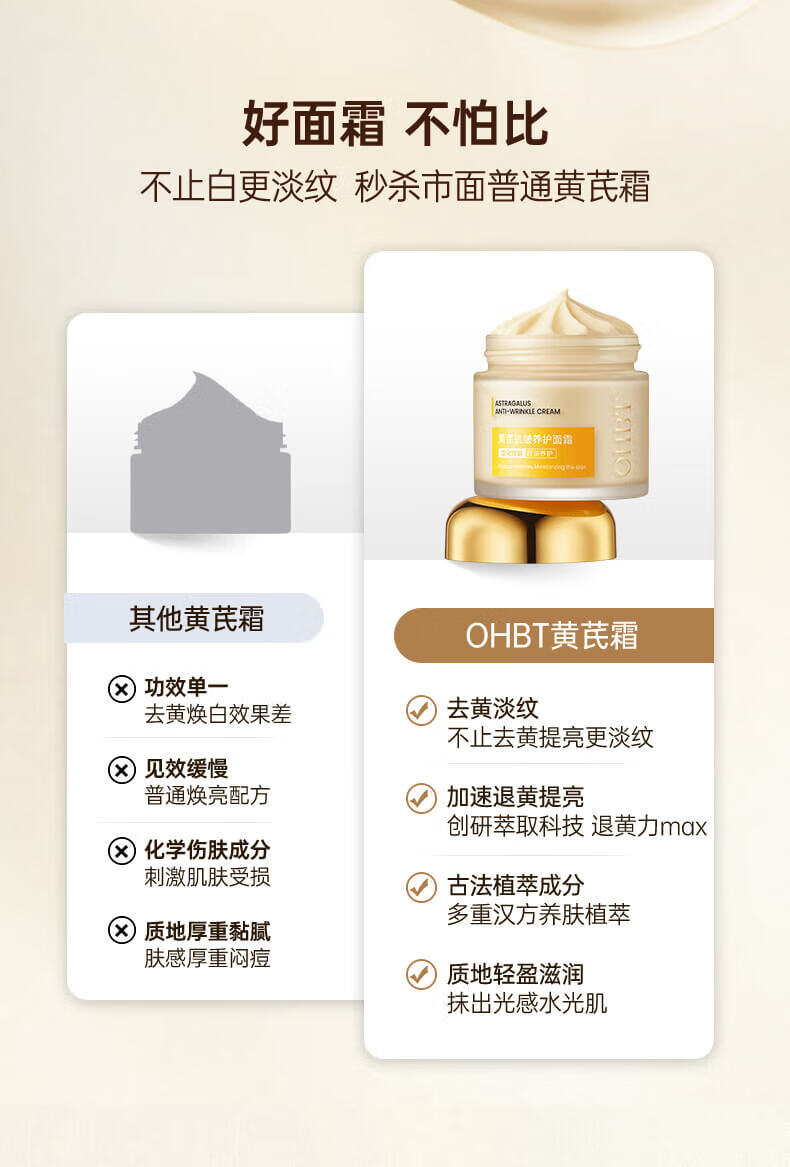 OHBT黄芪抗皱面霜紧致淡化细纹去黄抗衰老牌子国货保湿补水提亮男女士 【祛痘淡印】壬二酸祛痘面霜