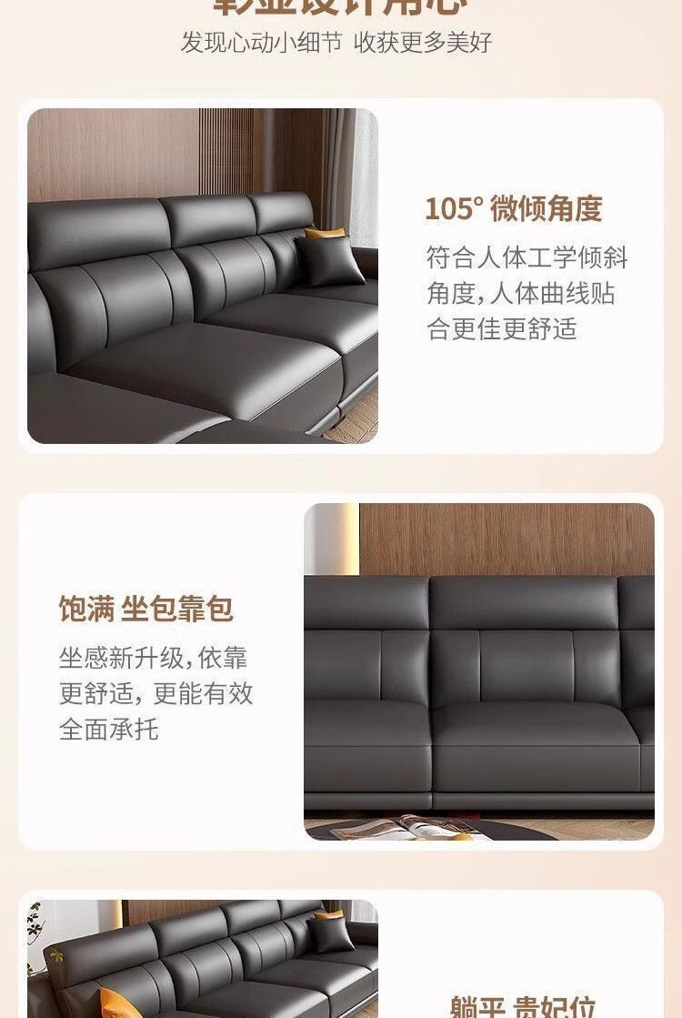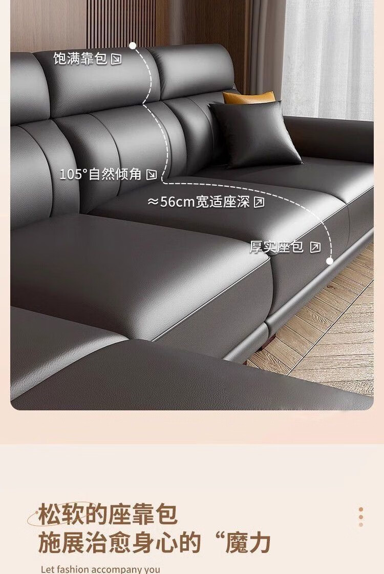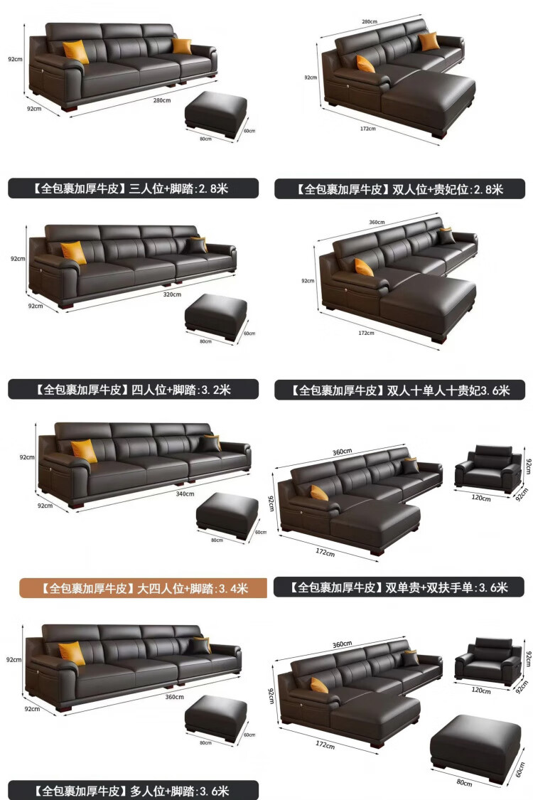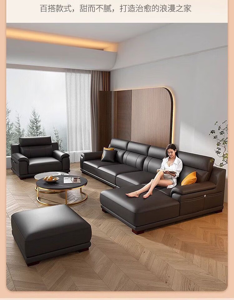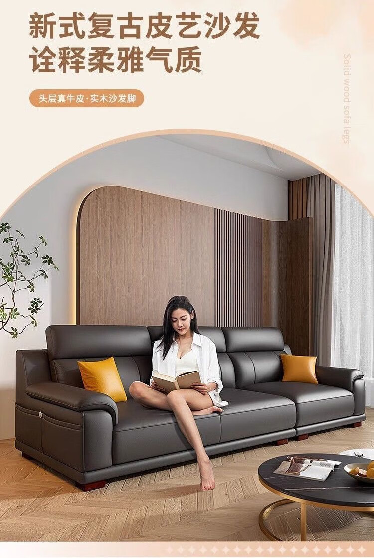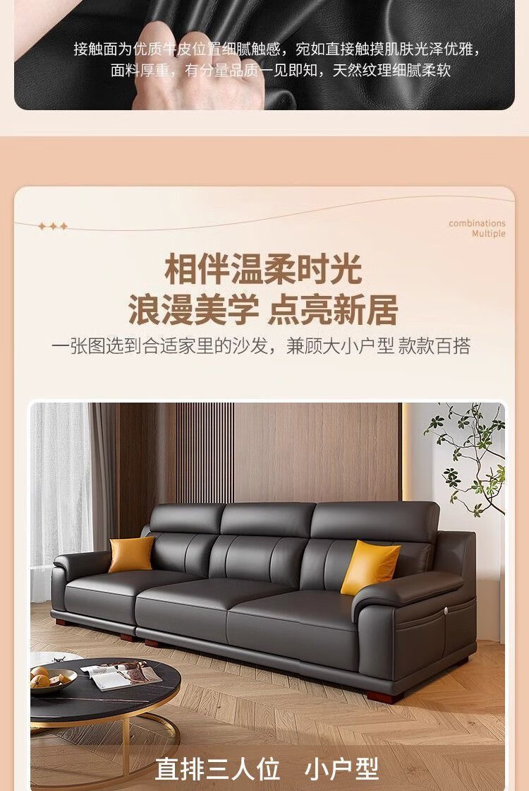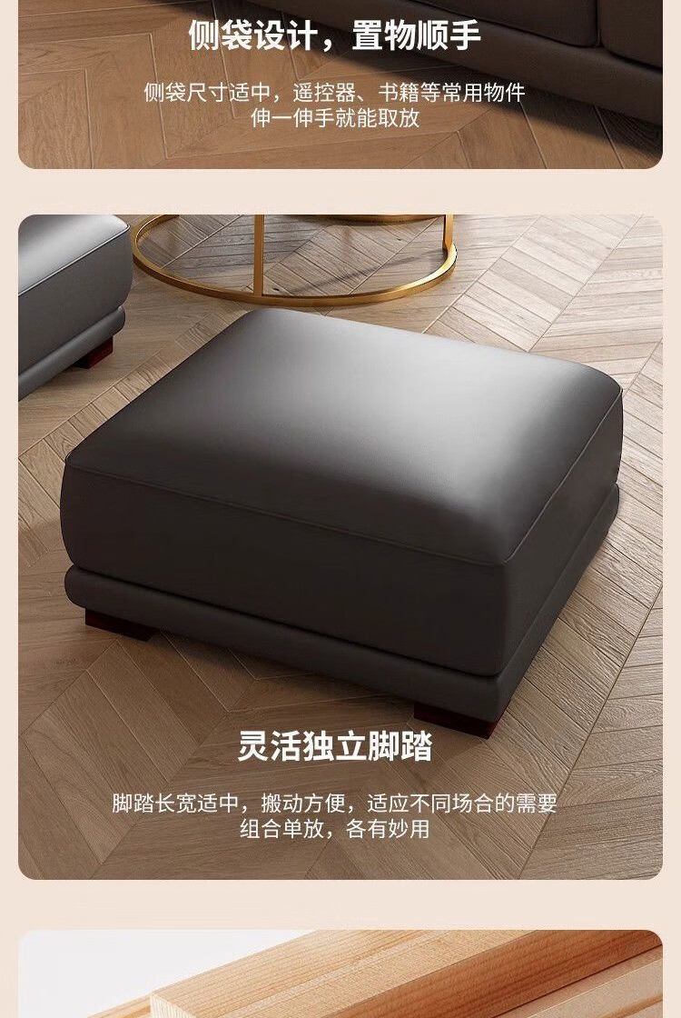 檀福匠2026新款沙发客厅现代简约意式极简大小户型高端轻奢头层牛皮沙发 [360°全包裹加厚牛皮]十年质保 四人位+脚踏 3.2m [加抱枕]