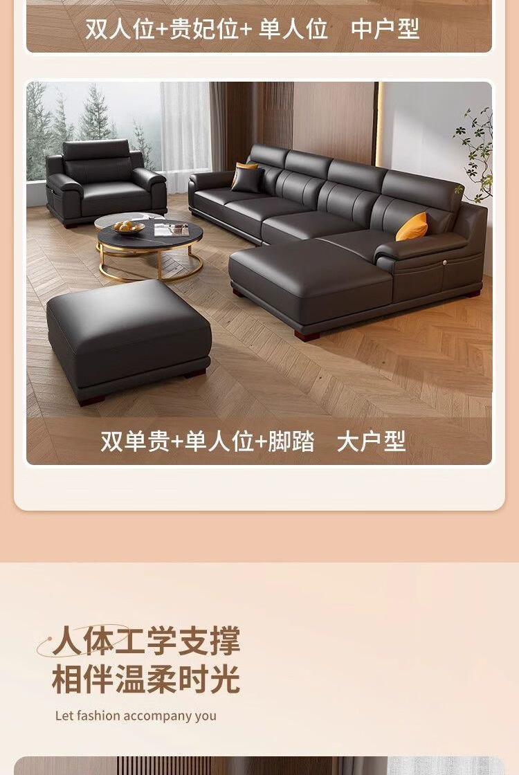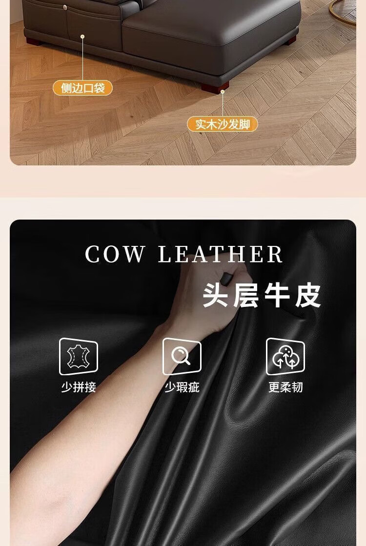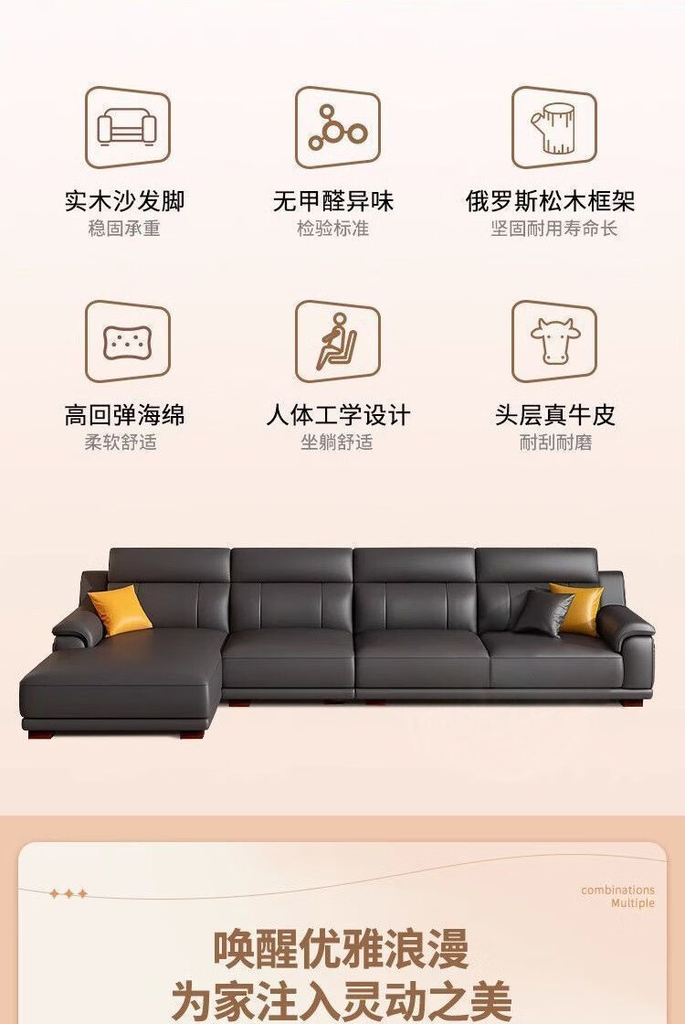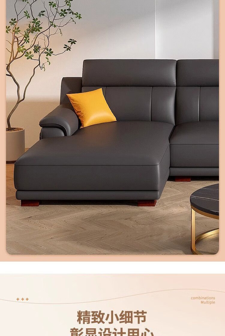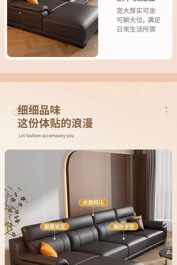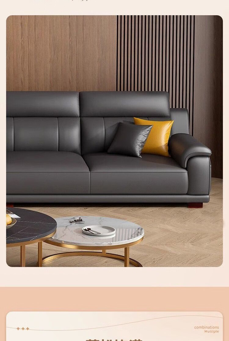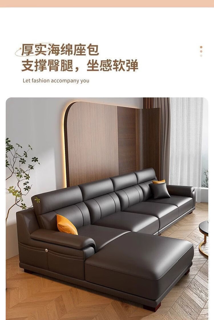 檀福匠2026新款沙发客厅现代简约意式极简大小户型高端轻奢头层牛皮沙发 [360°全包裹加厚牛皮]十年质保 四人位+脚踏 3.2m [加抱枕]