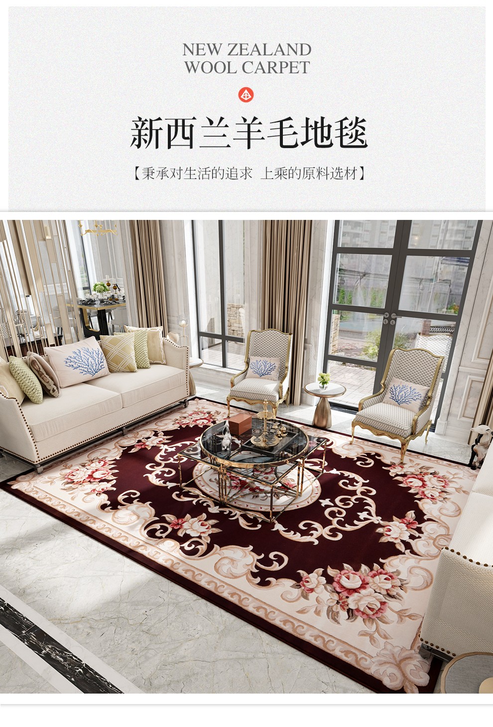 致尚美学100%定制新西兰羊毛地毯客厅欧美式复古中式卧室床边毯新疆民族风 9166R红色-手工定制 2.4米x3.4米-定制