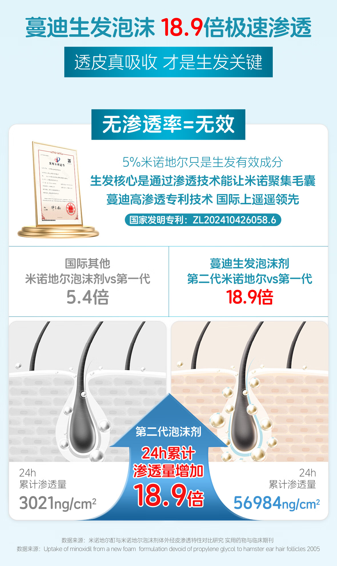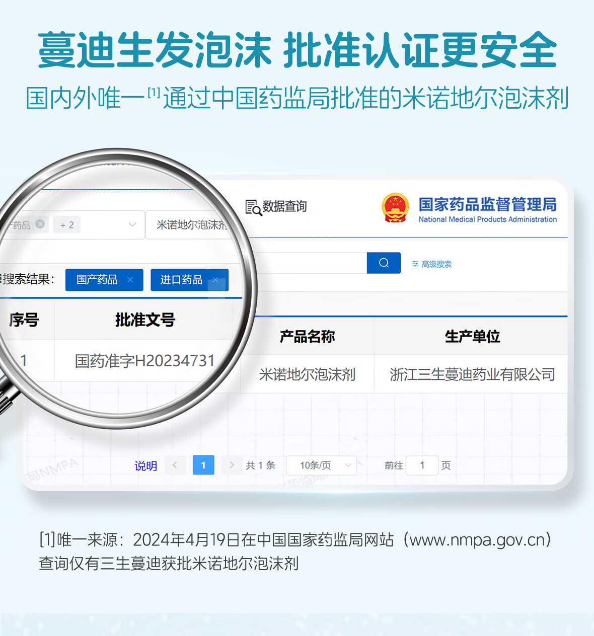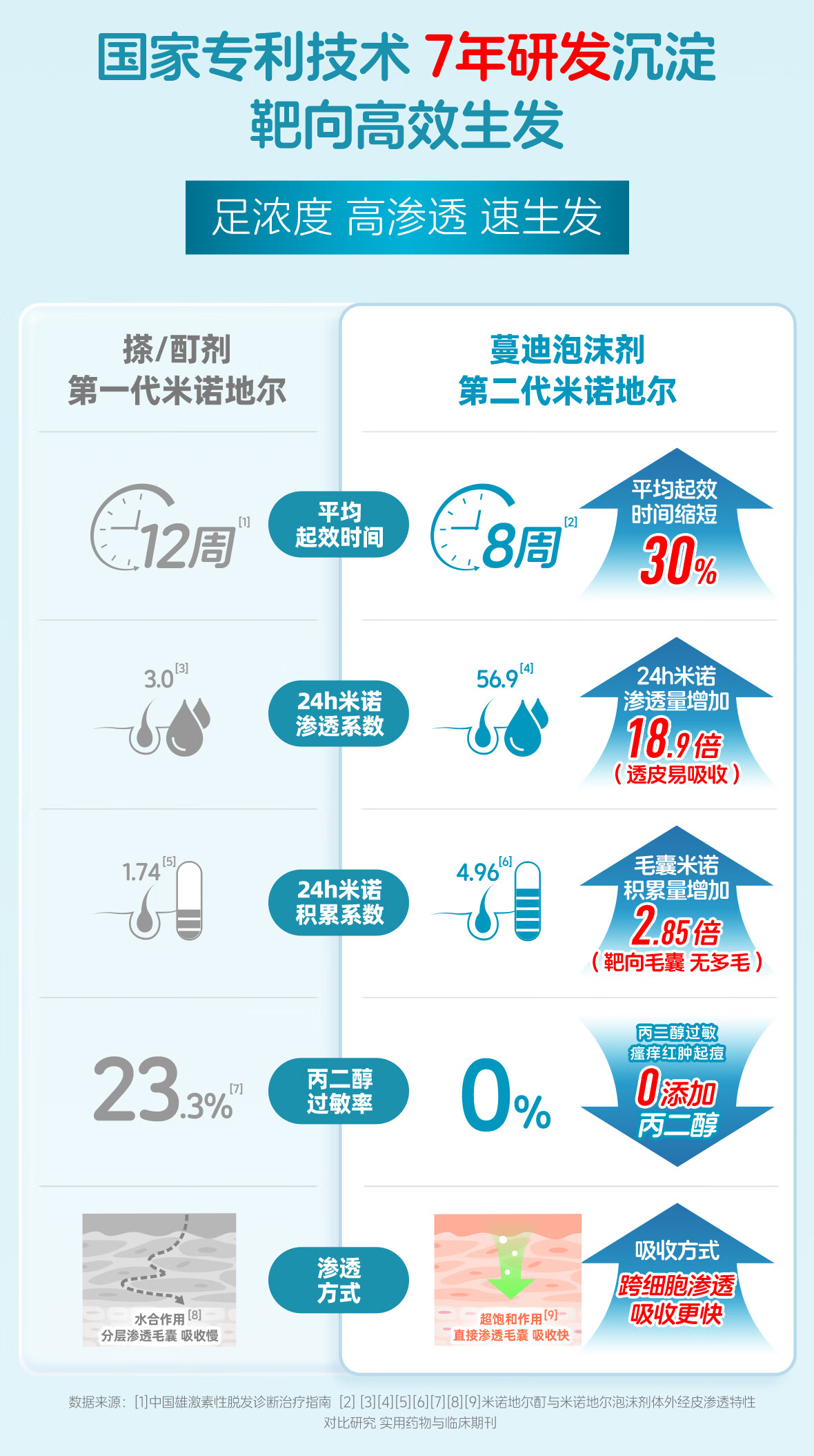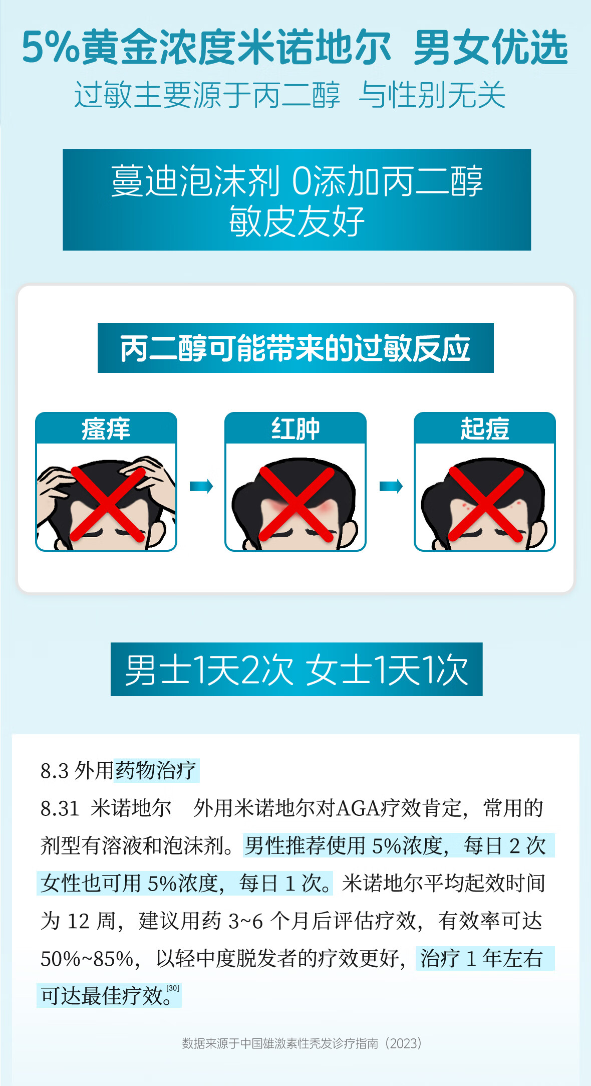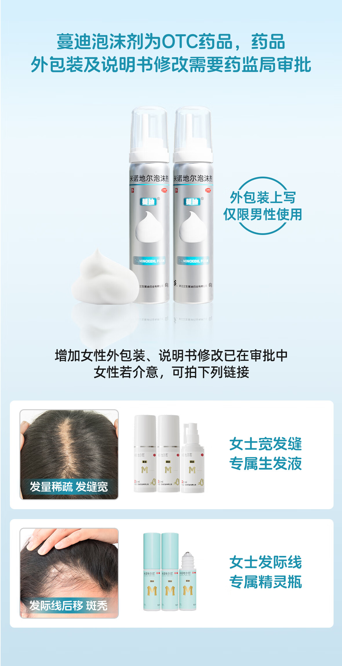 [蔓迪]米诺地尔泡沫剂 60g*3瓶 1盒装 60g5%浓度曼迪第二代米诺地尔倍速生发泡沫酊清爽肤感不油腻防脱发育发增发液 第二代米诺(3月)