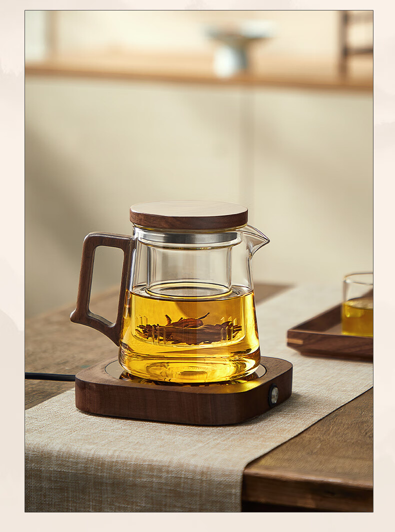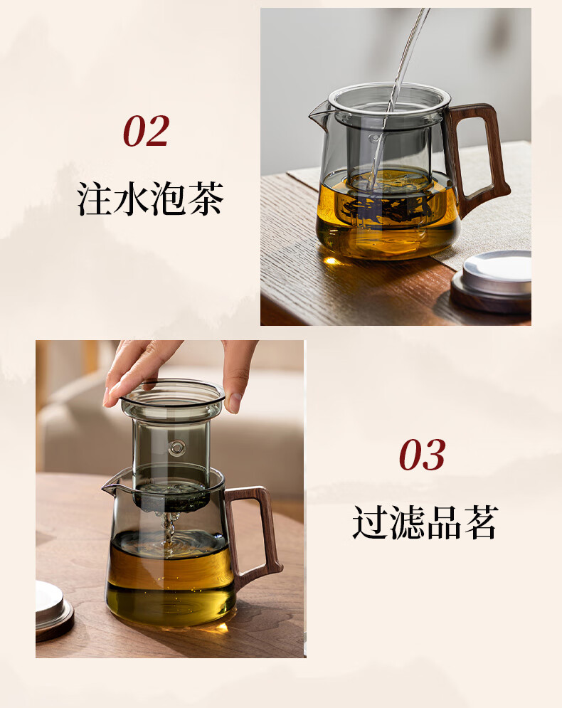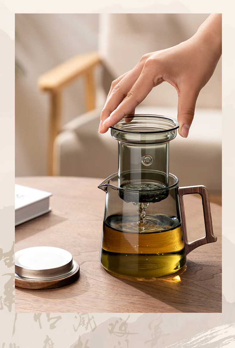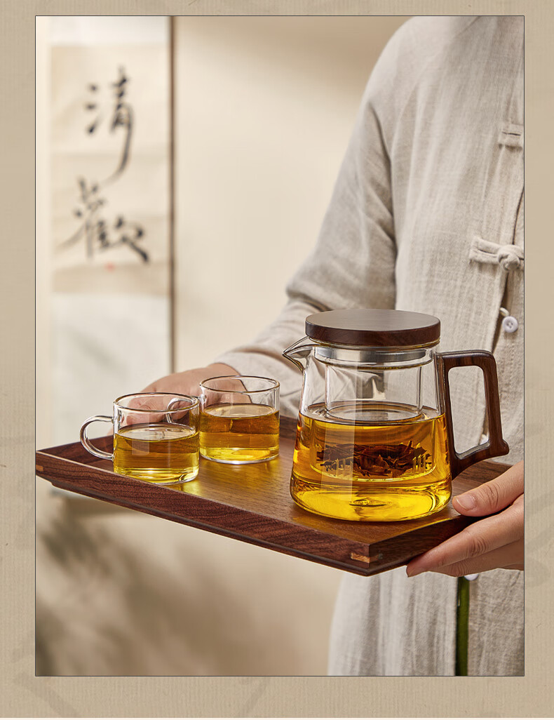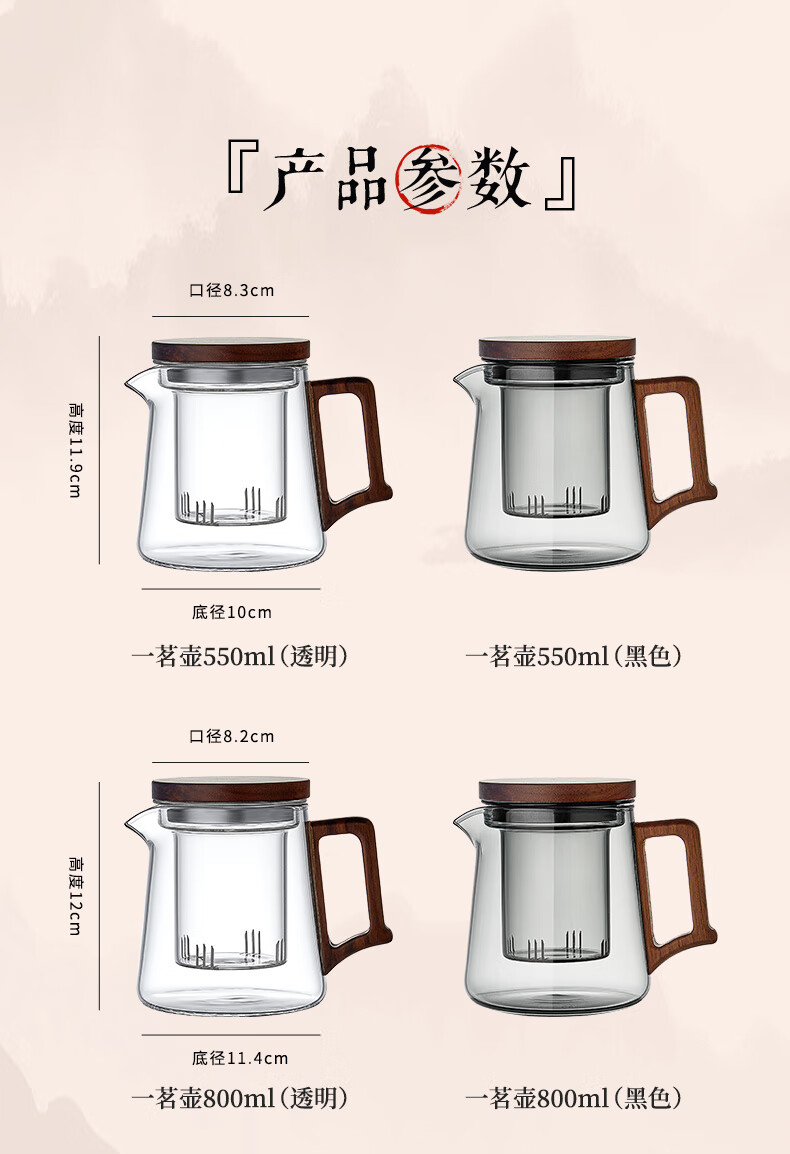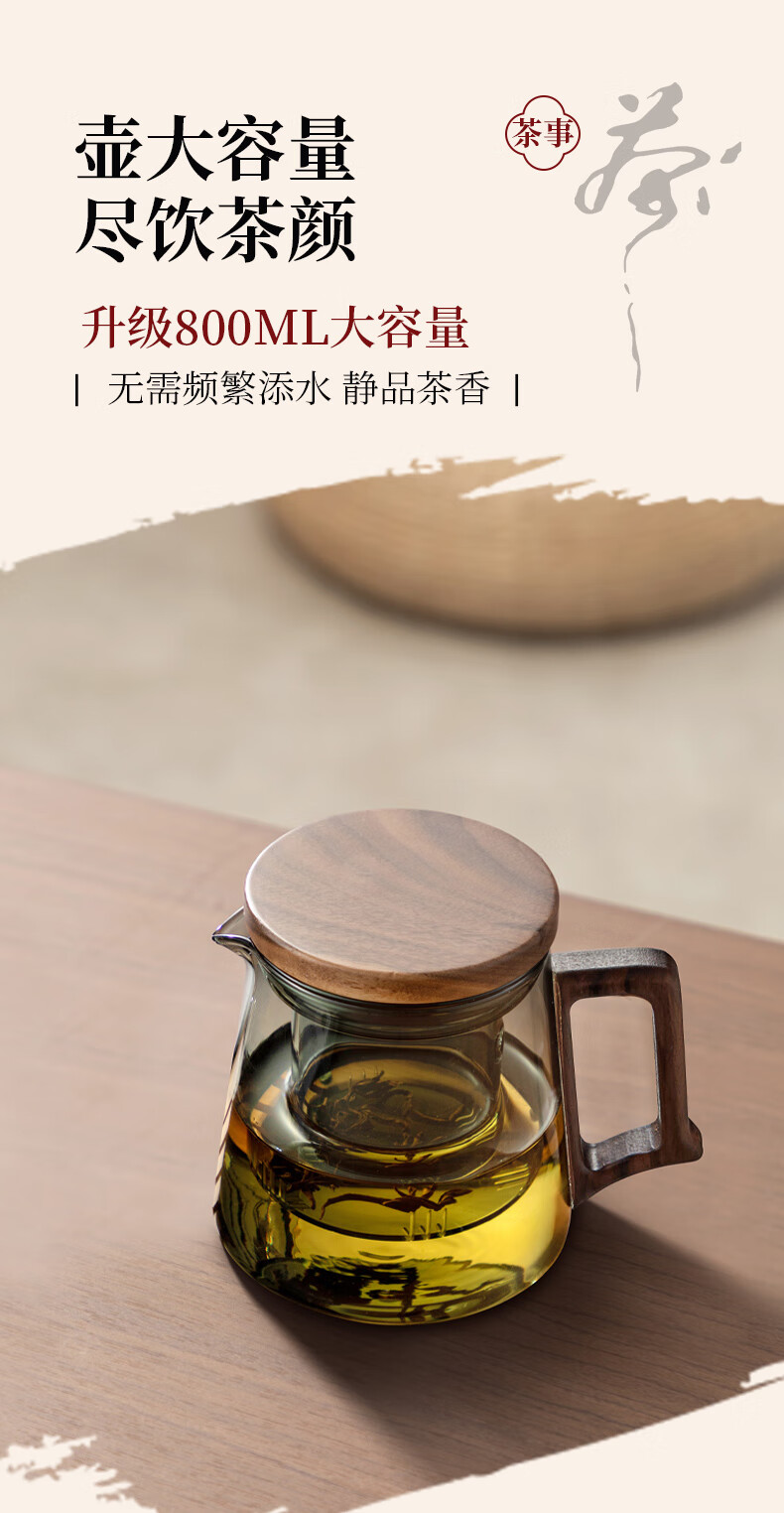 胖东来同款玻璃茶壶泡茶家用耐高温单壶过滤泡茶神器办公室茶具套 【大容量】一茗壶800m.l(黑胡桃木) 501mL(含)-600mL(含)