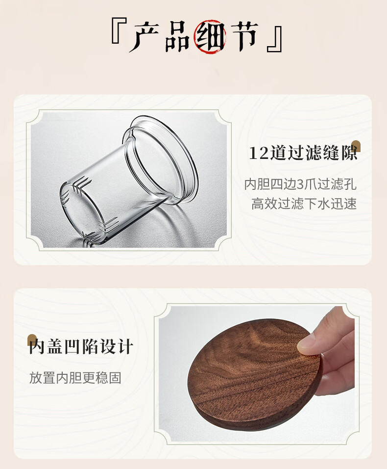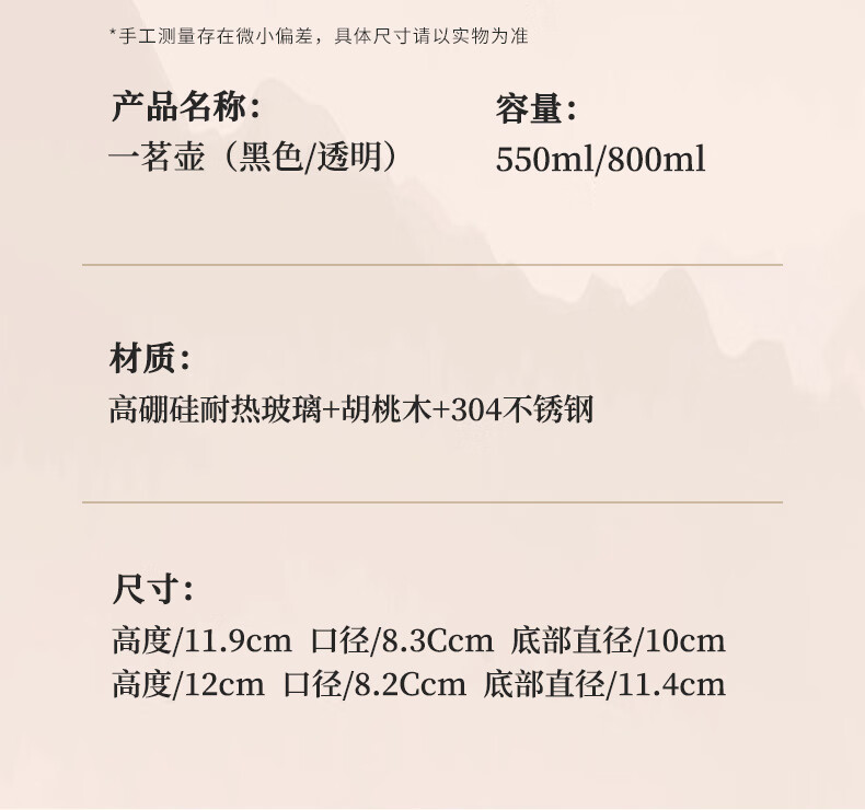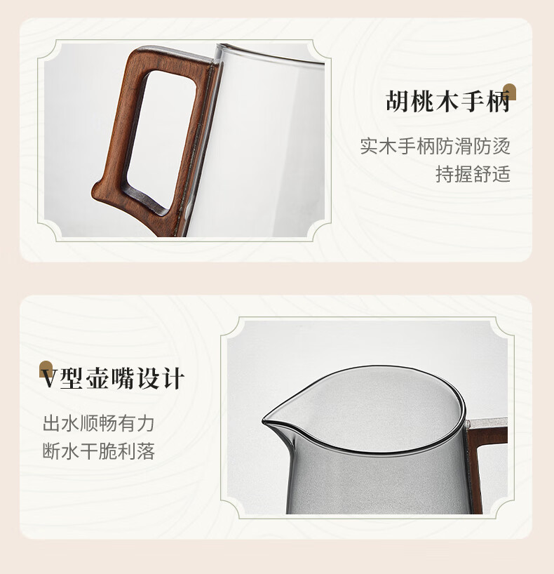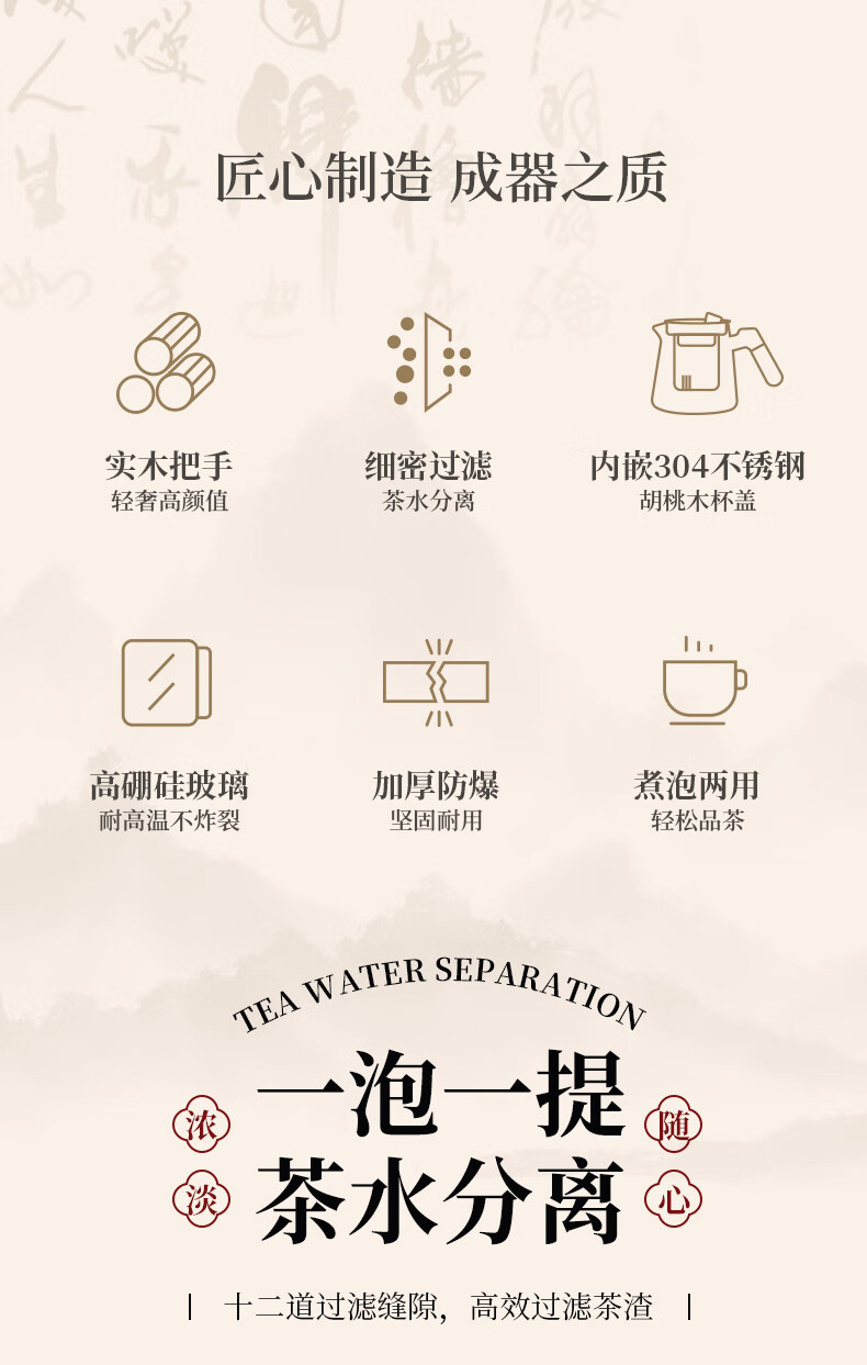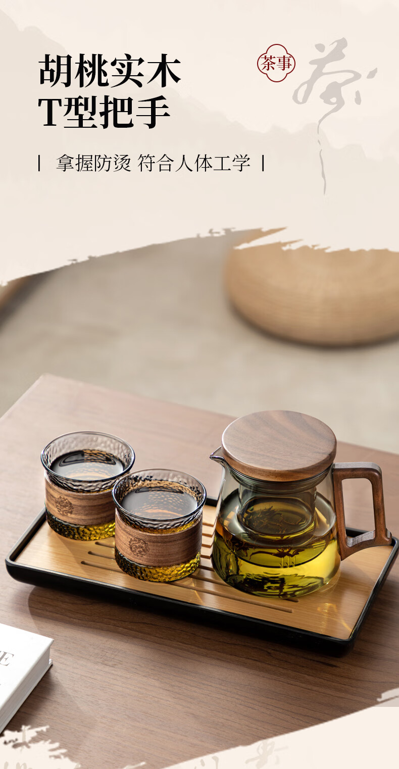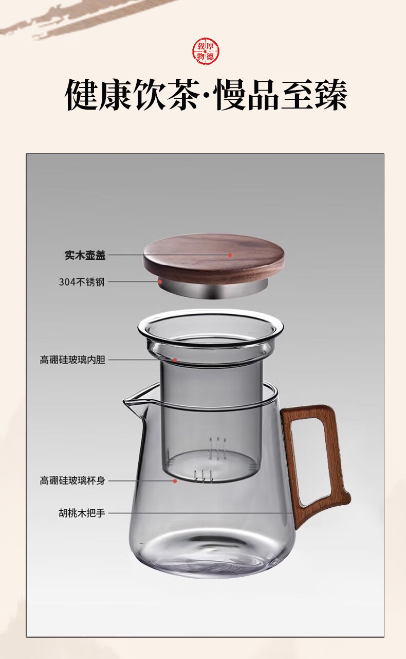 胖东来同款玻璃茶壶泡茶家用耐高温单壶过滤泡茶神器办公室茶具套 【大容量】一茗壶800m.l(黑胡桃木) 501mL(含)-600mL(含)