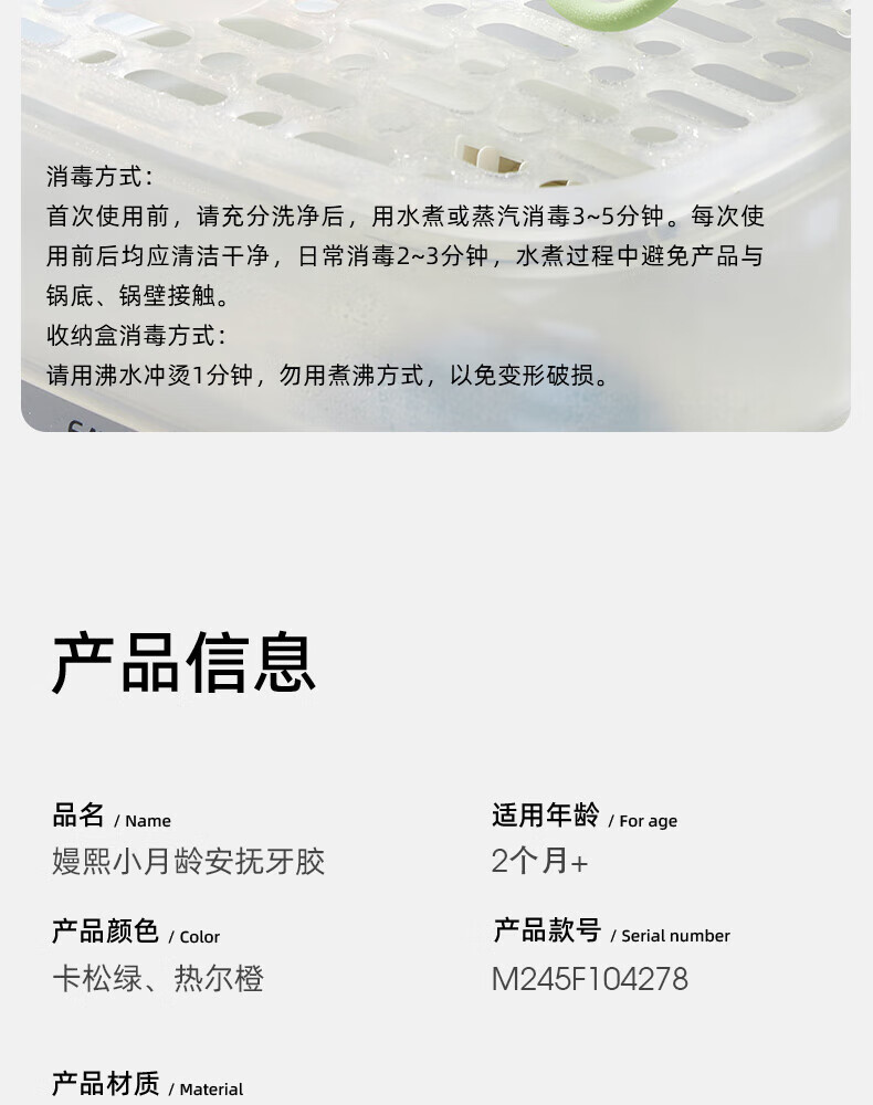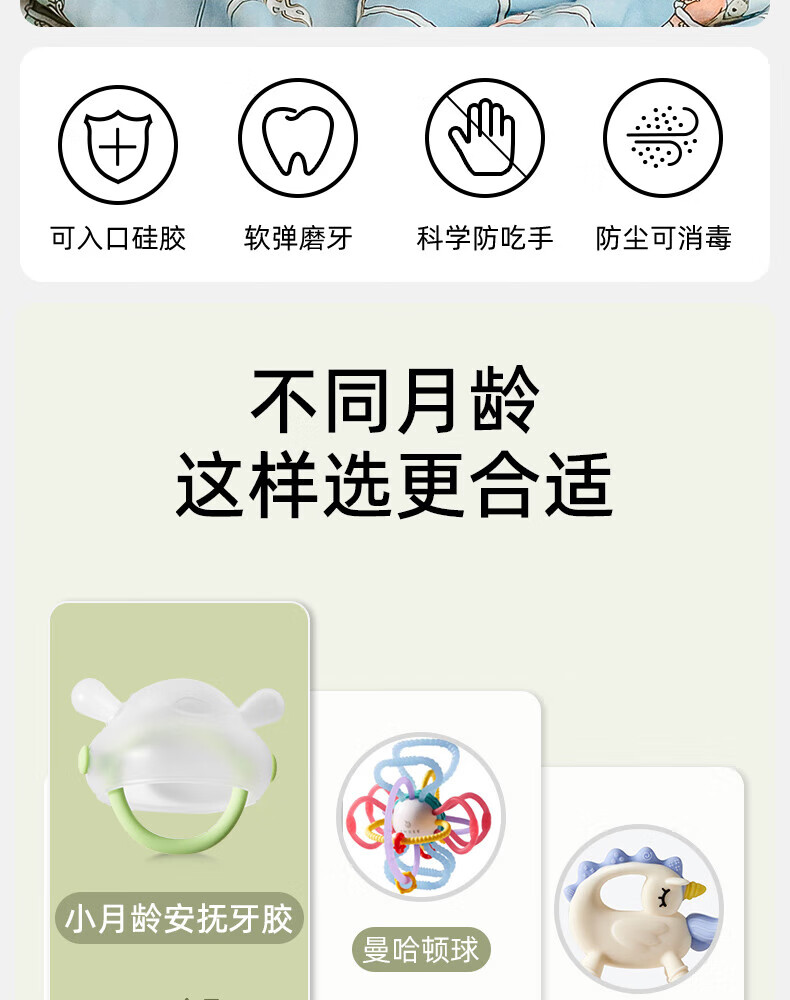 嫚熙(EMXEE)婴儿牙胶3-6个月小月龄口欲期玩具防吃手磨牙棒安抚咬胶宝宝牙胶 卡松绿带收纳盒 1只装