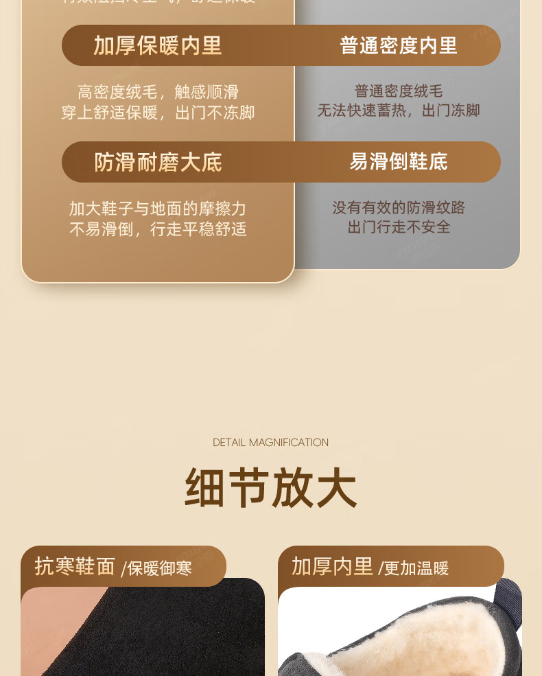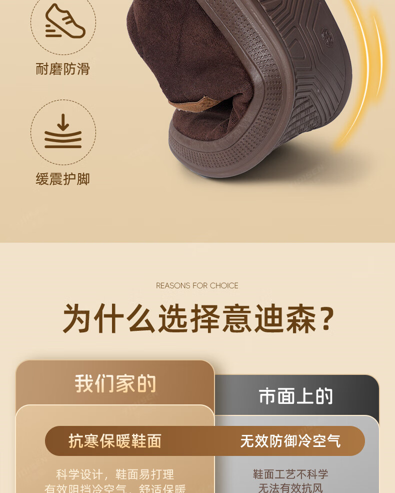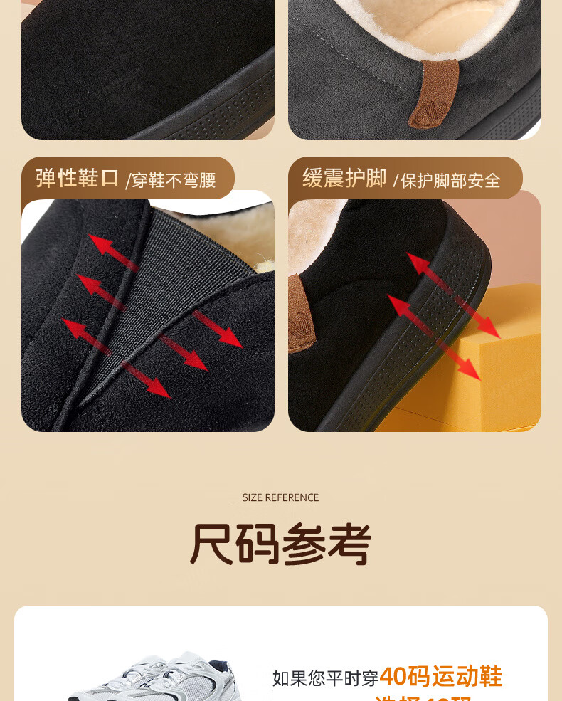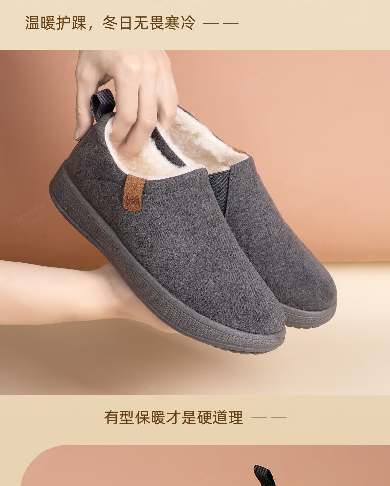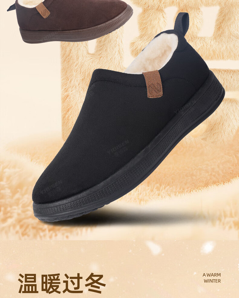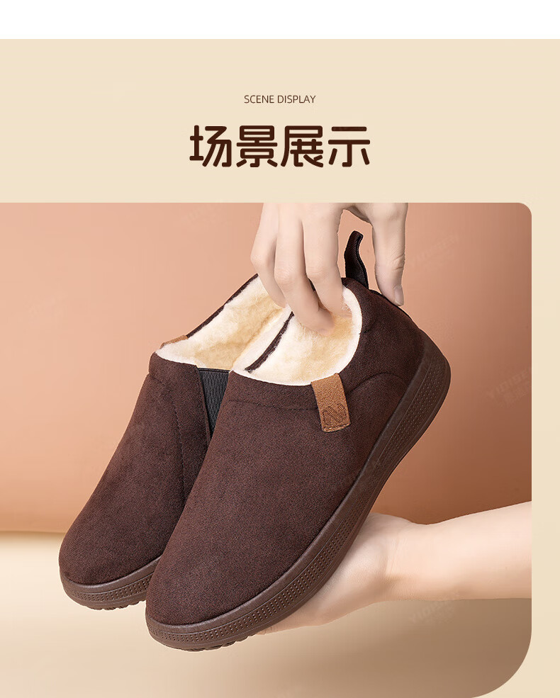 意迪森老北京棉鞋男冬季加绒加厚保暖一脚蹬轻便中老年爸爸棉鞋防滑防风 咖啡色 加绒 【轻便加厚绵羊毛】 41 (255mm) 正码正拍
