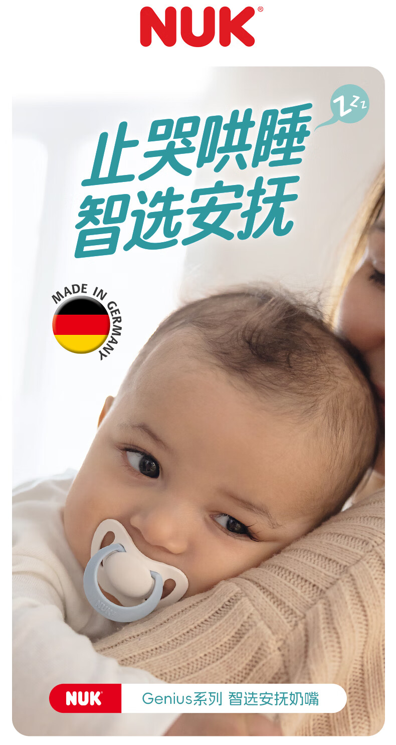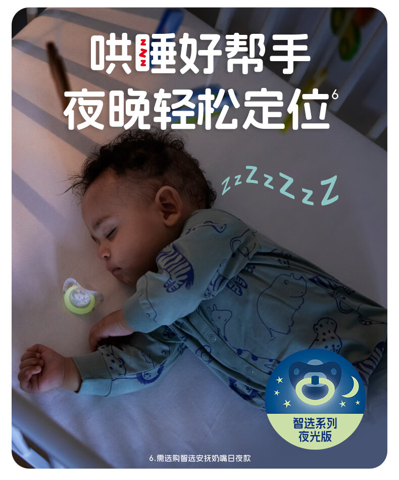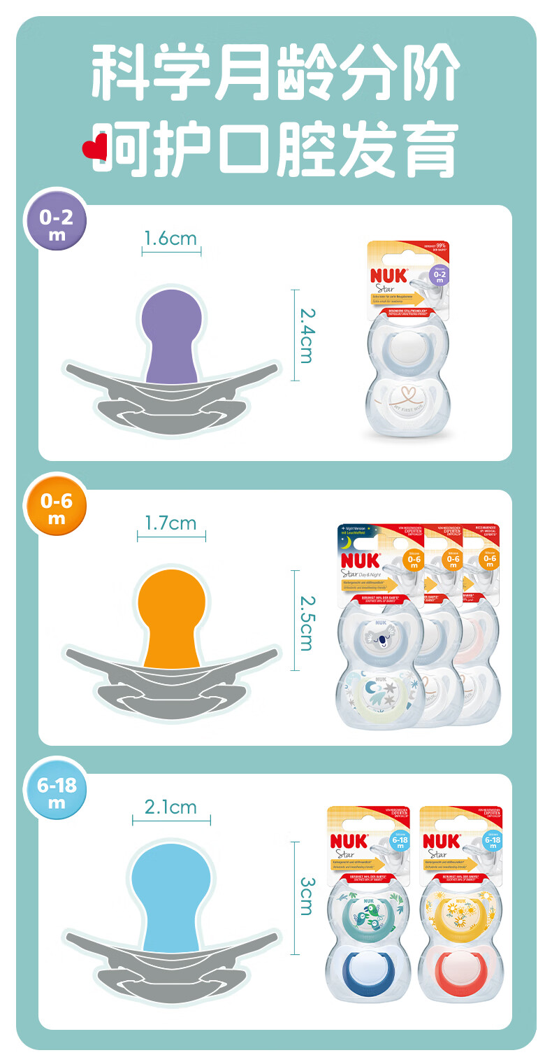 NUK德国智选硅胶安抚奶嘴新生婴儿0-6个月哄睡防胀气防龅牙带收纳盒 日夜组合款 0-6个月 2个装