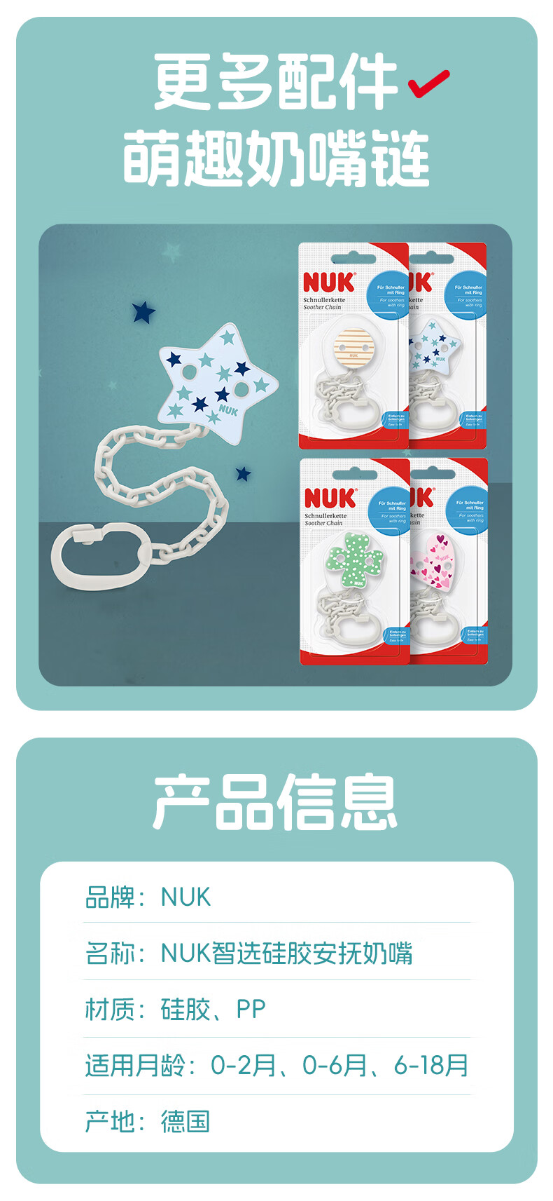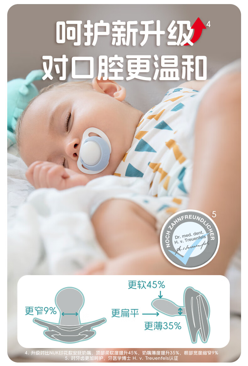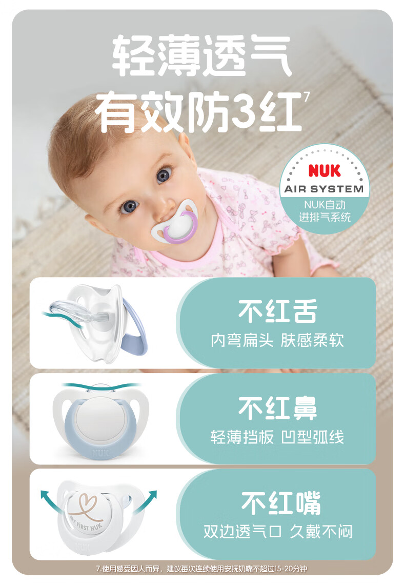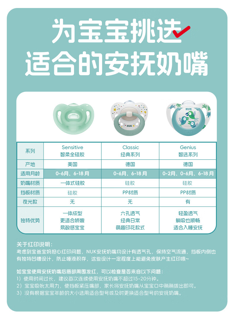 NUK德国智选硅胶安抚奶嘴新生婴儿0-6个月哄睡防胀气防龅牙带收纳盒 日夜组合款 0-6个月 2个装