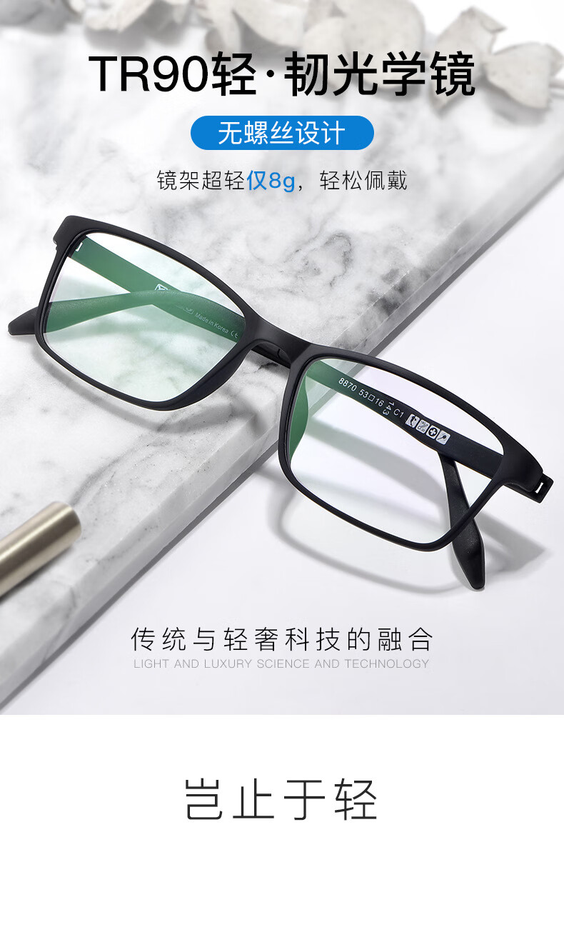 派丽蒙(PARIM)高度近视眼镜框男方型小黑框女商务配度数防蓝光镜片眼镜架PR7820 B1-黑色