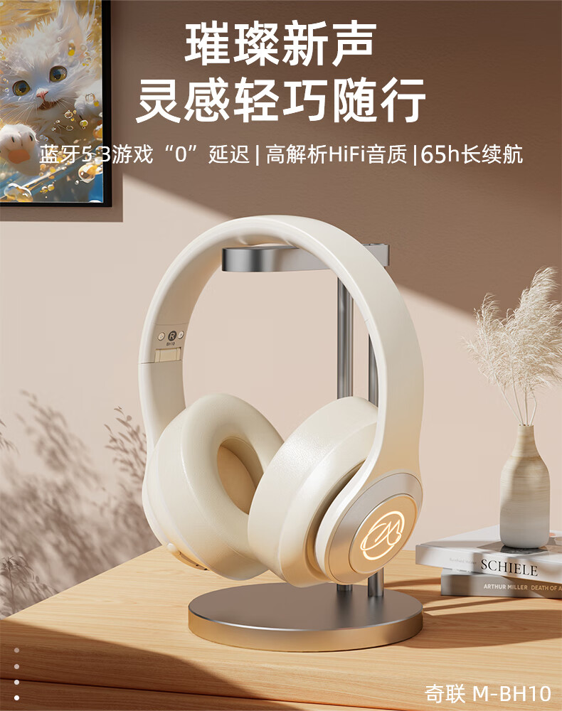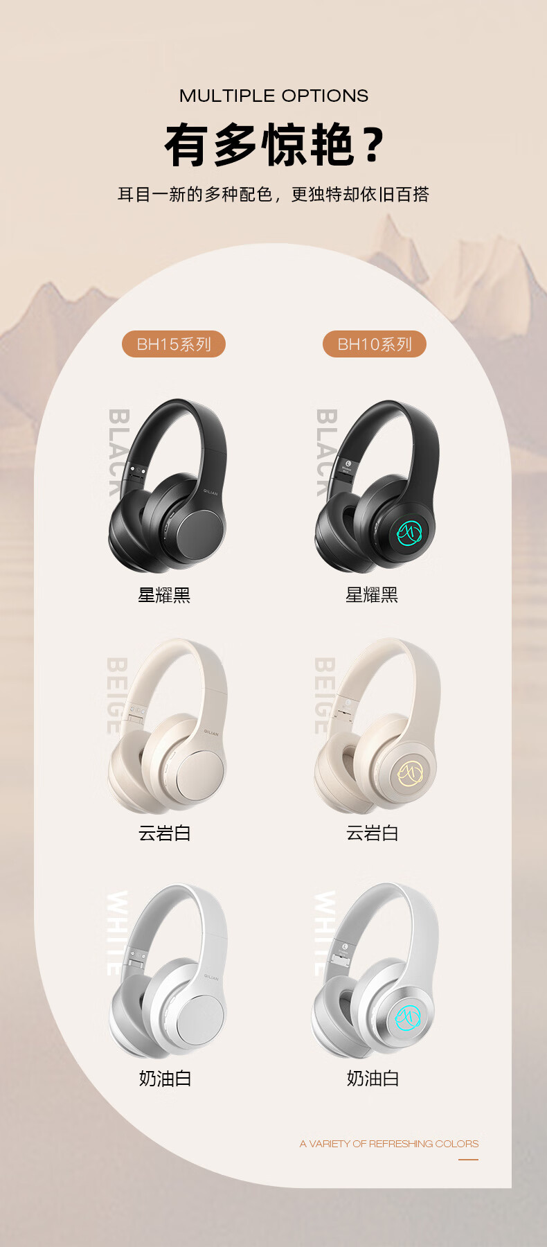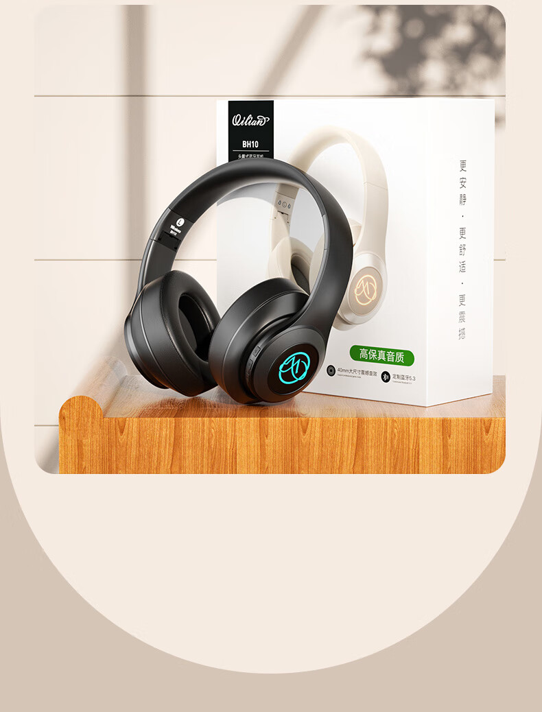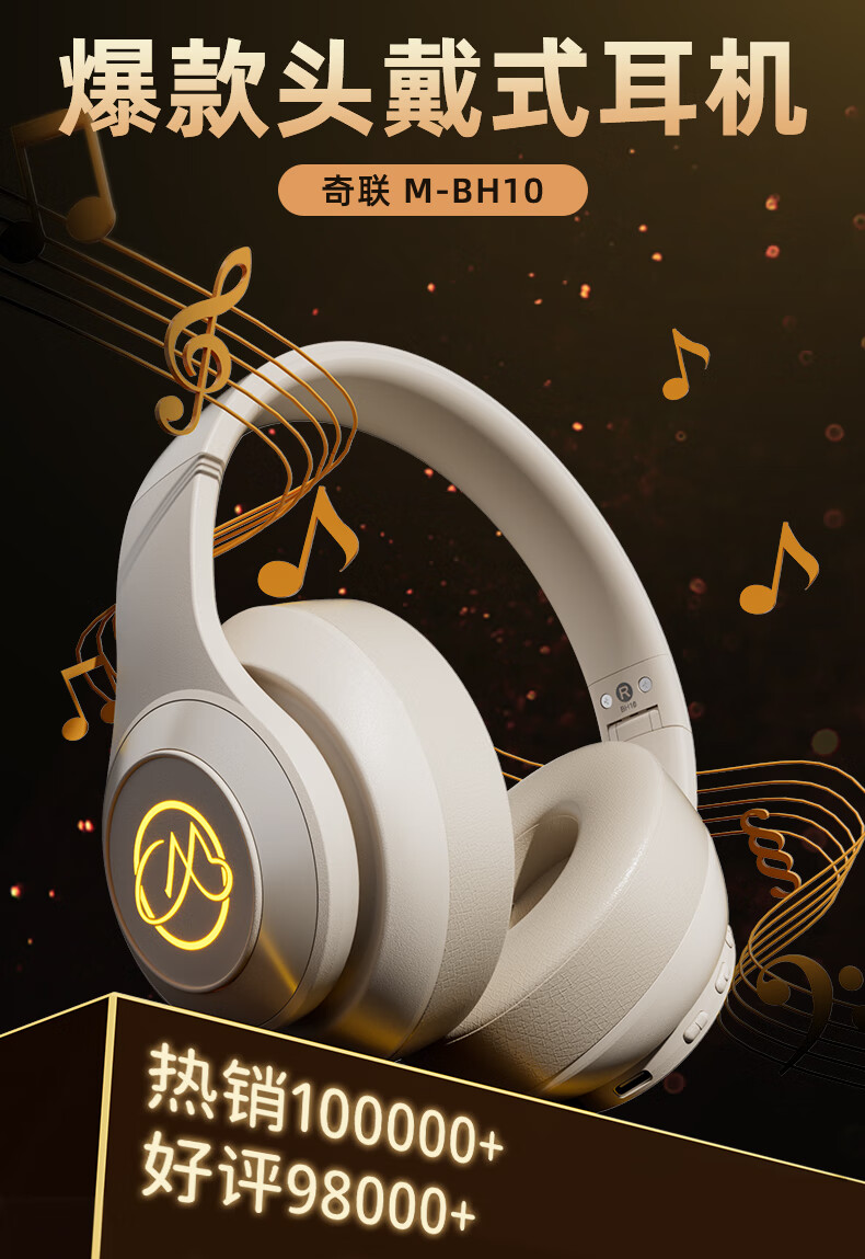 奇联无线蓝牙耳机头戴式电竞游戏学生降噪BH15超长续航音乐运动包耳耳麦手机电脑笔记本网课女生高音质 BH10午夜黑|65h续航|高保真音质