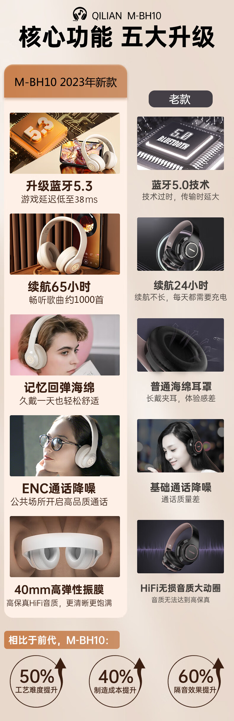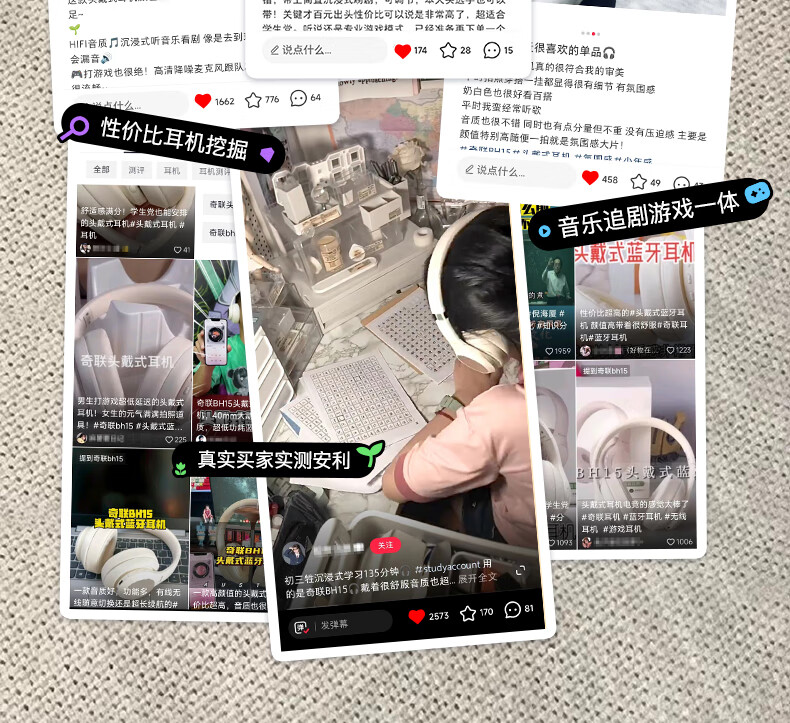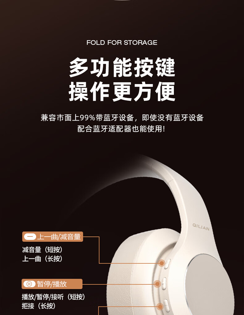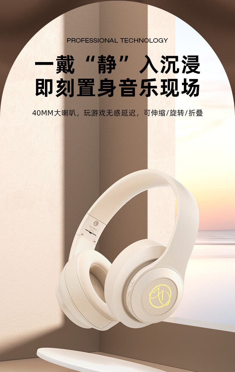 奇联无线蓝牙耳机头戴式电竞游戏学生降噪BH15超长续航音乐运动包耳耳麦手机电脑笔记本网课女生高音质 BH10午夜黑|65h续航|高保真音质