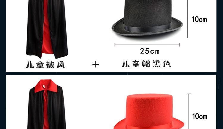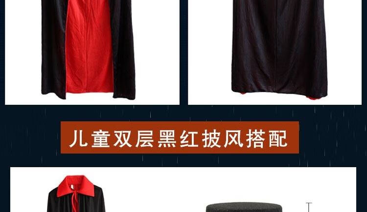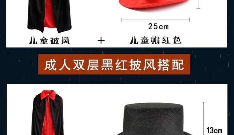CARLOS KAYLA魔术表演服装衣服儿童六一演出披风道具巫师魔术师套装万圣节 款披风140cm+超高帽黑色