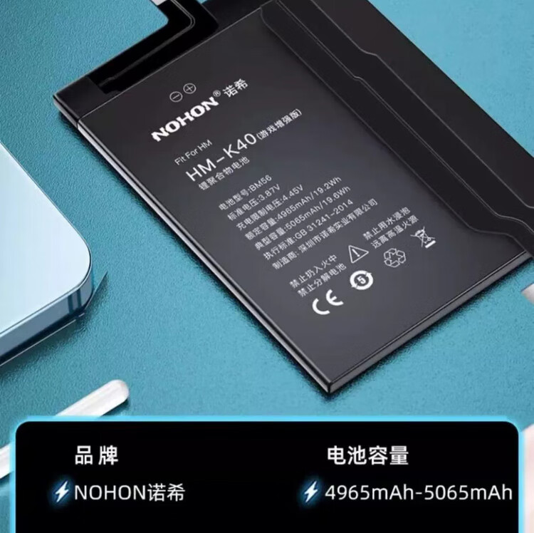 诺希(NOHON)适用于红米k40proK40电池游戏增强版k30大容量电板红米K20/K20pro/K30/K30pro/K40/note7/note11PR 红米K40游戏增强版 5065mAh