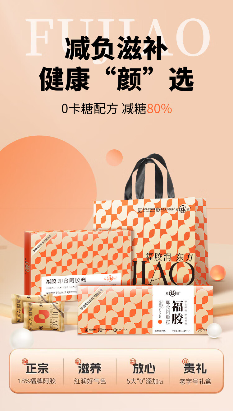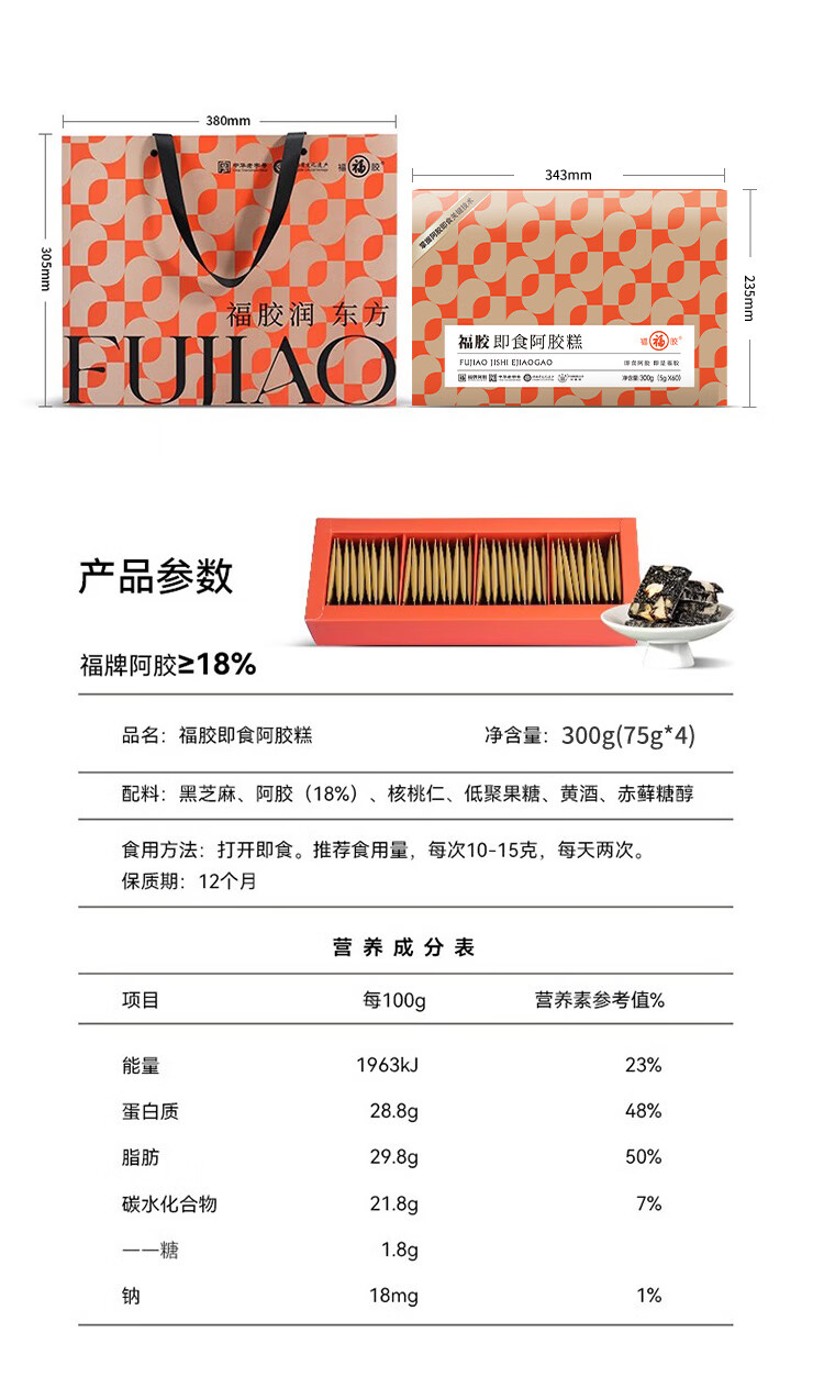 福牌阿胶即食阿胶糕300g礼盒 阿胶添加量≥18% 滋补营养品送长辈礼物礼品 【单盒装】300g(阿胶添加量≥18%)
