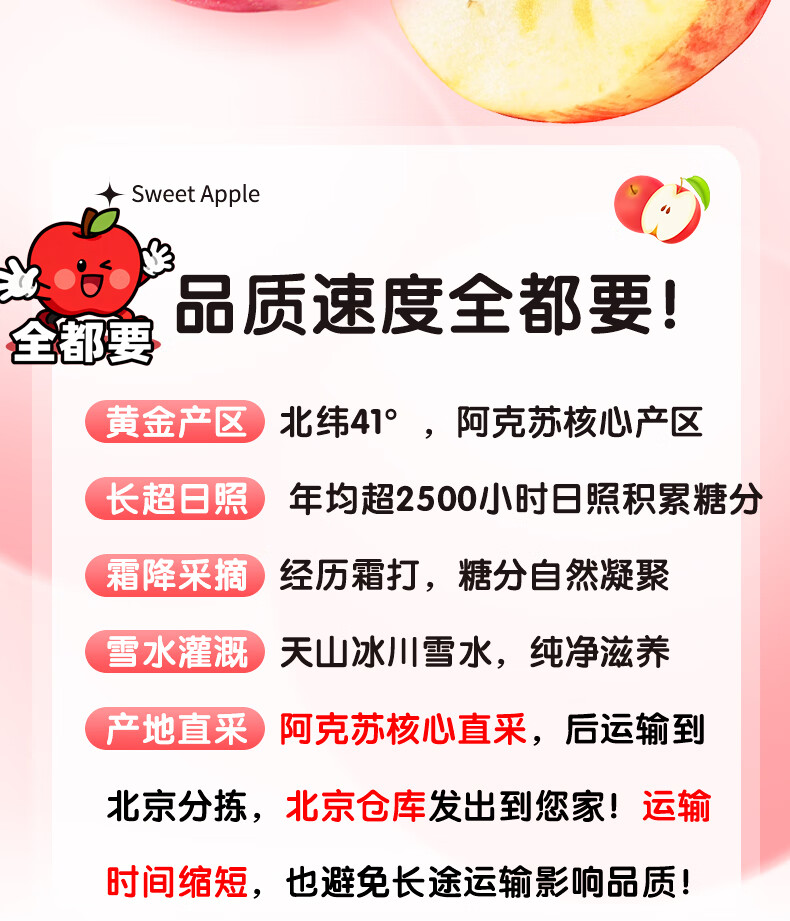 密园小农新疆阿克苏冰糖心苹果新鲜当季应季时令丑苹果水果红富士 10斤【单果80-85mm】精选品质大果