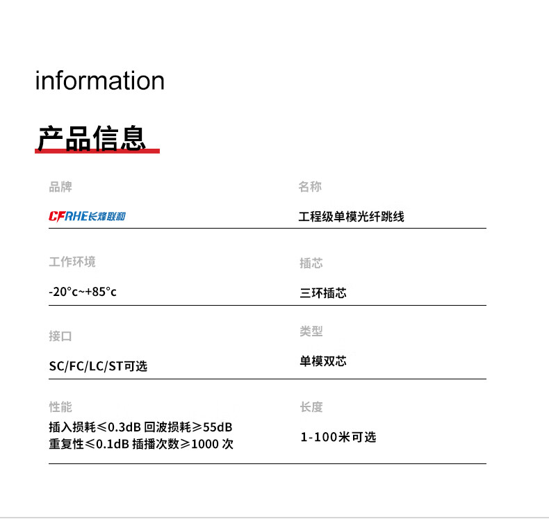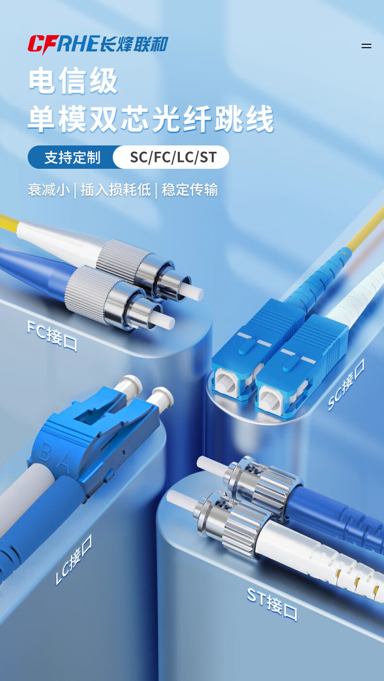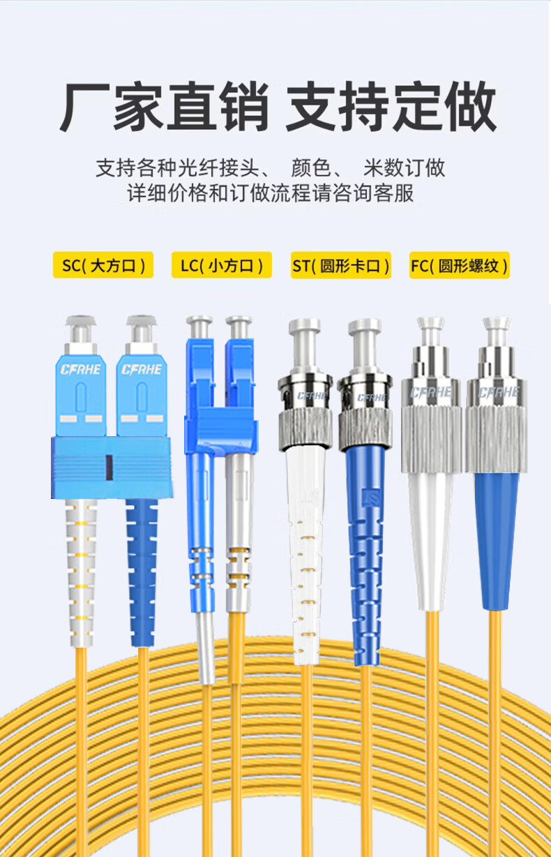 CFRHE 长烽联和电信级光纤跳线 单模双芯SC/FC/LC/ST 光纤线机房收发器尾纤 低烟无卤防鼠抗拉抗弯曲可定制 单模双芯LC-FC 2米