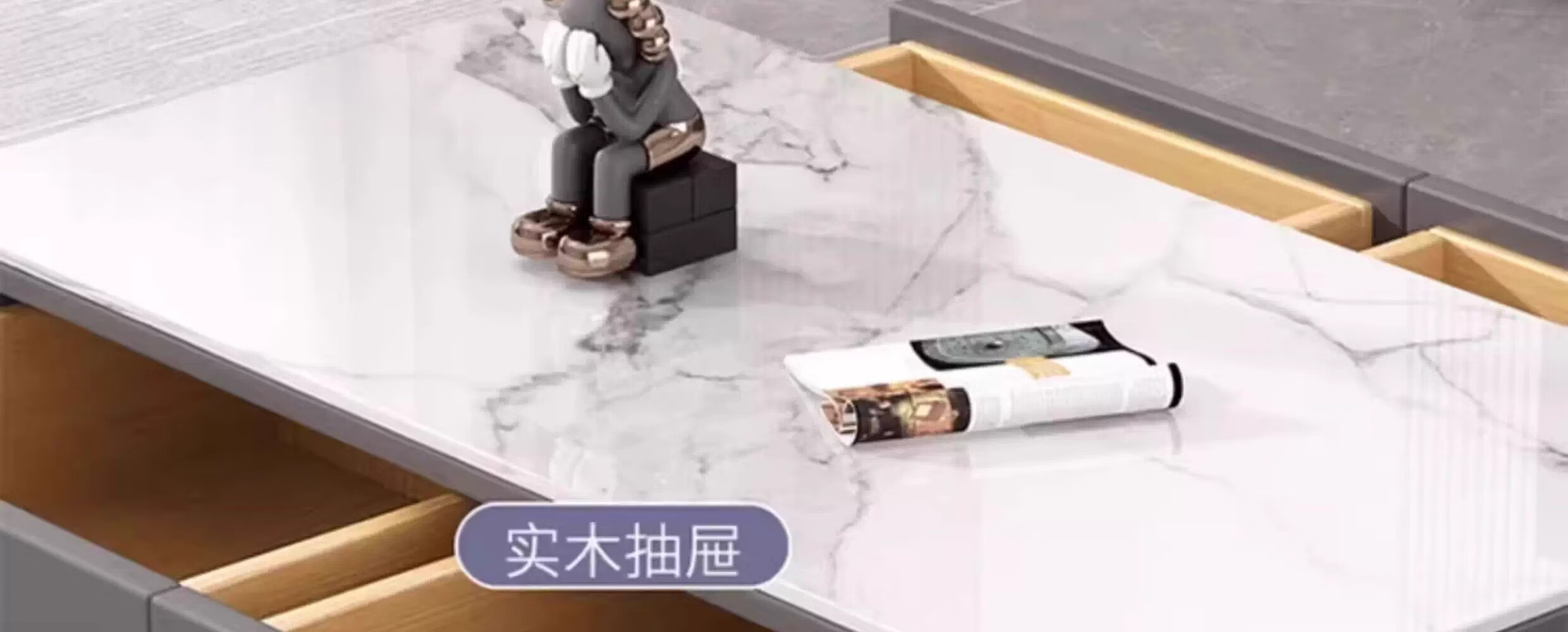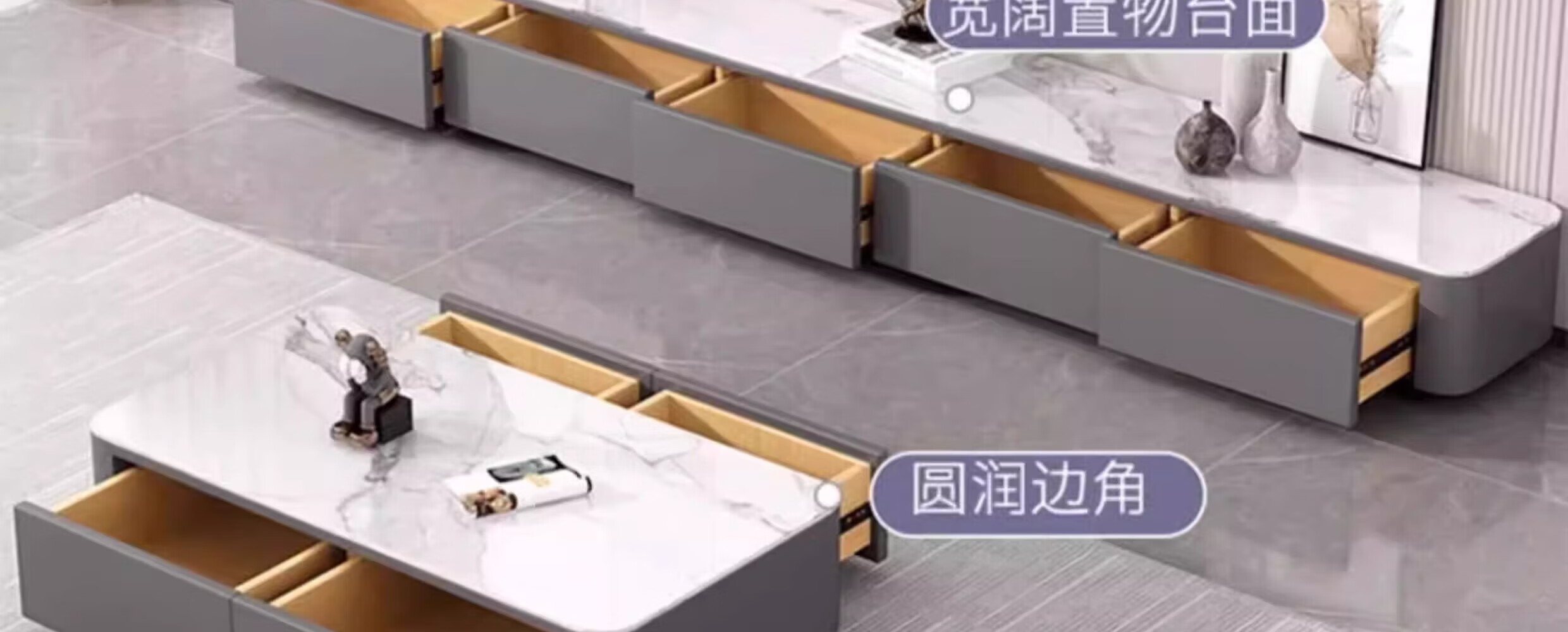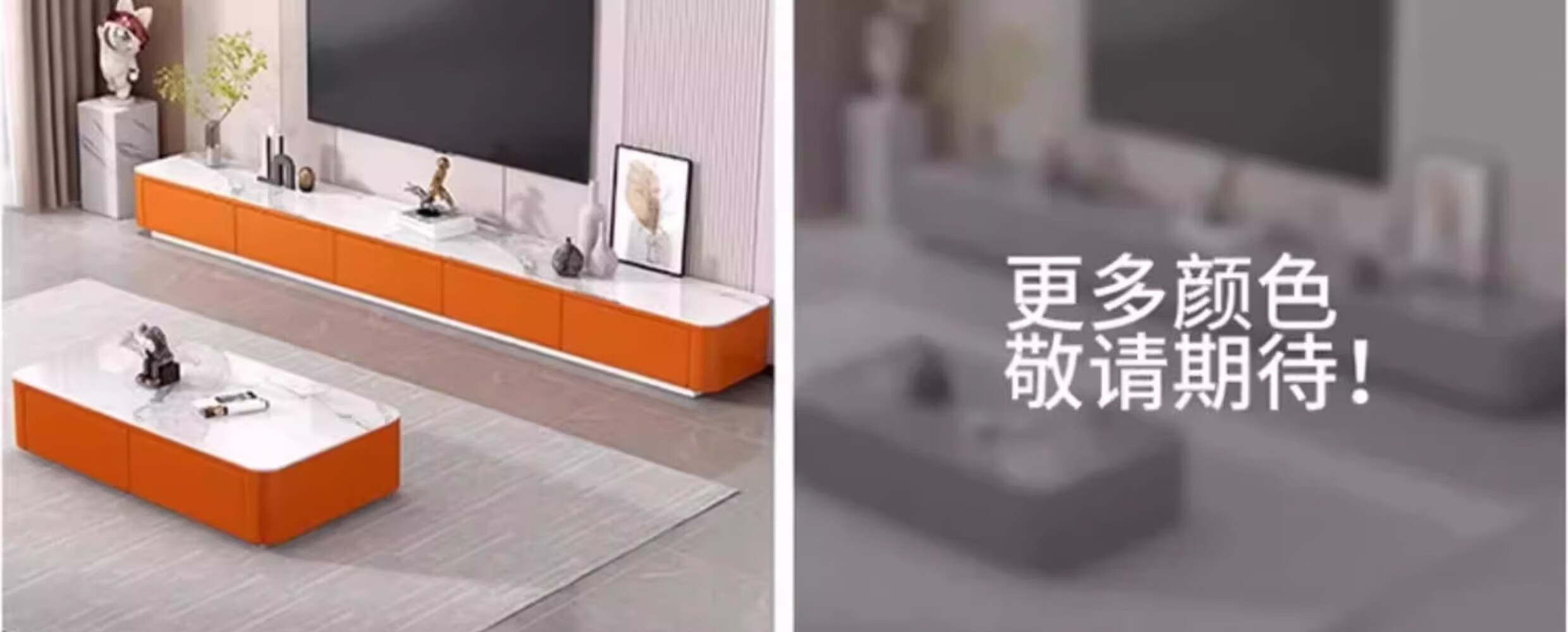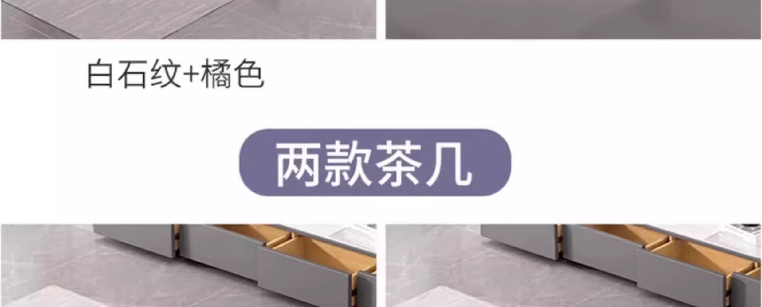 汐墨阁岩板电视机柜茶几现代简约组合家用小户型轻奢落地客厅新款储物柜 1.0米双抽茶几【白石纹+橘柜】 9mm加厚岩板 组装简单