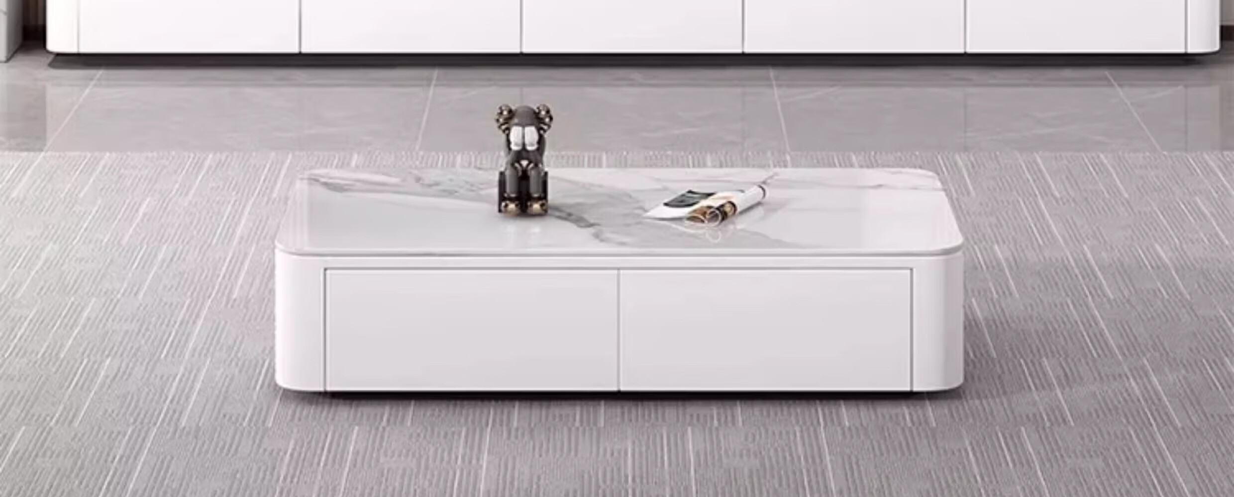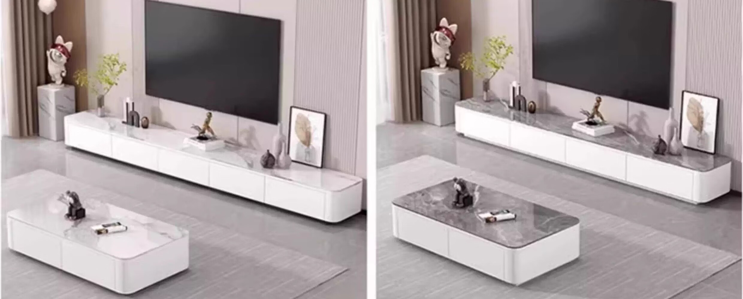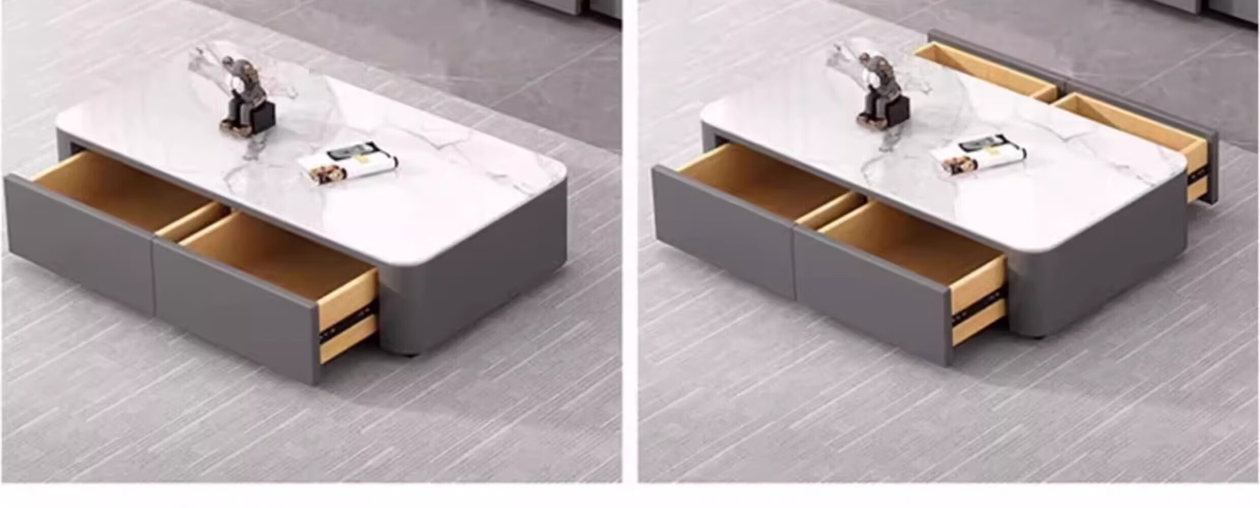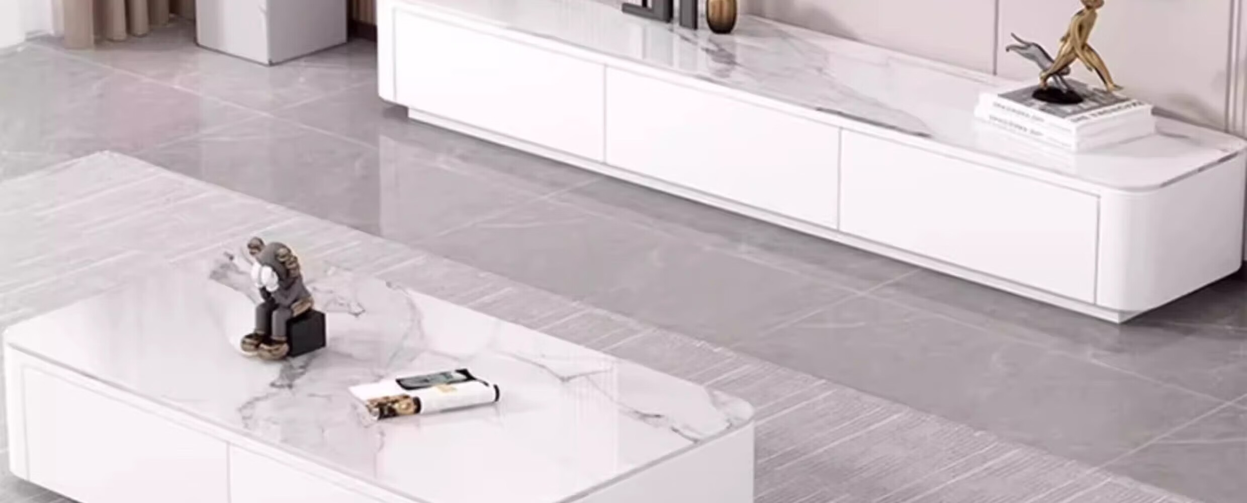 汐墨阁岩板电视机柜茶几现代简约组合家用小户型轻奢落地客厅新款储物柜 1.0米双抽茶几【白石纹+橘柜】 9mm加厚岩板 组装简单