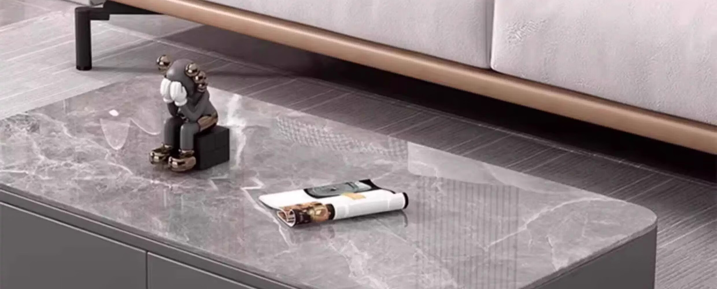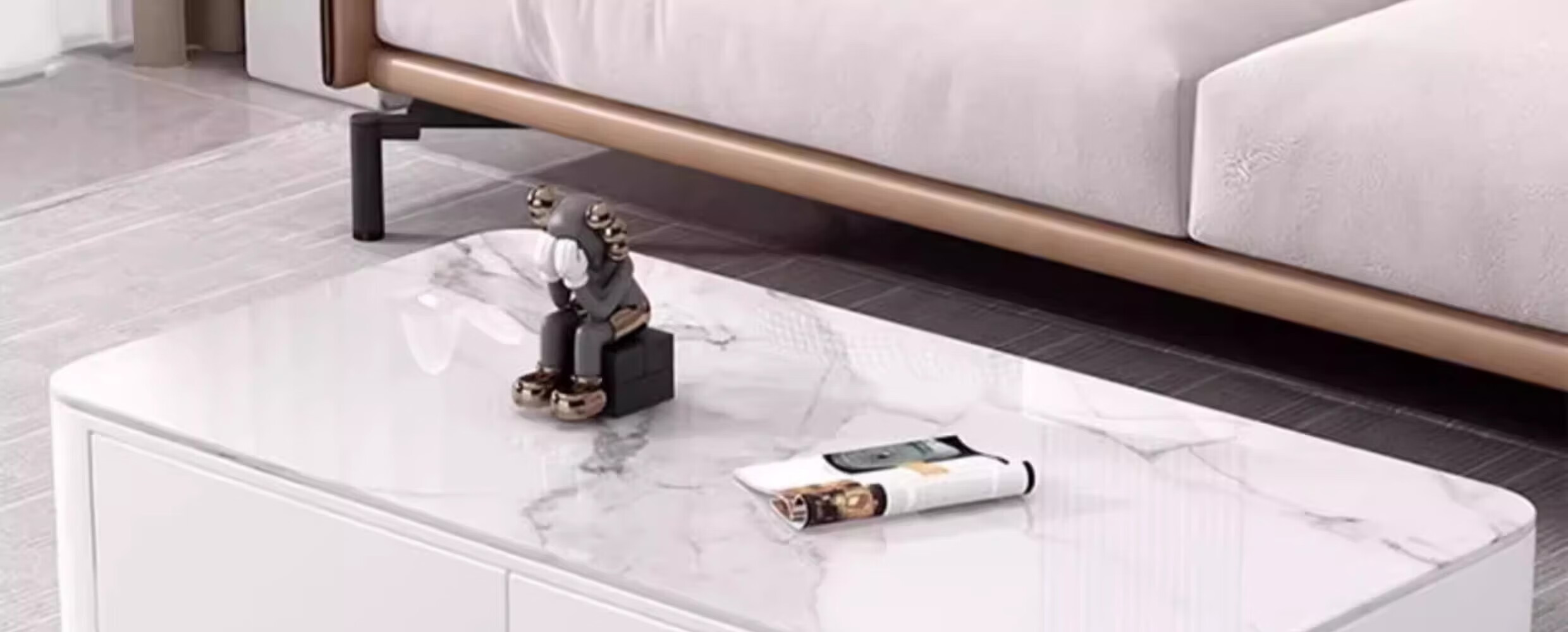 汐墨阁新款家用茶几客厅小户型简约仿大理石钢化玻璃长方形茶台茶几桌 长100*宽50*高45cm【白架+白大理石纹钢化玻璃】桌面 组装