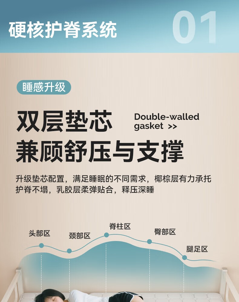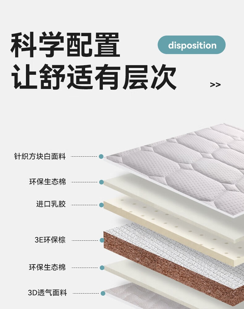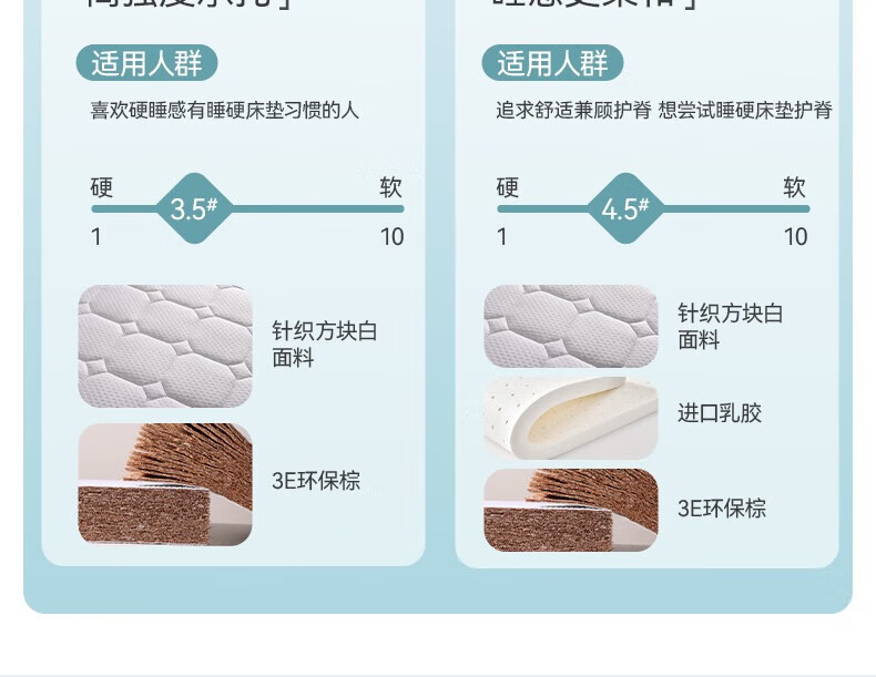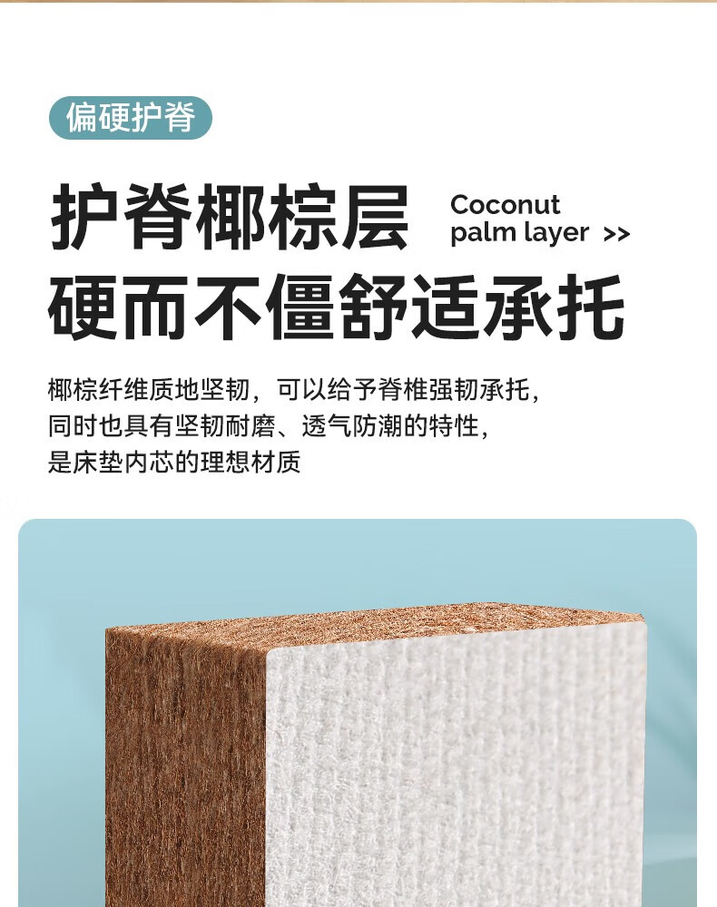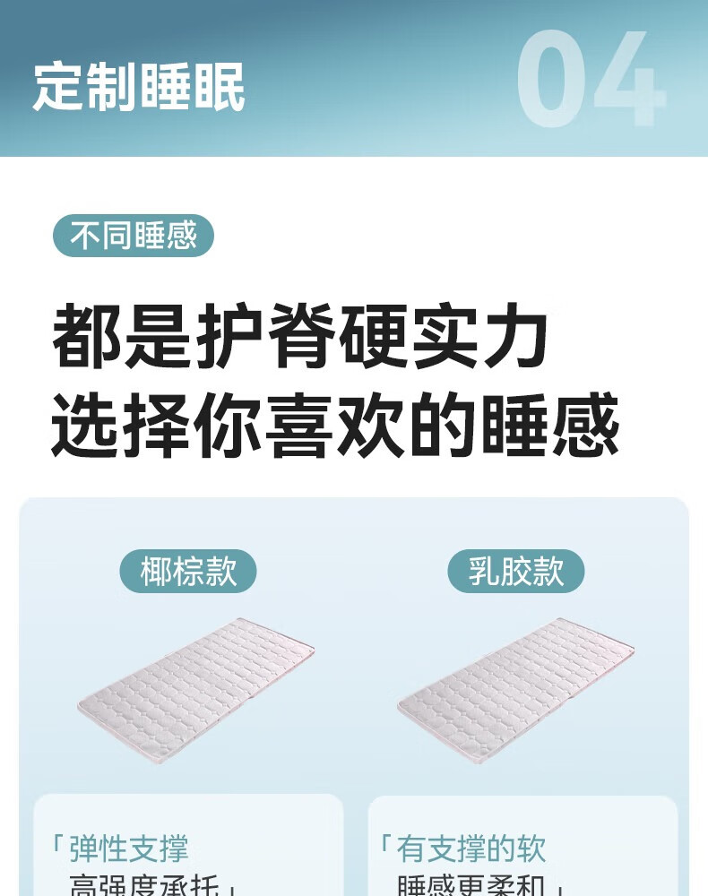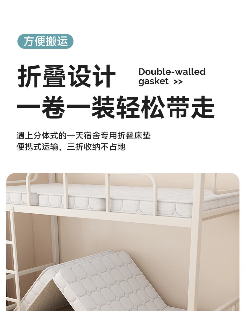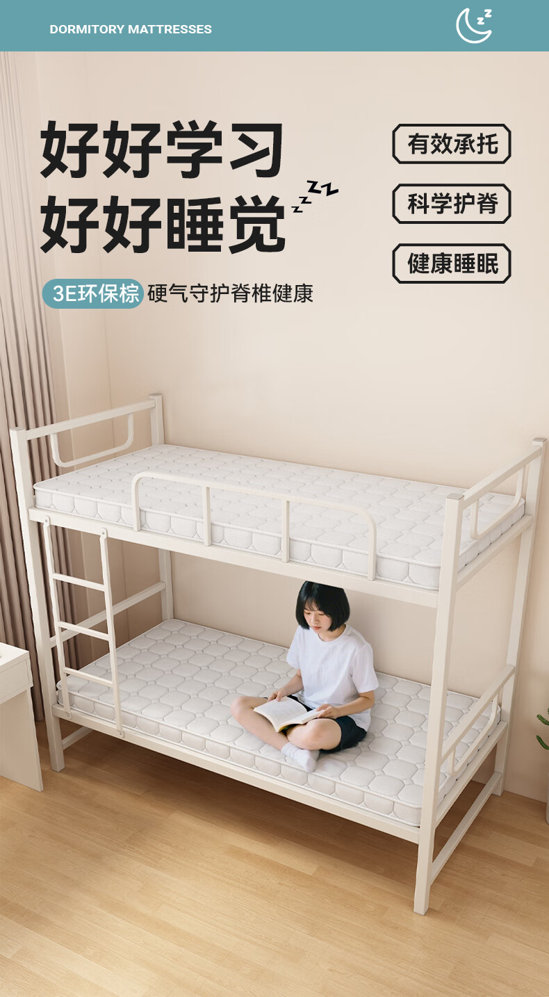卡裴尔学生宿舍椰棕床垫单人租房专用可折叠大学生寝室90x190椰棕乳胶垫 三折叠适中3cm无胶3E棕+面料+1CM乳胶 900mm*2000mm