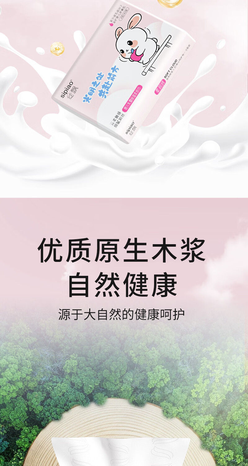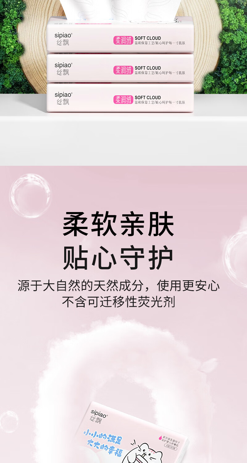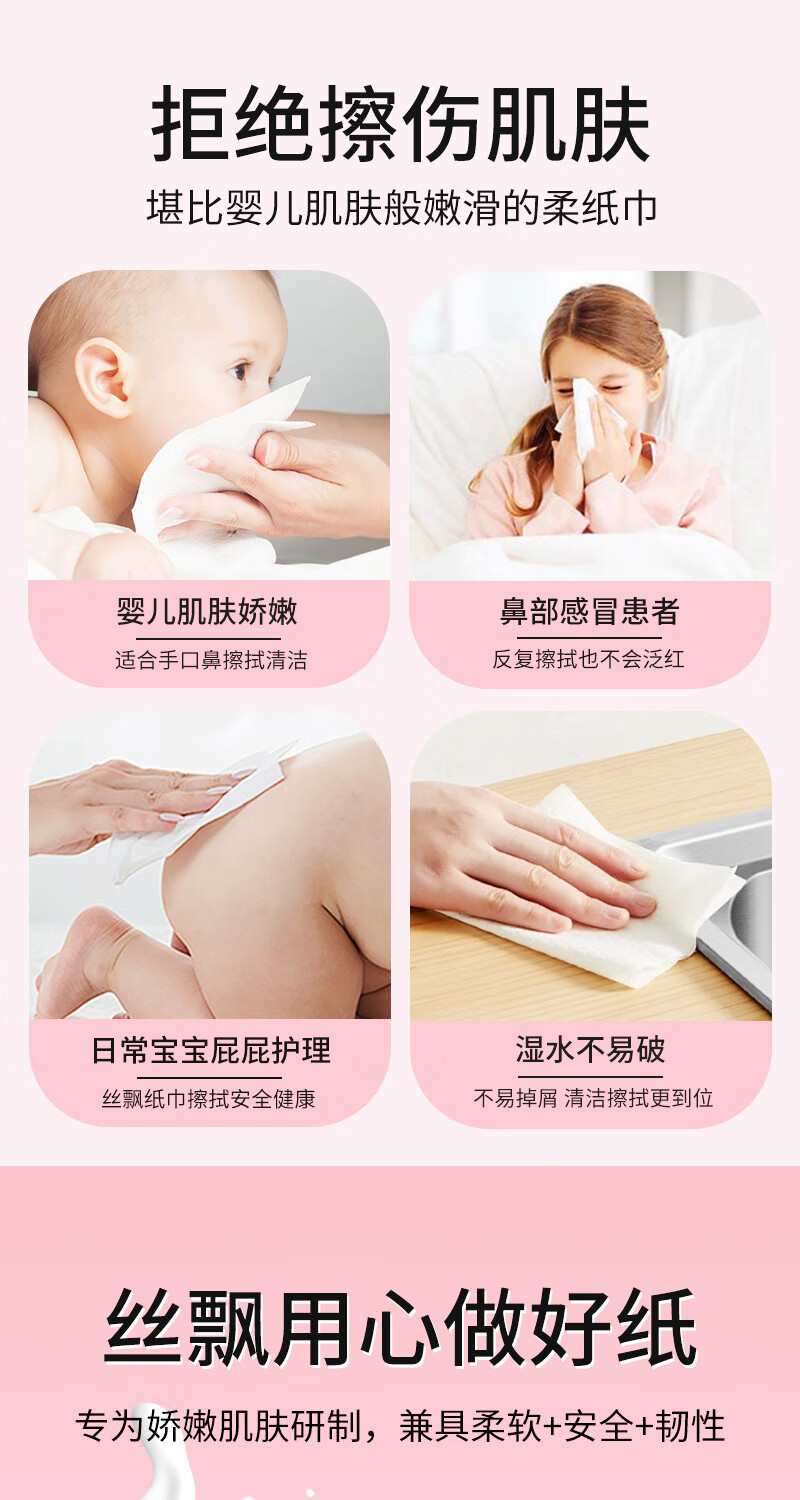 丝飘2包便携单包4层80抽云柔婴儿可用新生保湿乳霜纸巾抽纸可湿水