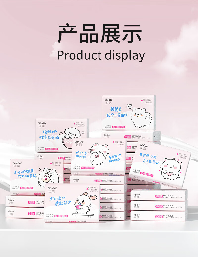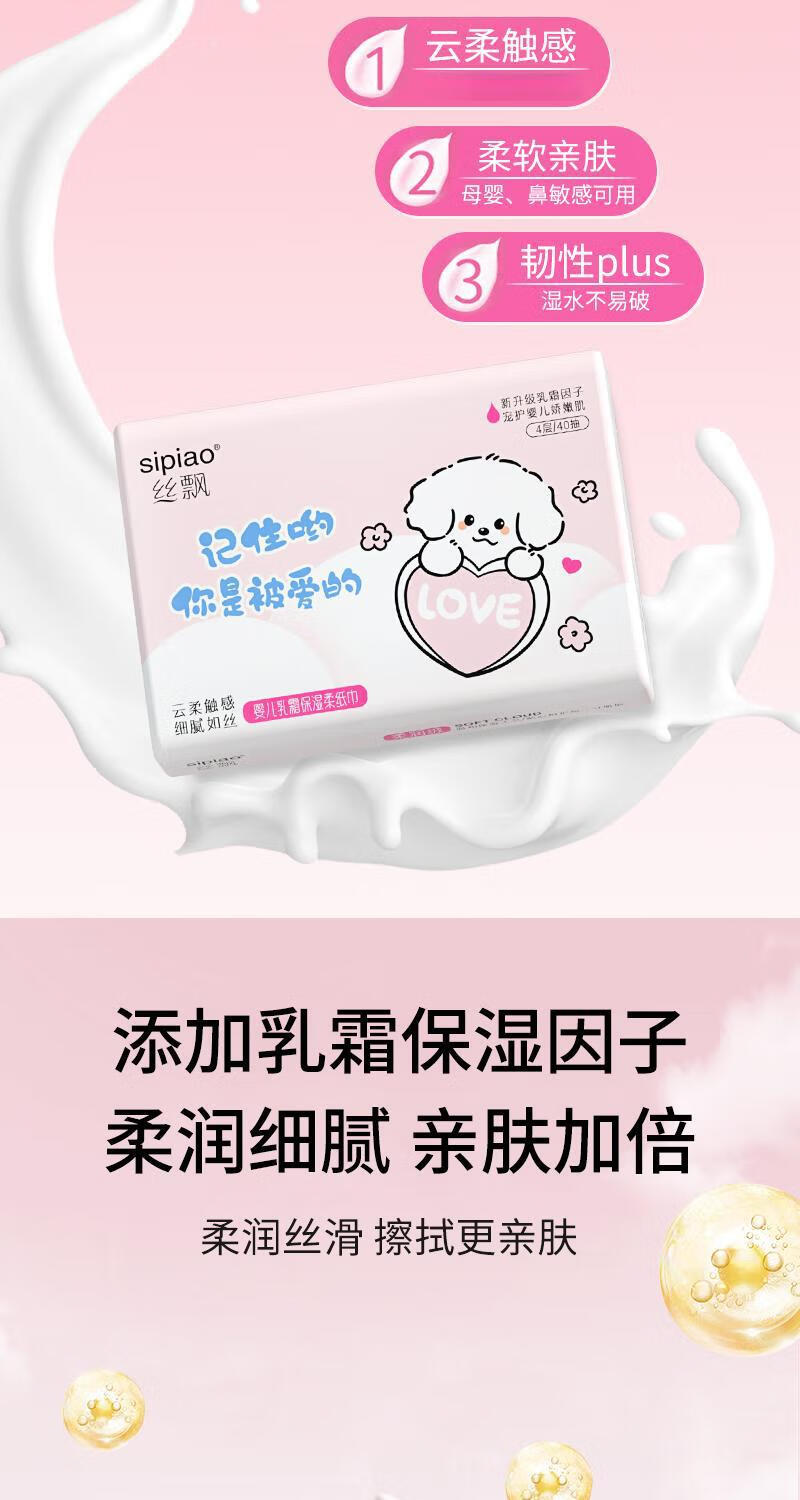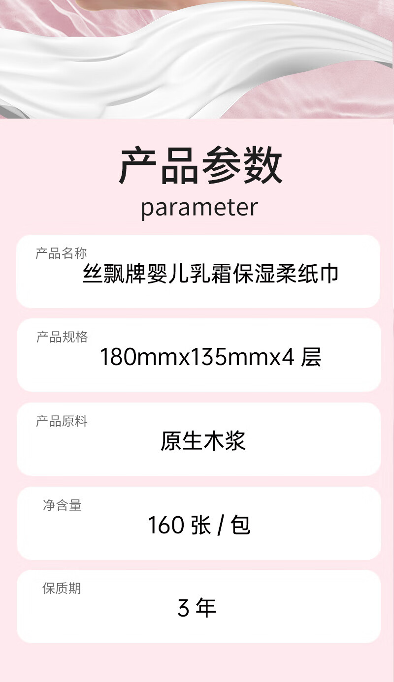丝飘2包便携单包4层80抽云柔婴儿可用新生保湿乳霜纸巾抽纸可湿水