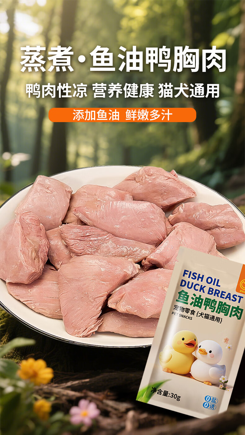 宠有圈蒸煮鸭胸肉猫咪零食水煮鱼油鸭肉鸡胸肉淡化泪痕宠物零食 蒸煮鸭胸肉1包(30g) 淡化泪痕(犬猫通用)