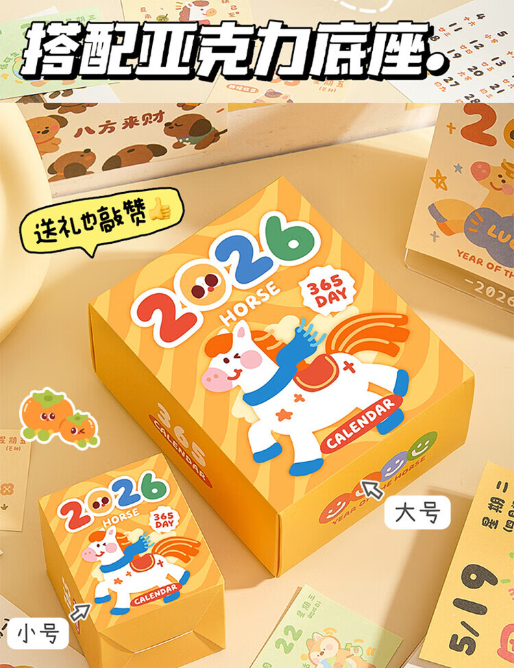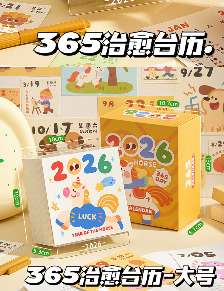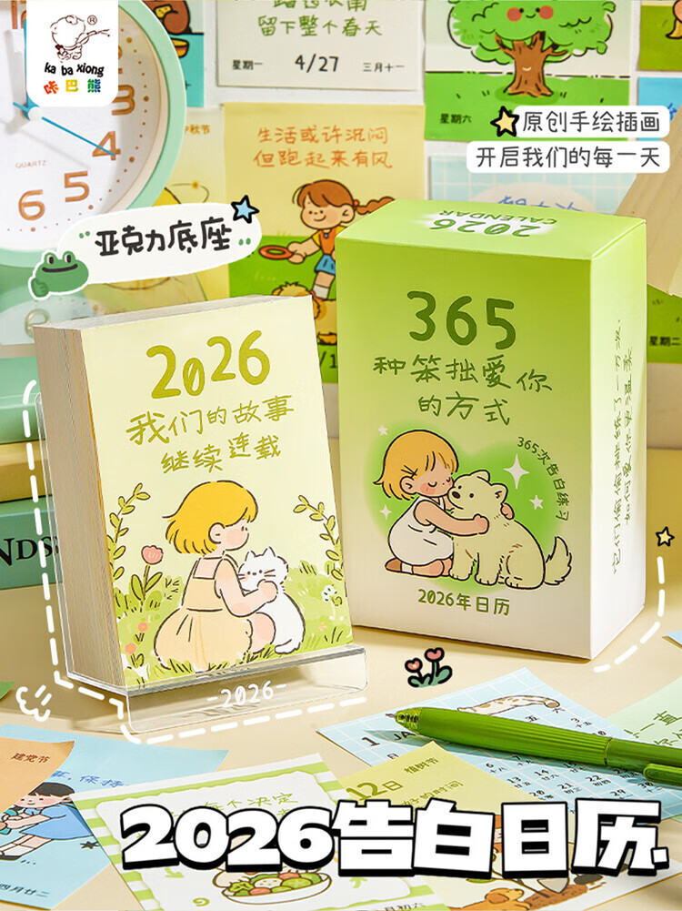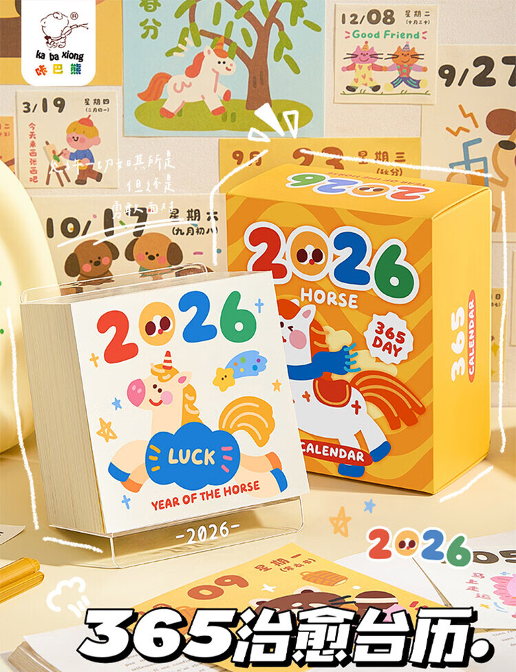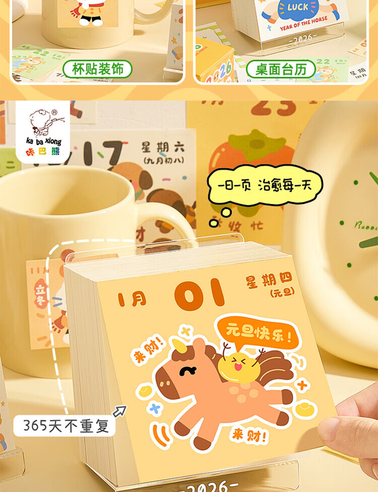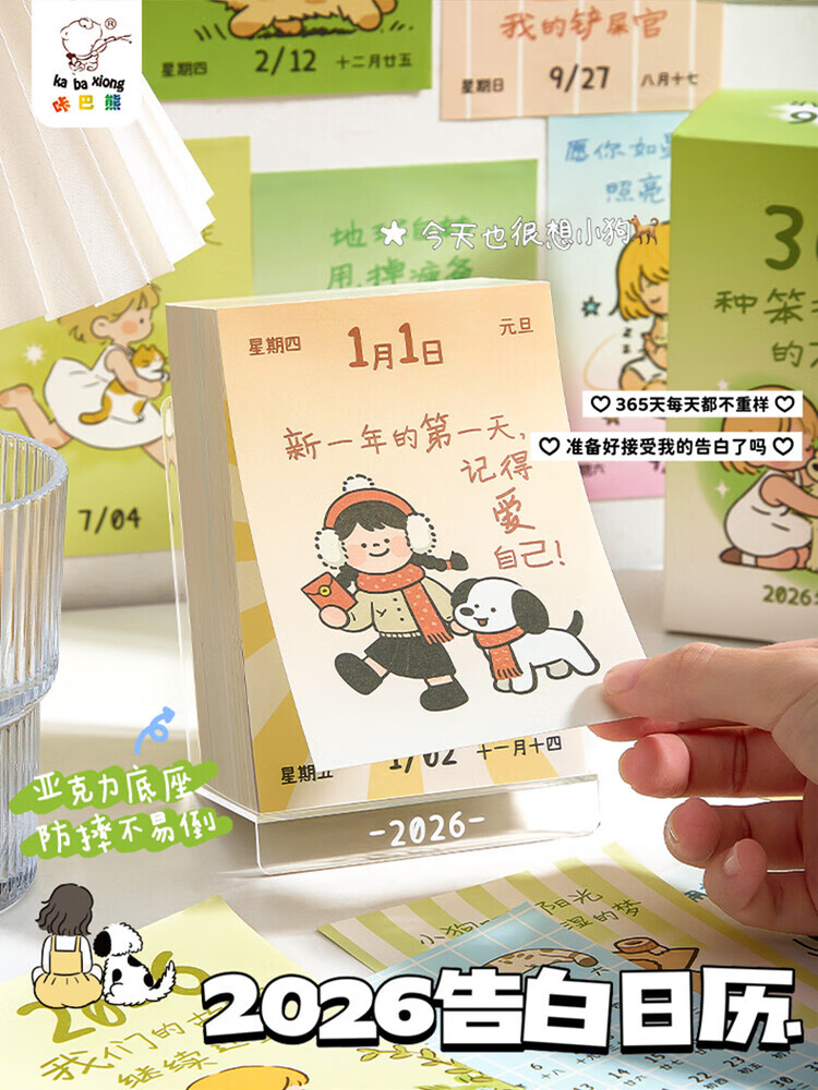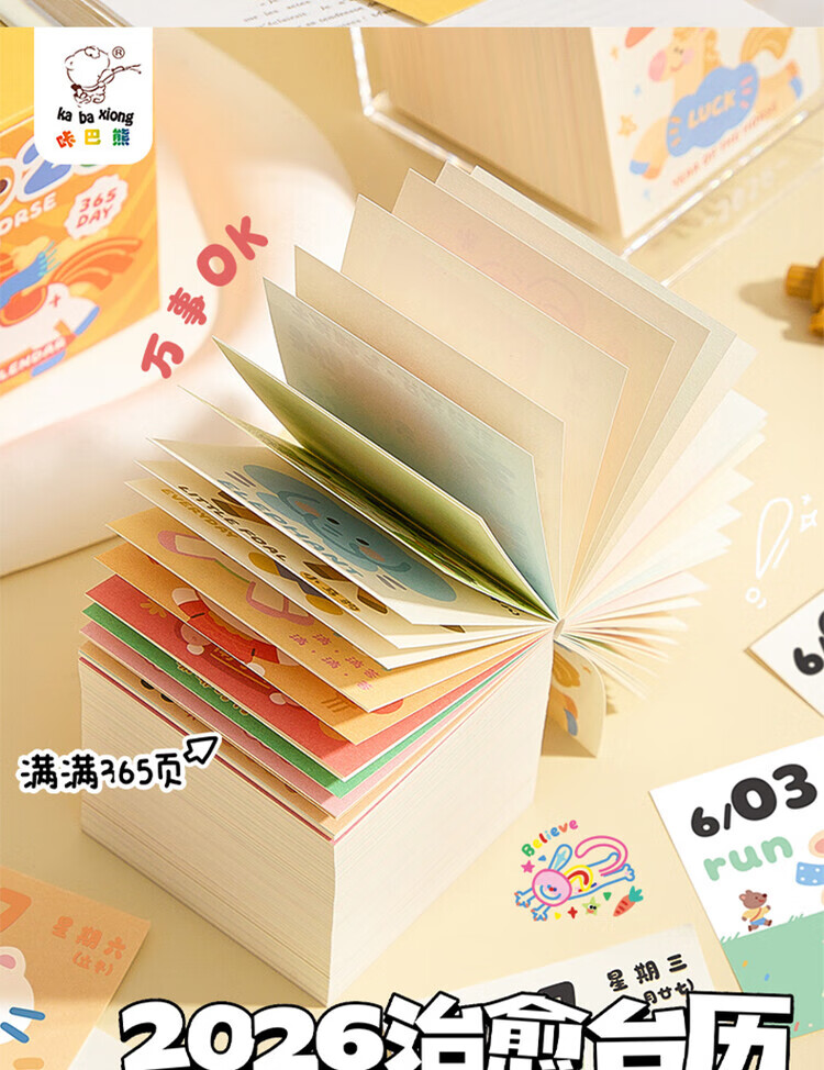 咔巴熊(Kabaxiong)2026年新款撕拉式台历本手撕日历高颜值桌面摆件新年日志马年创意diy工作打卡计划本元旦生日礼物 365天【小号】一日一撕 贈亚克力架