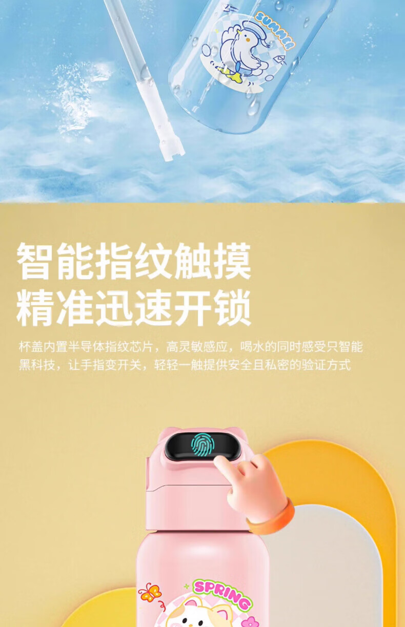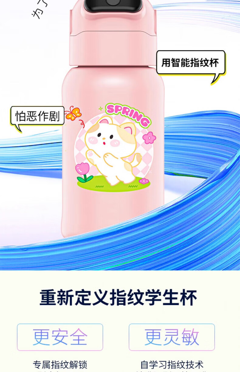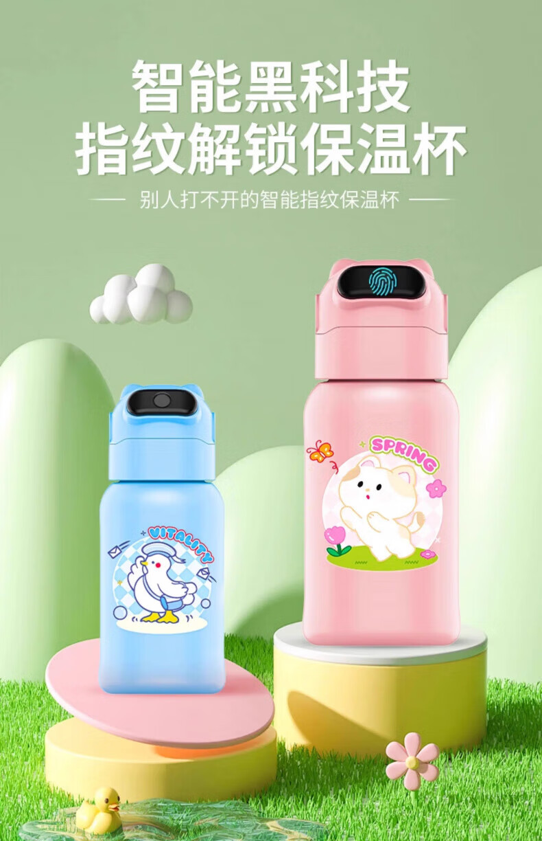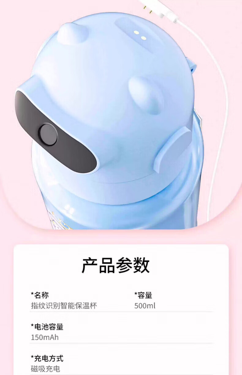 WFFPM德国品牌316不锈钢保温杯保温保冷水杯指纹识别上学用儿童指纹杯 蓝色 500ml