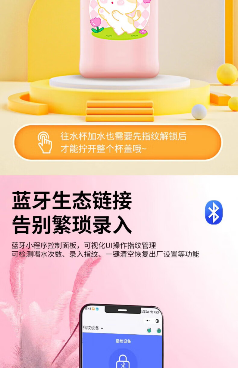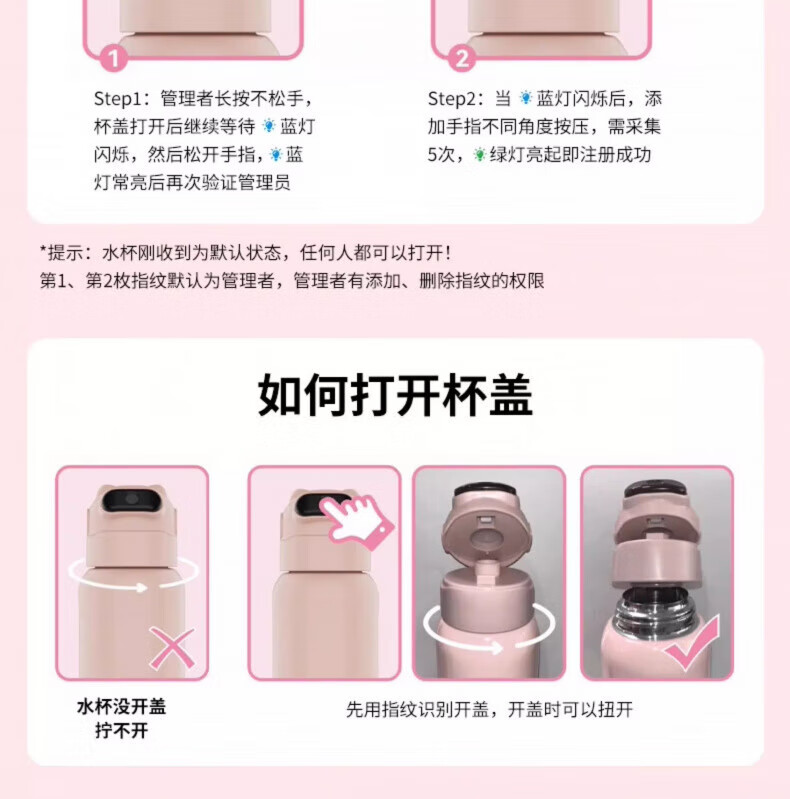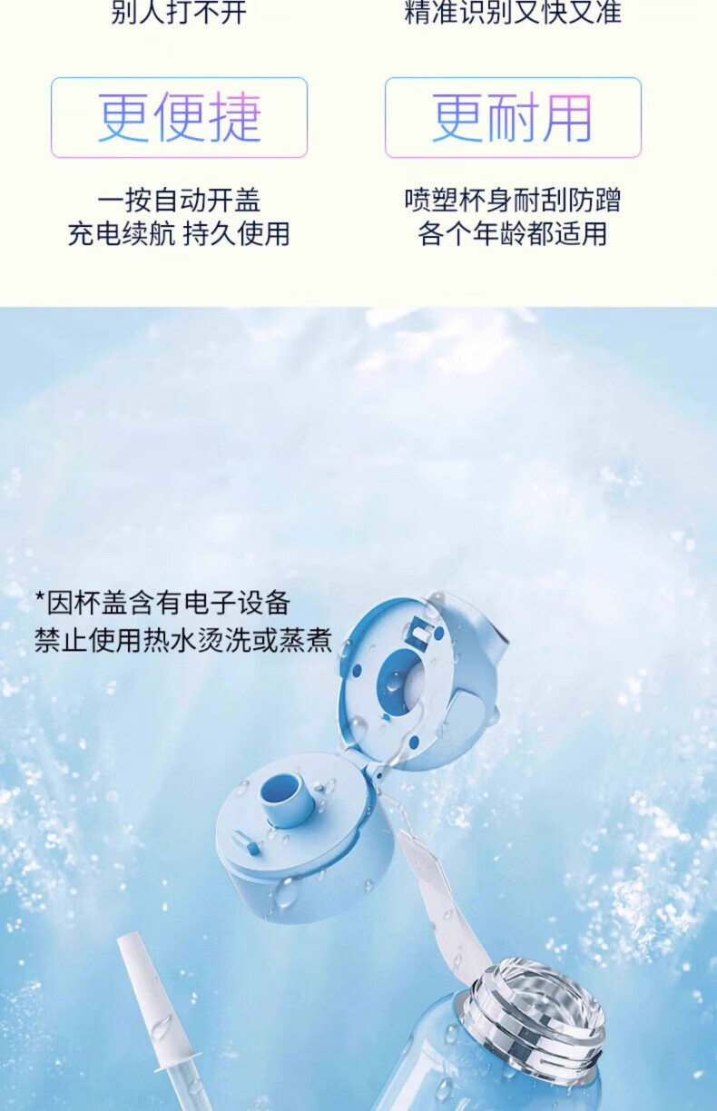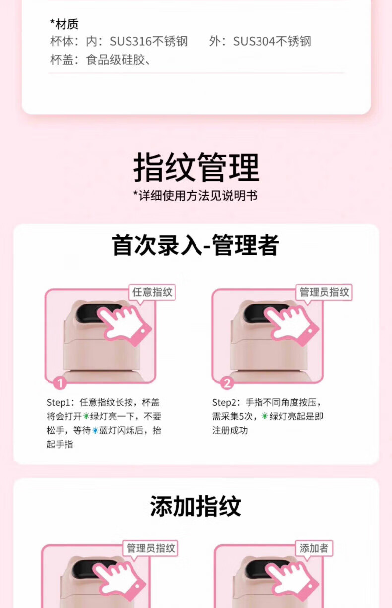 WFFPM德国品牌316不锈钢保温杯保温保冷水杯指纹识别上学用儿童指纹杯 蓝色 500ml